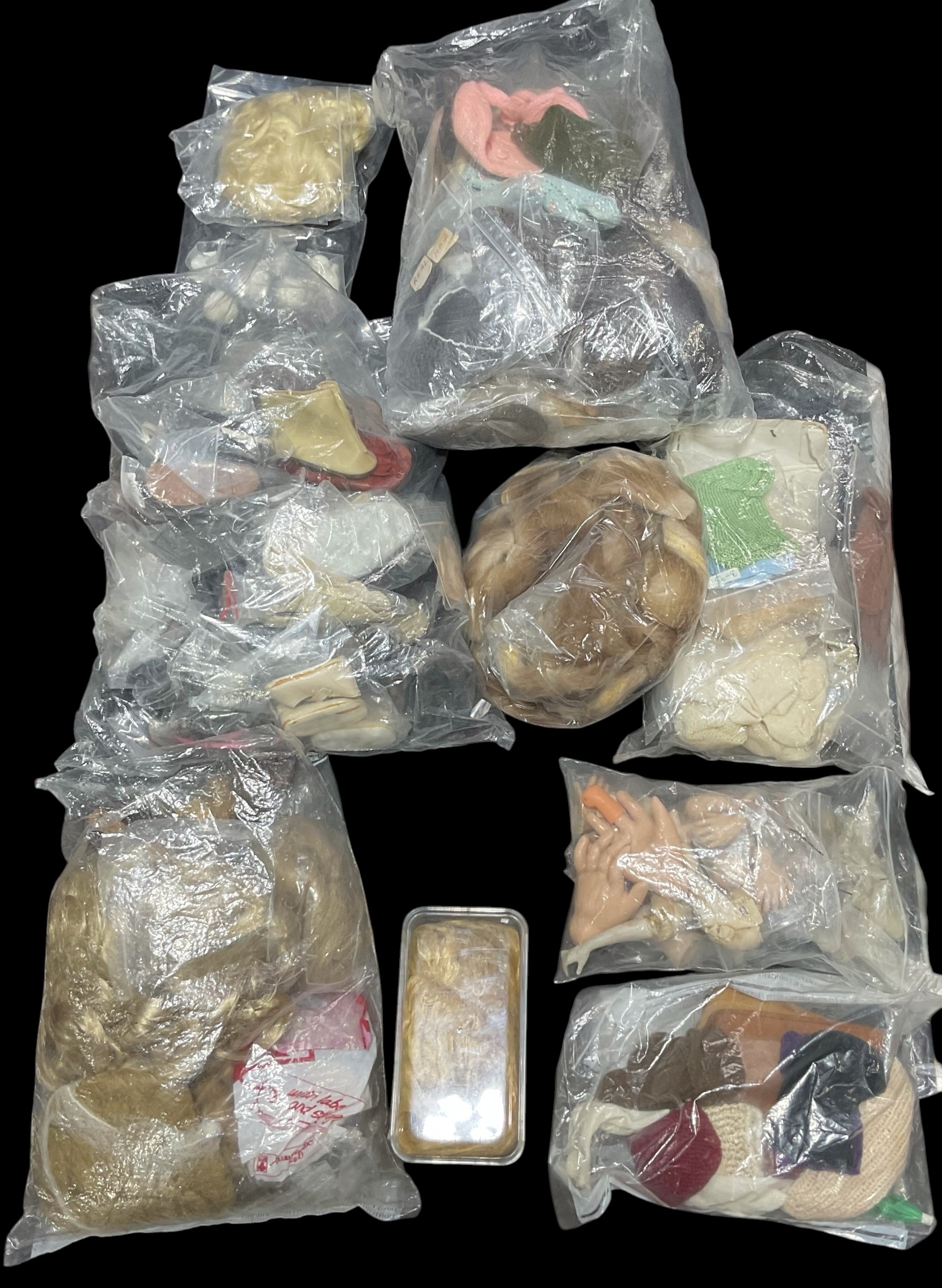 A Collection of Doll Accessories Incl. Shoes , Hair Pieces , Socks etc.