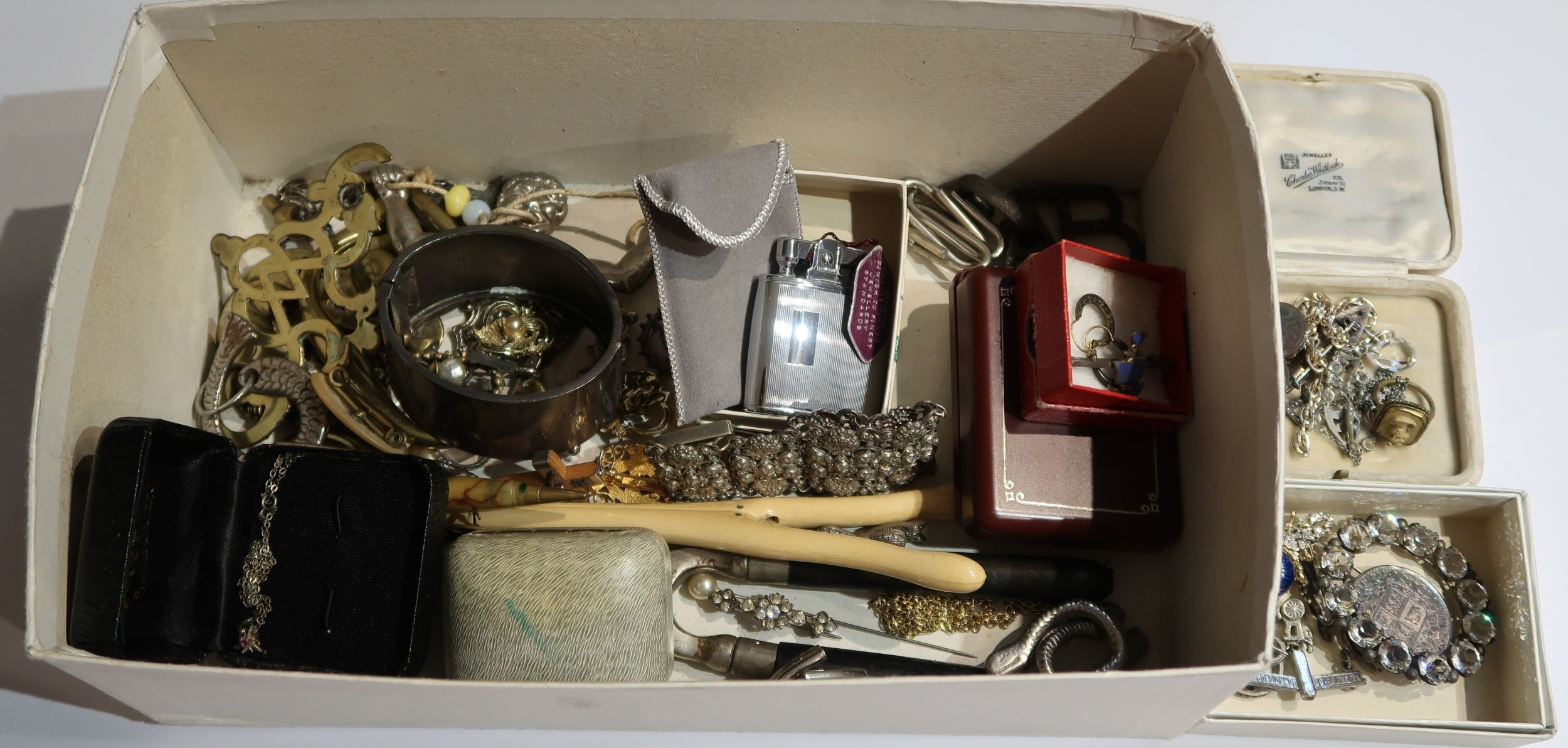 Silver and enamel lily bar brooch, silver bangle and sundries