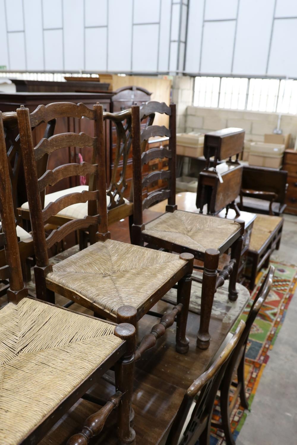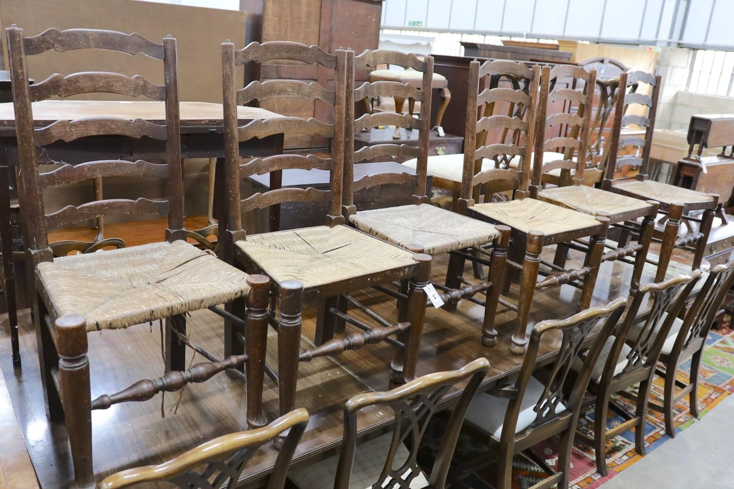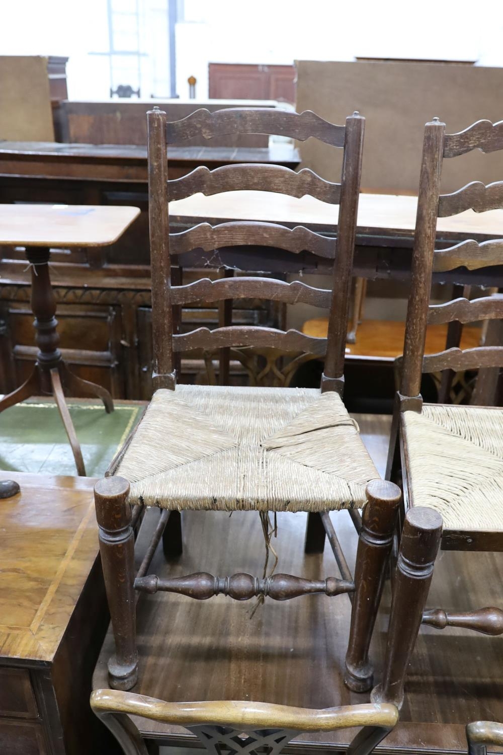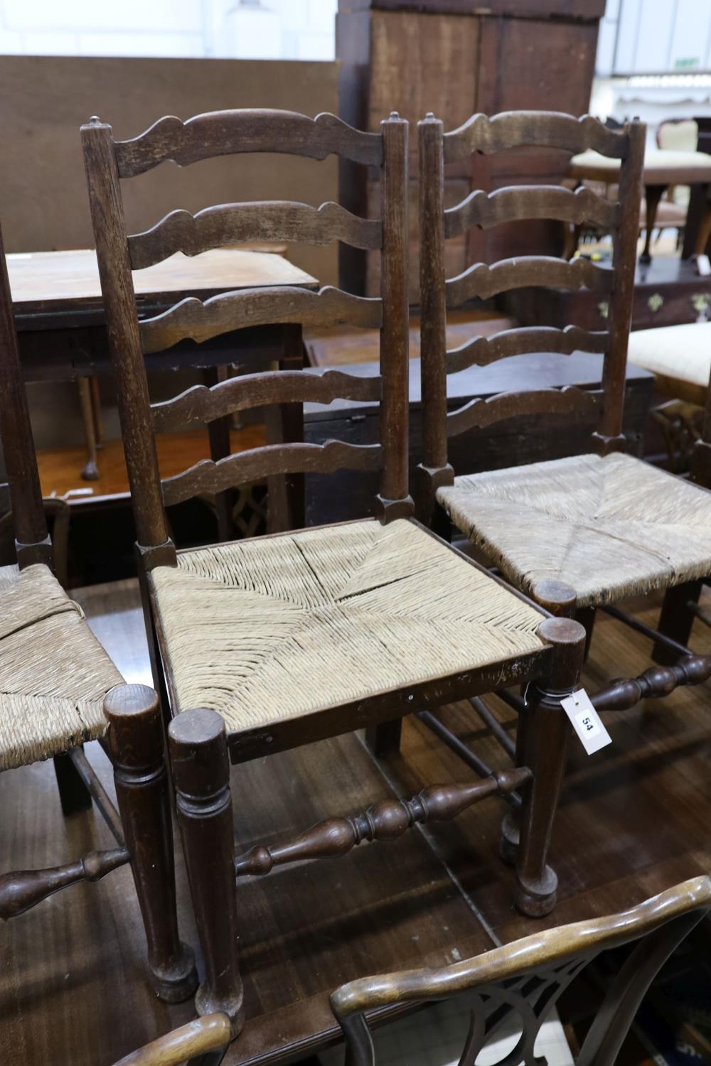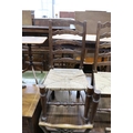A set of six oak rush seat ladder back chairs