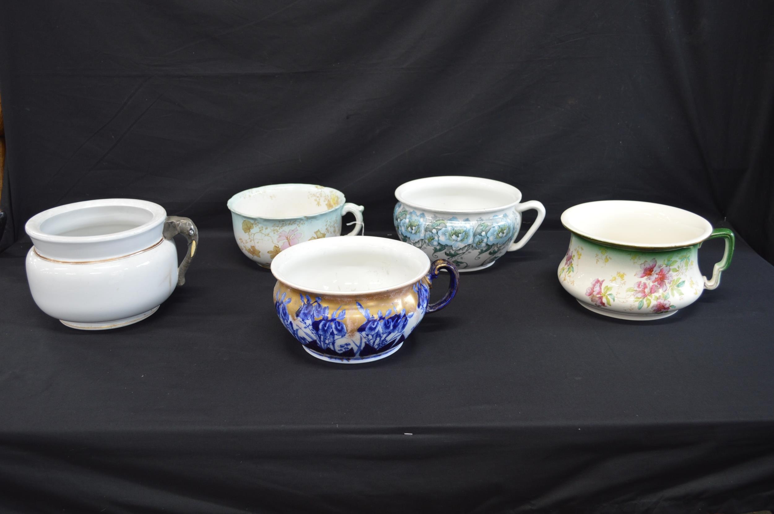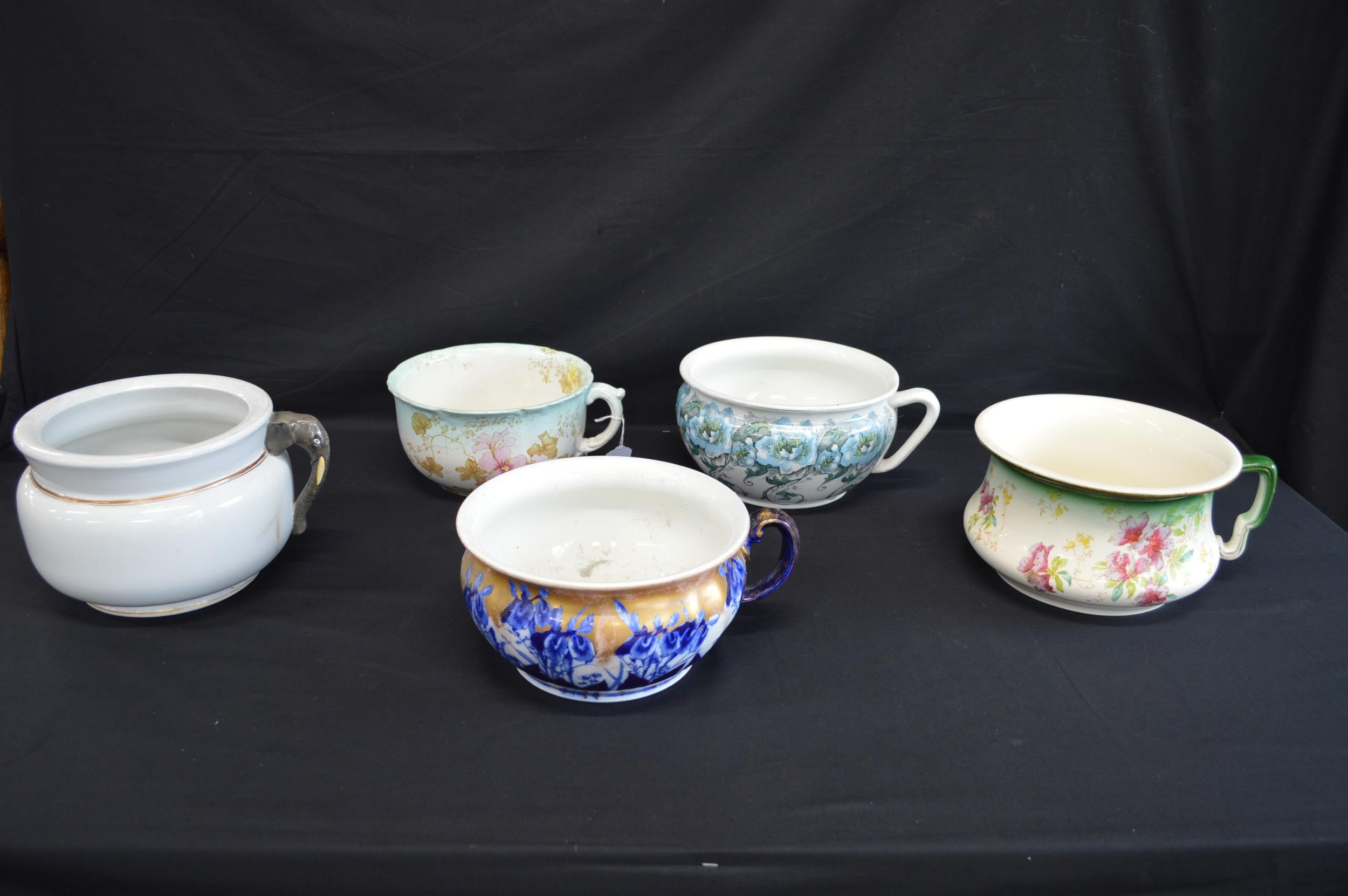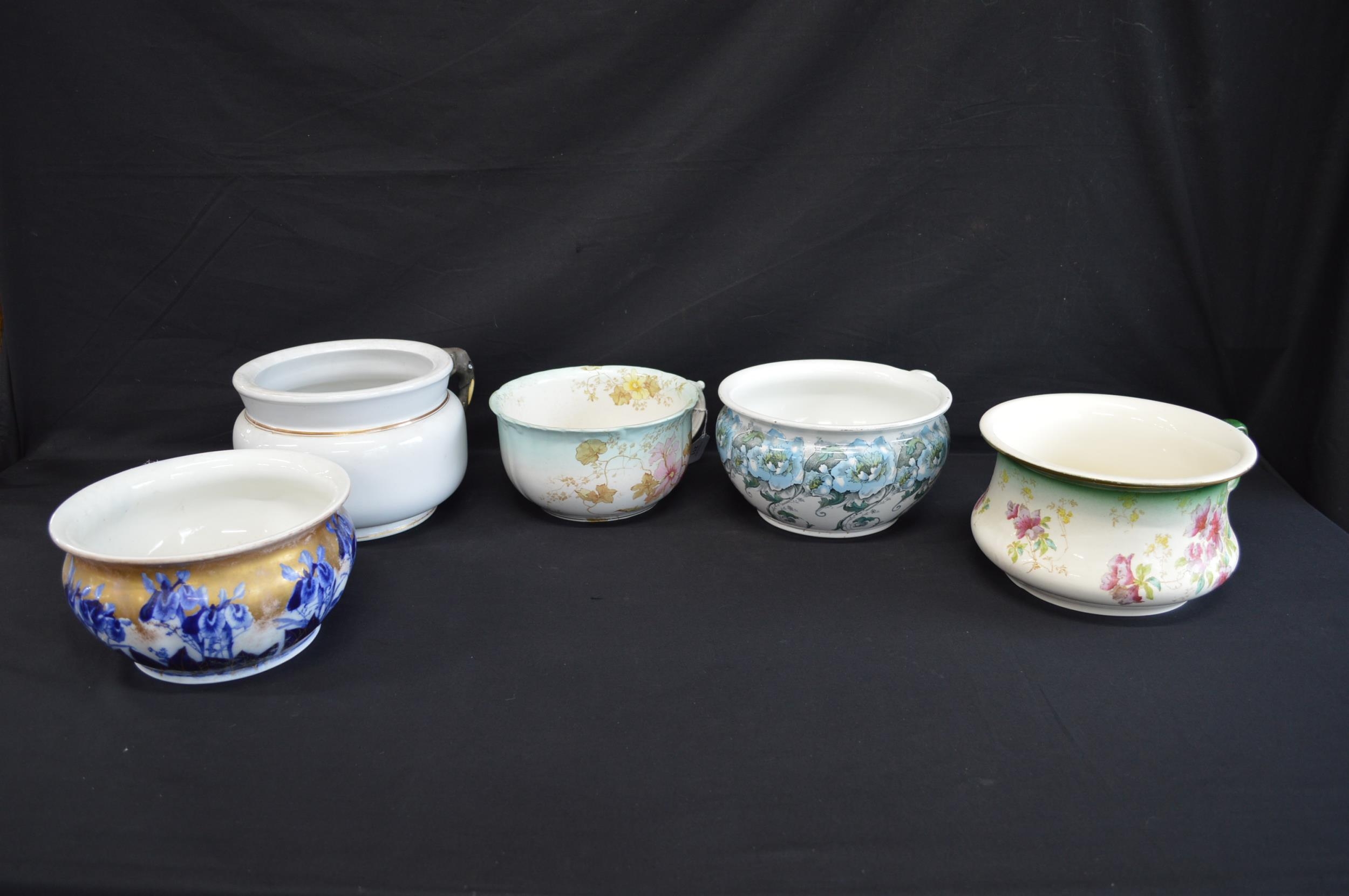 Group of five various chamber pots