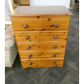 A modern pine Victorian style chest of five long drawers with bun handles, 2'6 wide