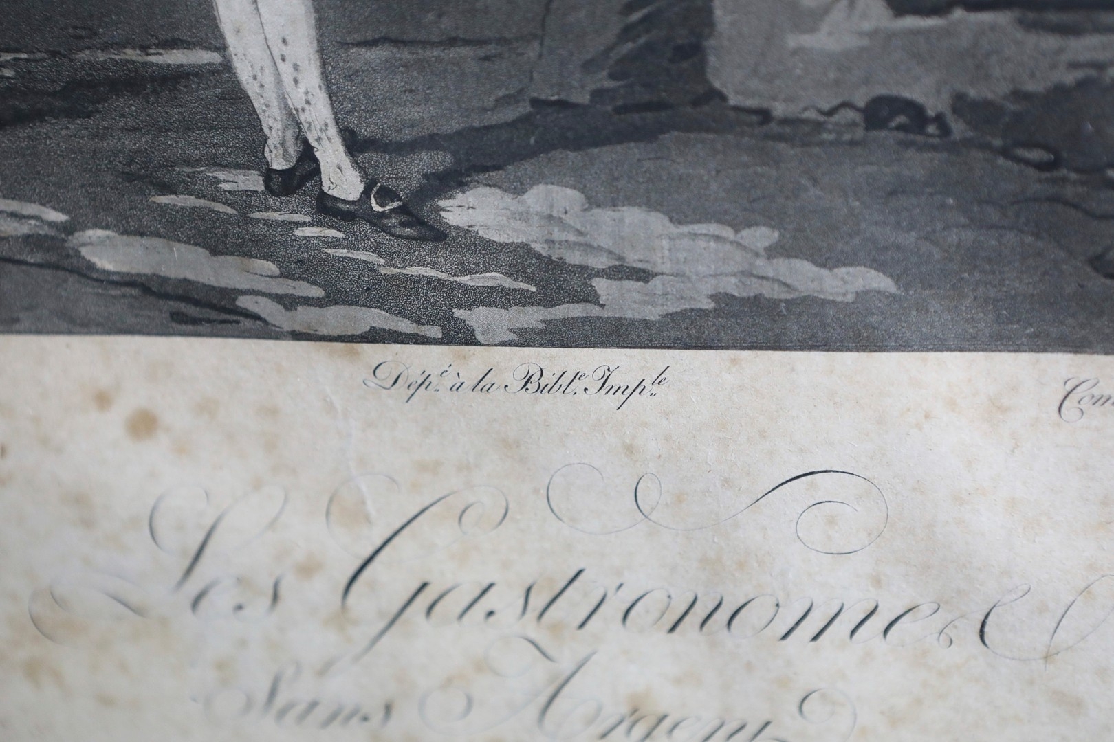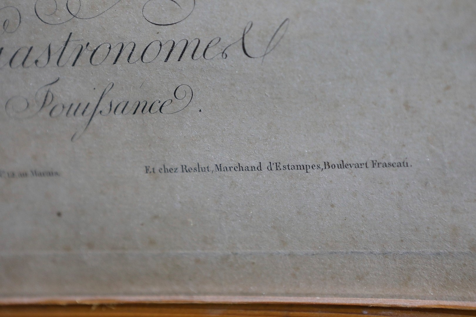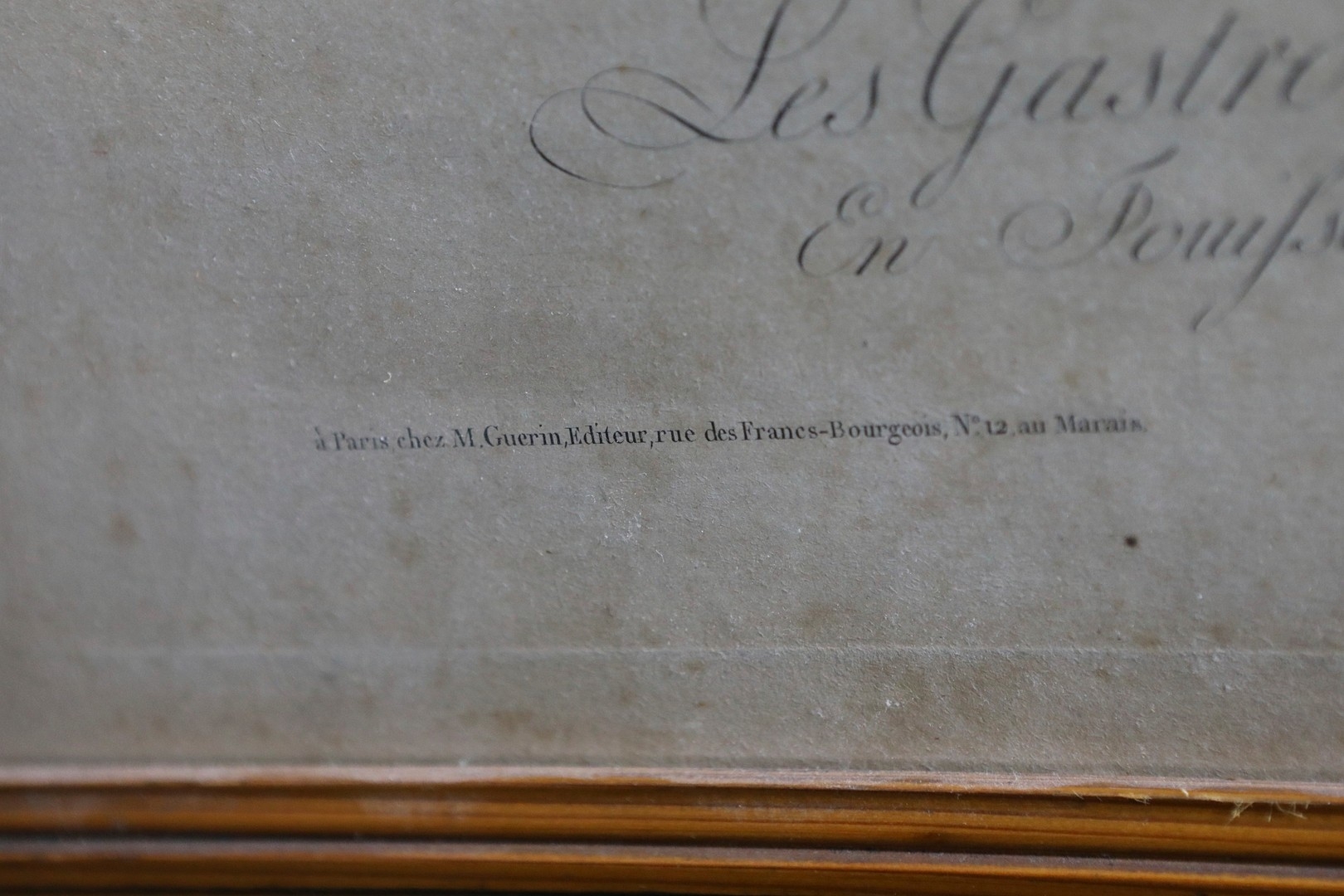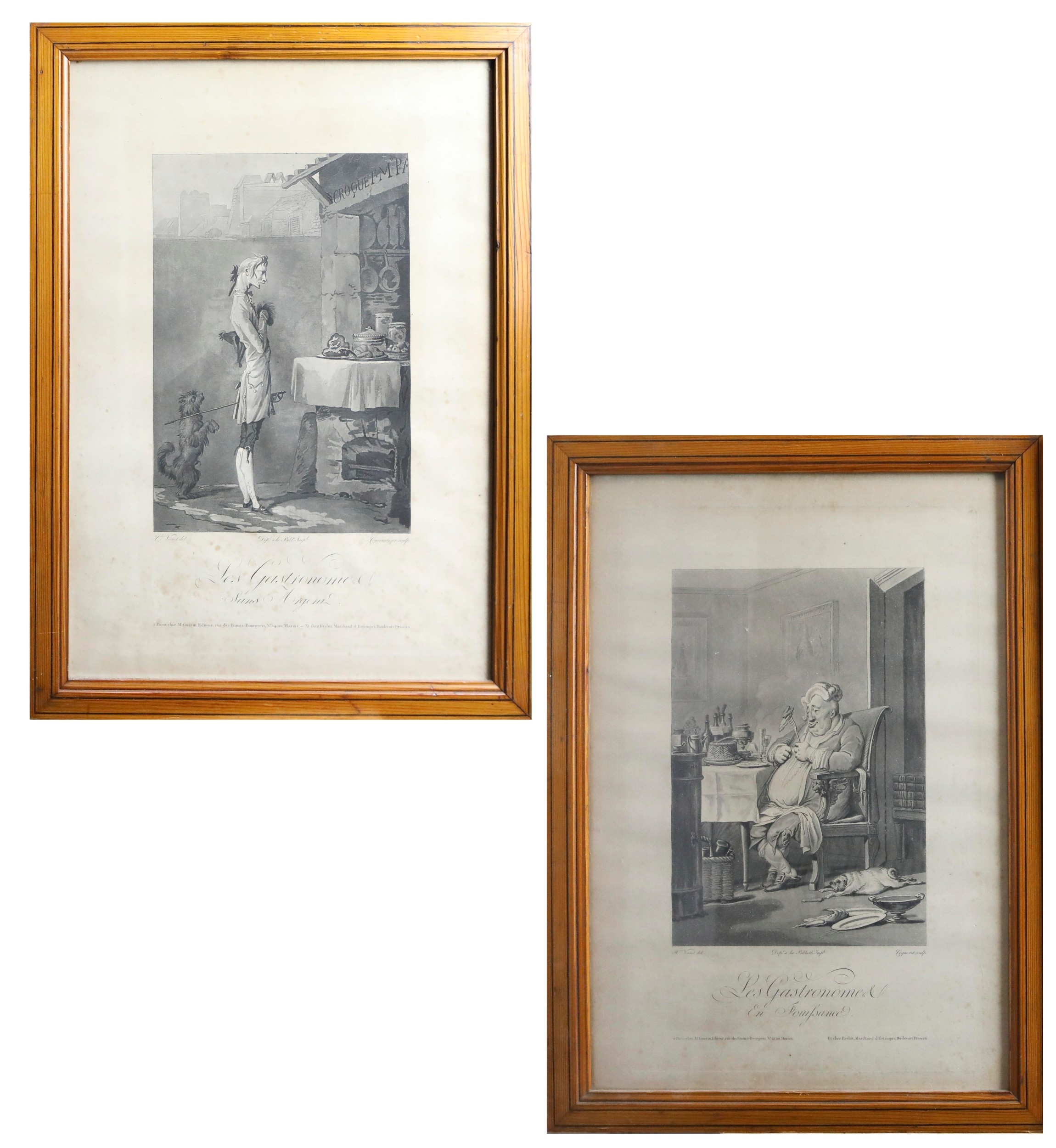 FRENCH PRINTS. LES GASTRONOME SANS ARGENT AND LES GASTRONOME JOUISSANCE (2). framed, each overall 56cm x 39cm (2).