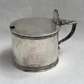 WILLIAM IV SILVER DRUM MUSTARD POT WITH GLASS LINER BY EDWARD, ED JR, JOHN & WILLIAM BARNARD, LONDON 1836 - 7CM TALL, 145 G WEIGHABLE