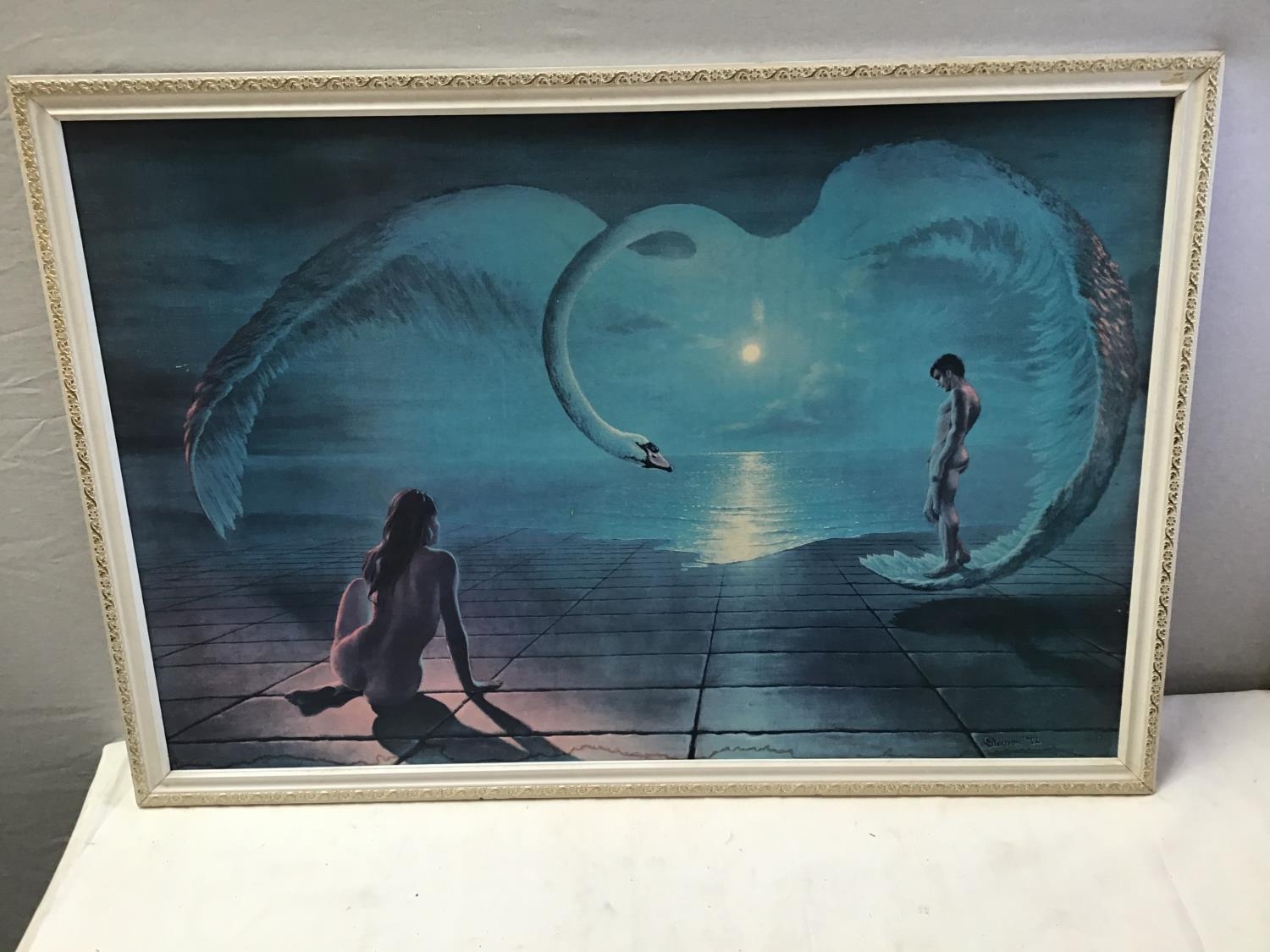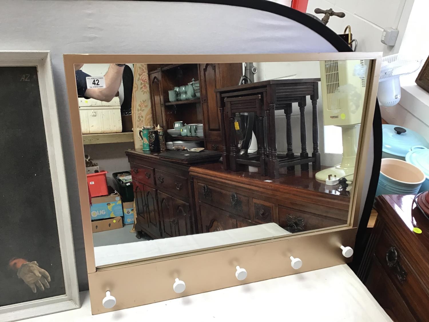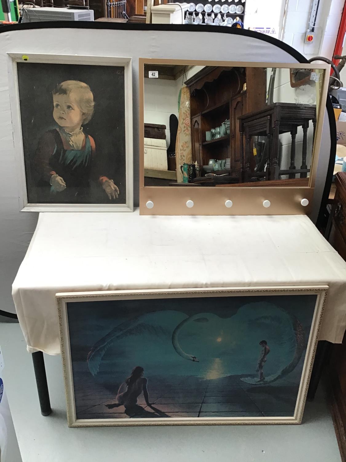 2 VINTAGE FRAMED PICTURES & HALL MIRROR