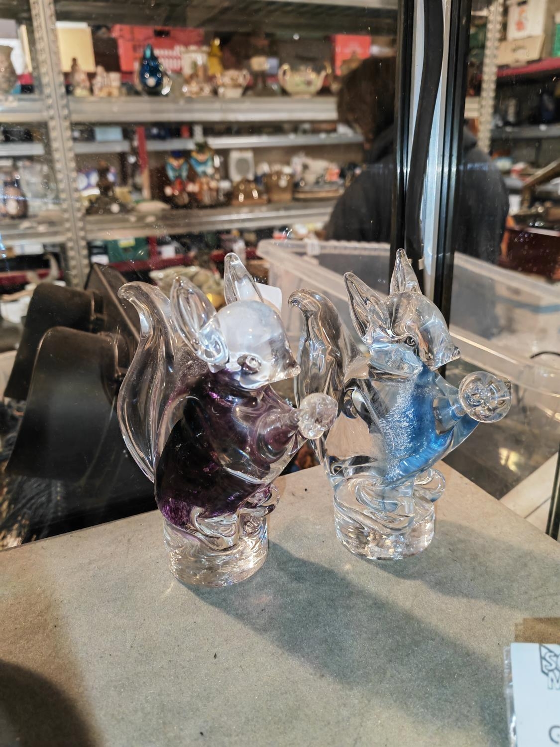 2 Murano Glass Squirrel Ornaments