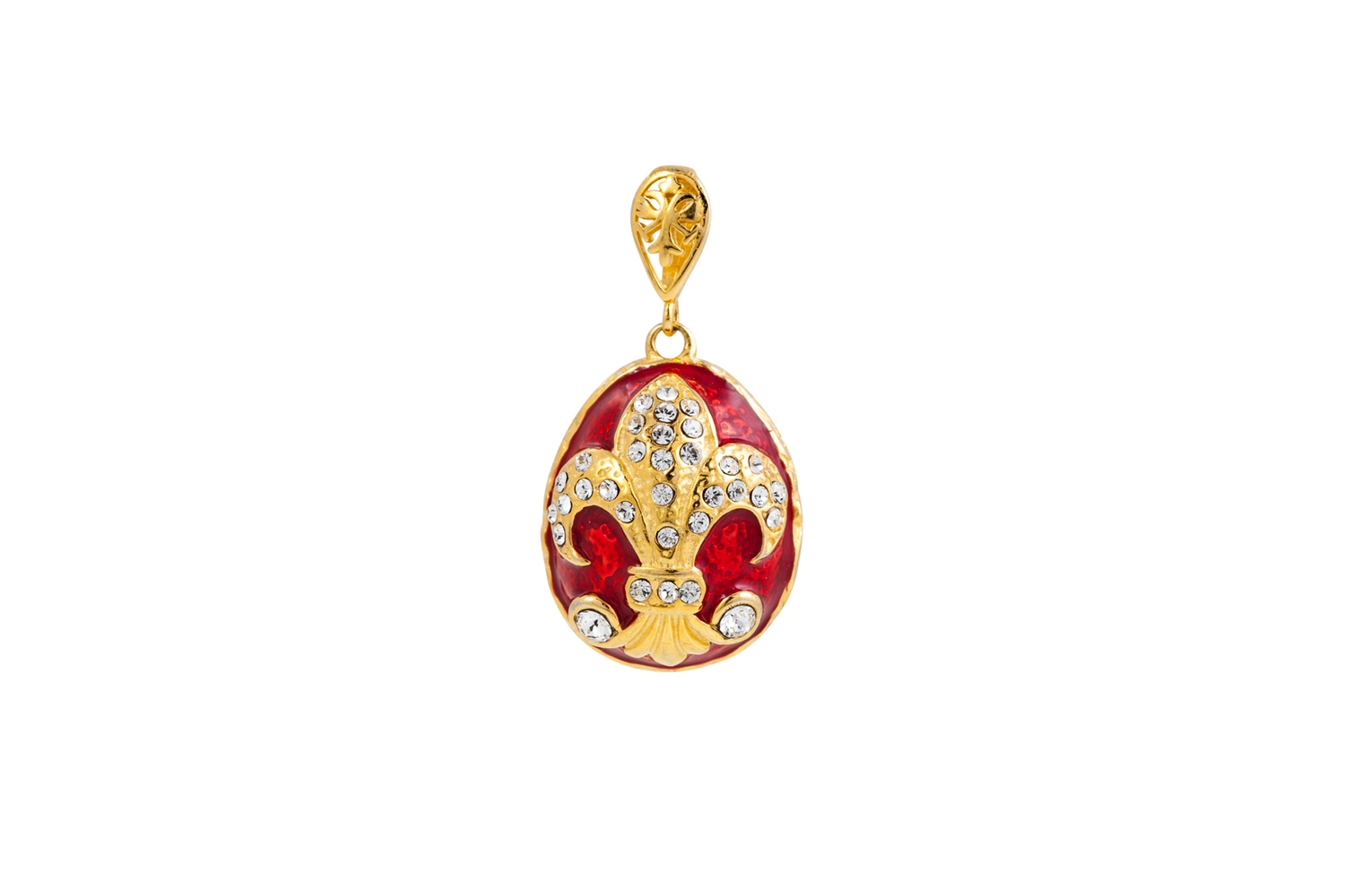 A MODERN SILVER EGG PENDANT, fleur de lys motif, red enamel decoration, 3.5 cm