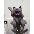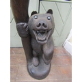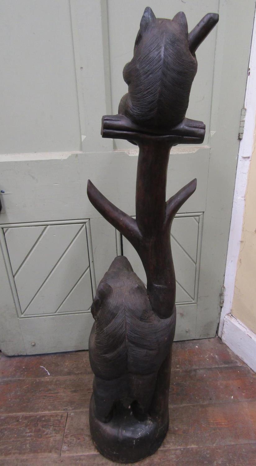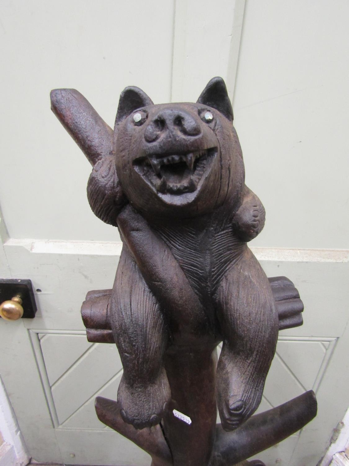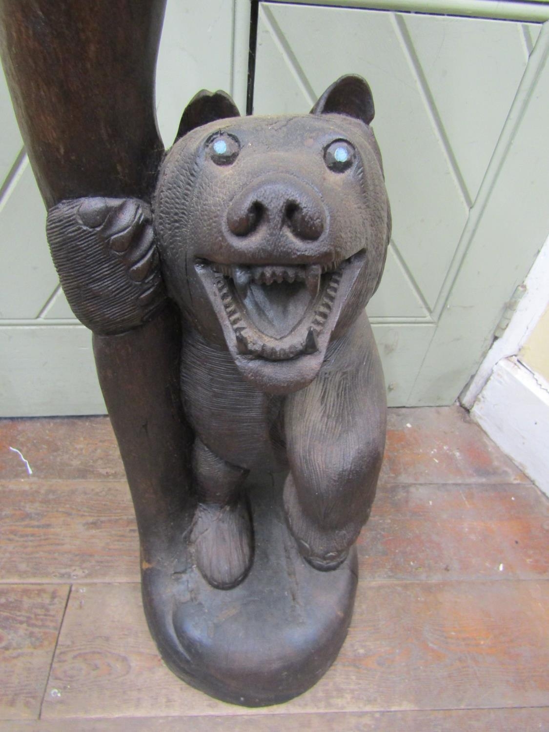 A carved hat stand showing mother bear and cub against a tree, 130cm high