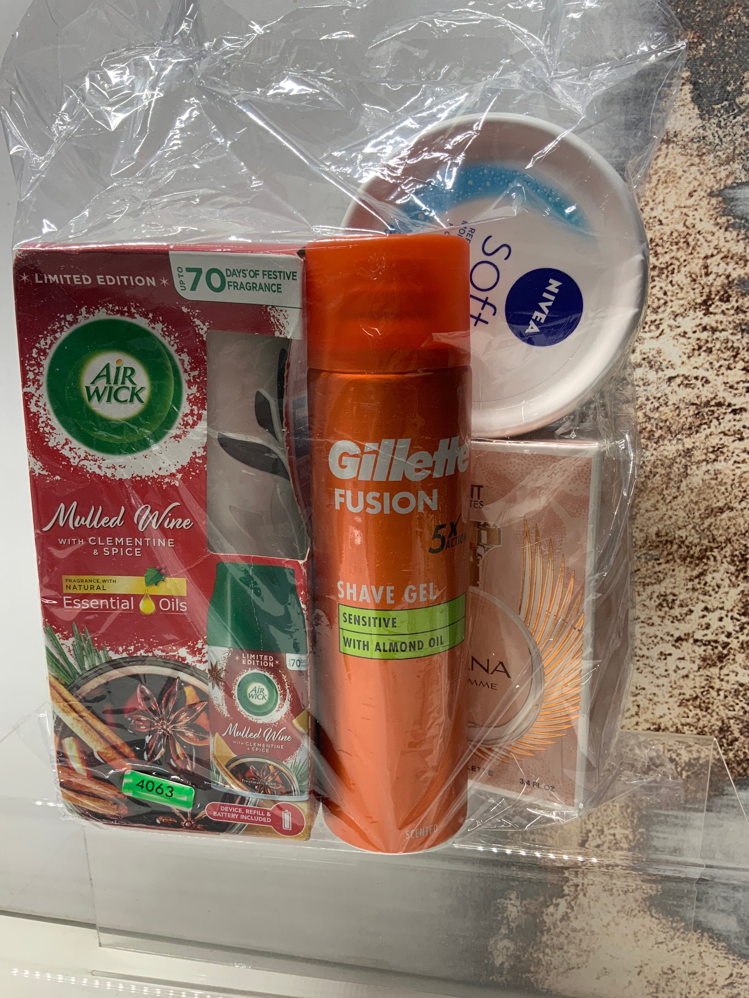 SCENT FAVOURITES ORIANA POUR FEME 100ML , NIVEA SOFT 500ML CREAM,AIR WICK MULLED WINE, GILLETTE FUSION SHAVE GEL APPROX RRP £31 ( P24095696 / C )