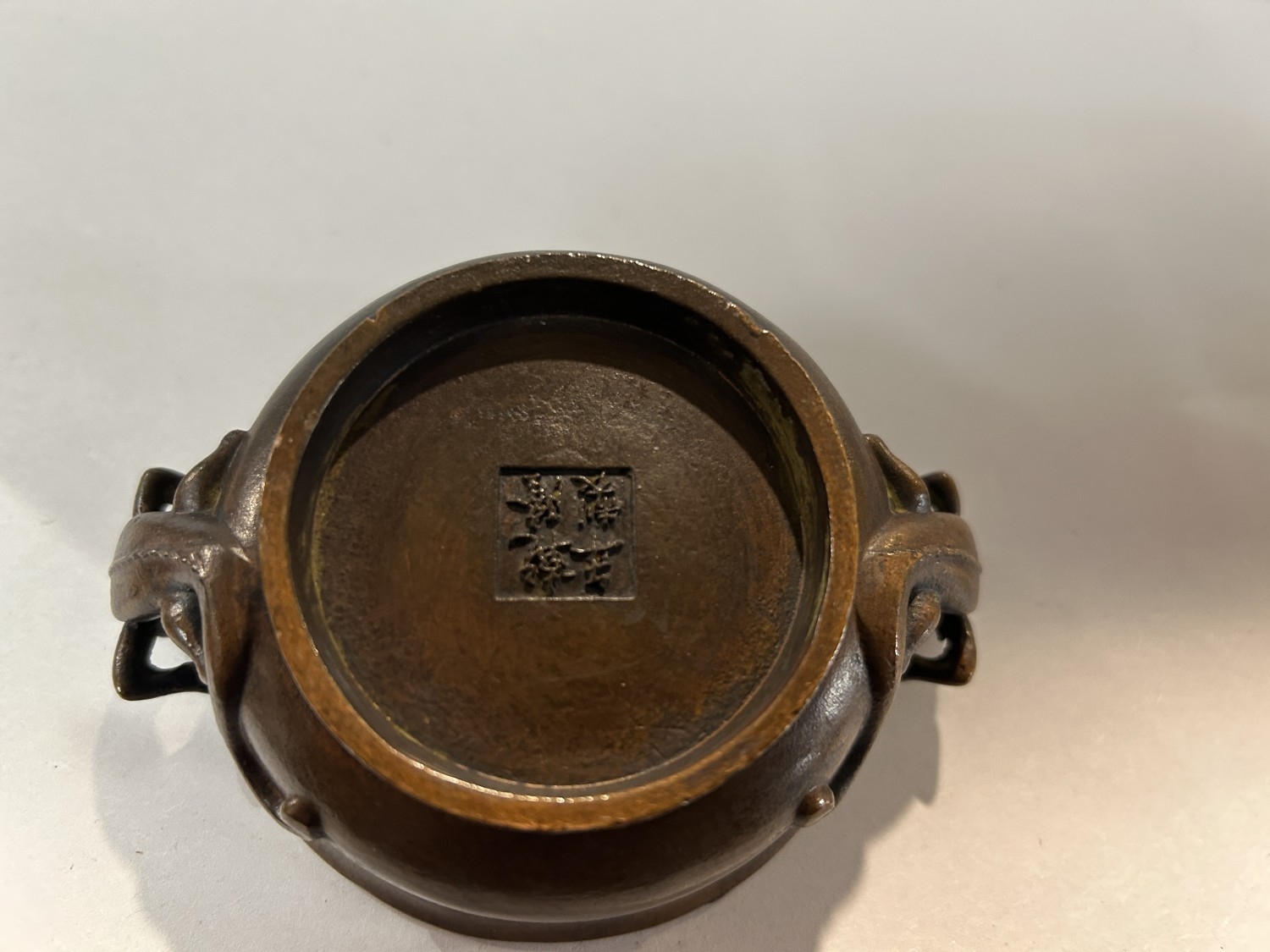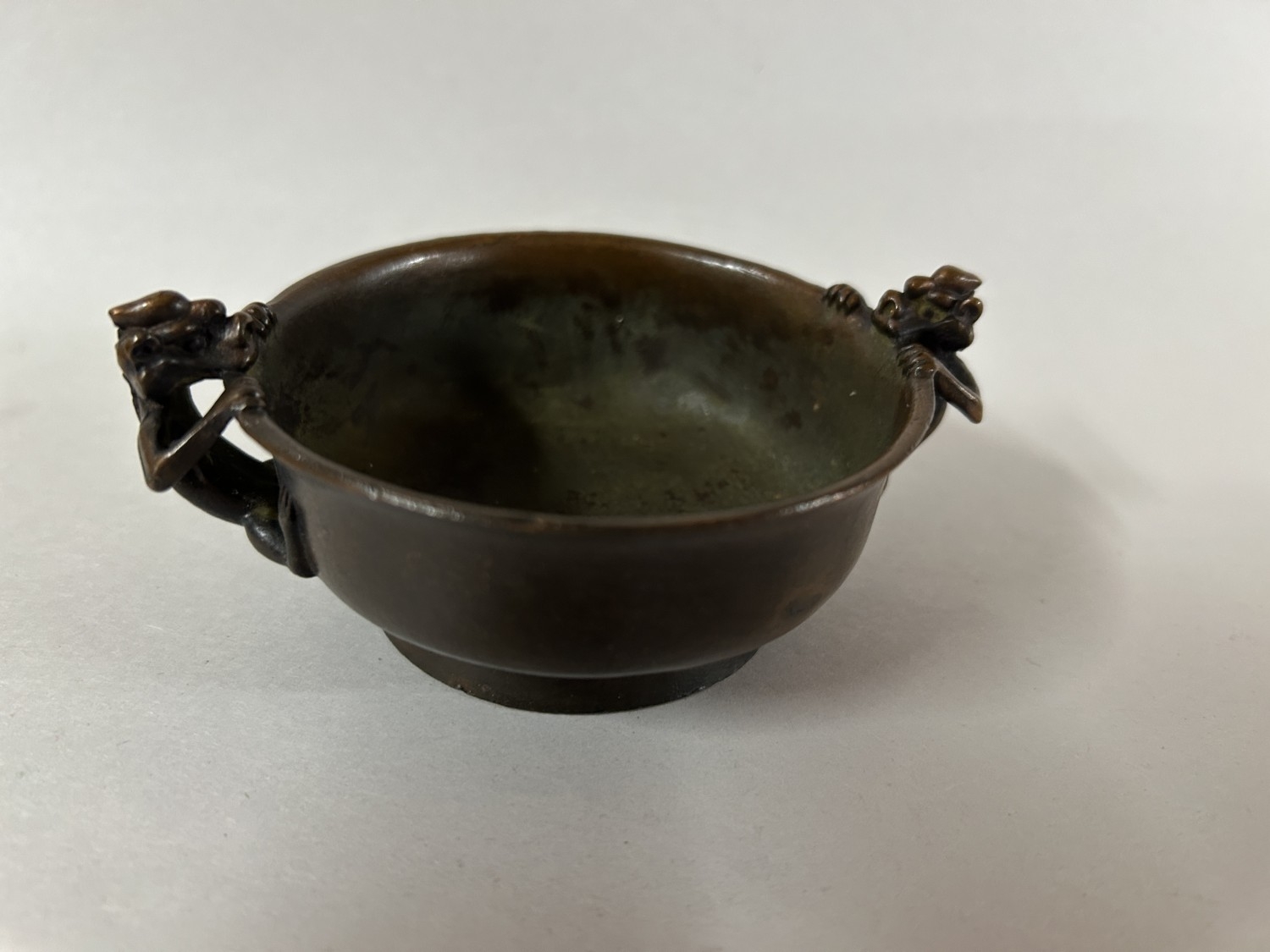 Bronze Oriental 4"D Pot with 'Dragon' Handles