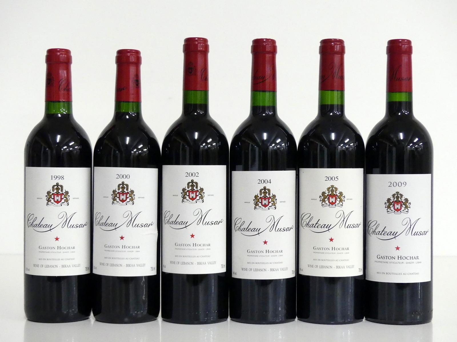 1 bt Ch. Musar 1998 Gaston Hochar vts 1 bt Ch. Musar 2000 Gaston Hochar i.n, sl creased label 1 bt Ch. Musar 2002 Gaston Hochar i.n 1 bt Ch. Musar 2004 Gaston Hochar i.n 1 bt Ch. Musar 2005 Gaston Hochar i.n 1 bt Ch. Musar 2009 Gaston Hochar i.n Above 6 bottles