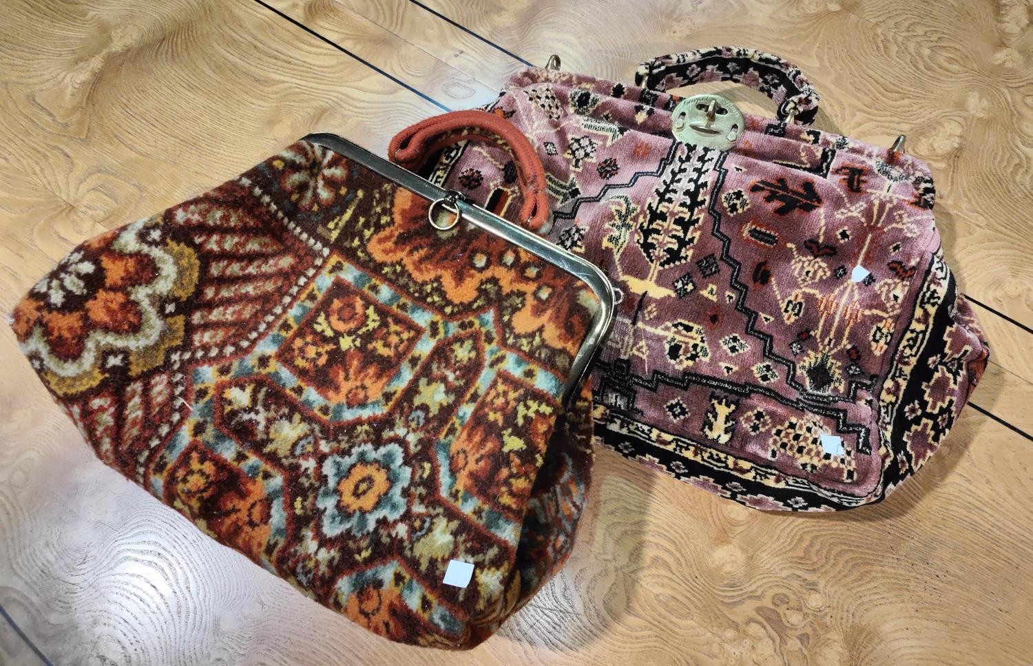 Two later 20th century 'carpet' bags with vintage design and decoration