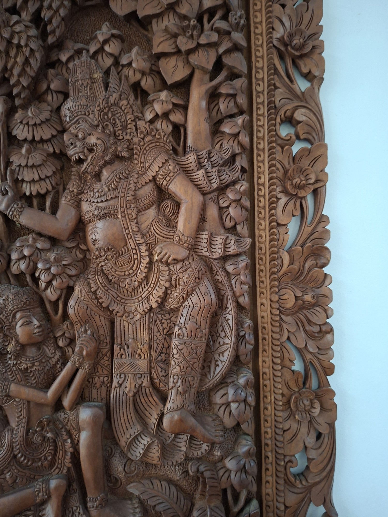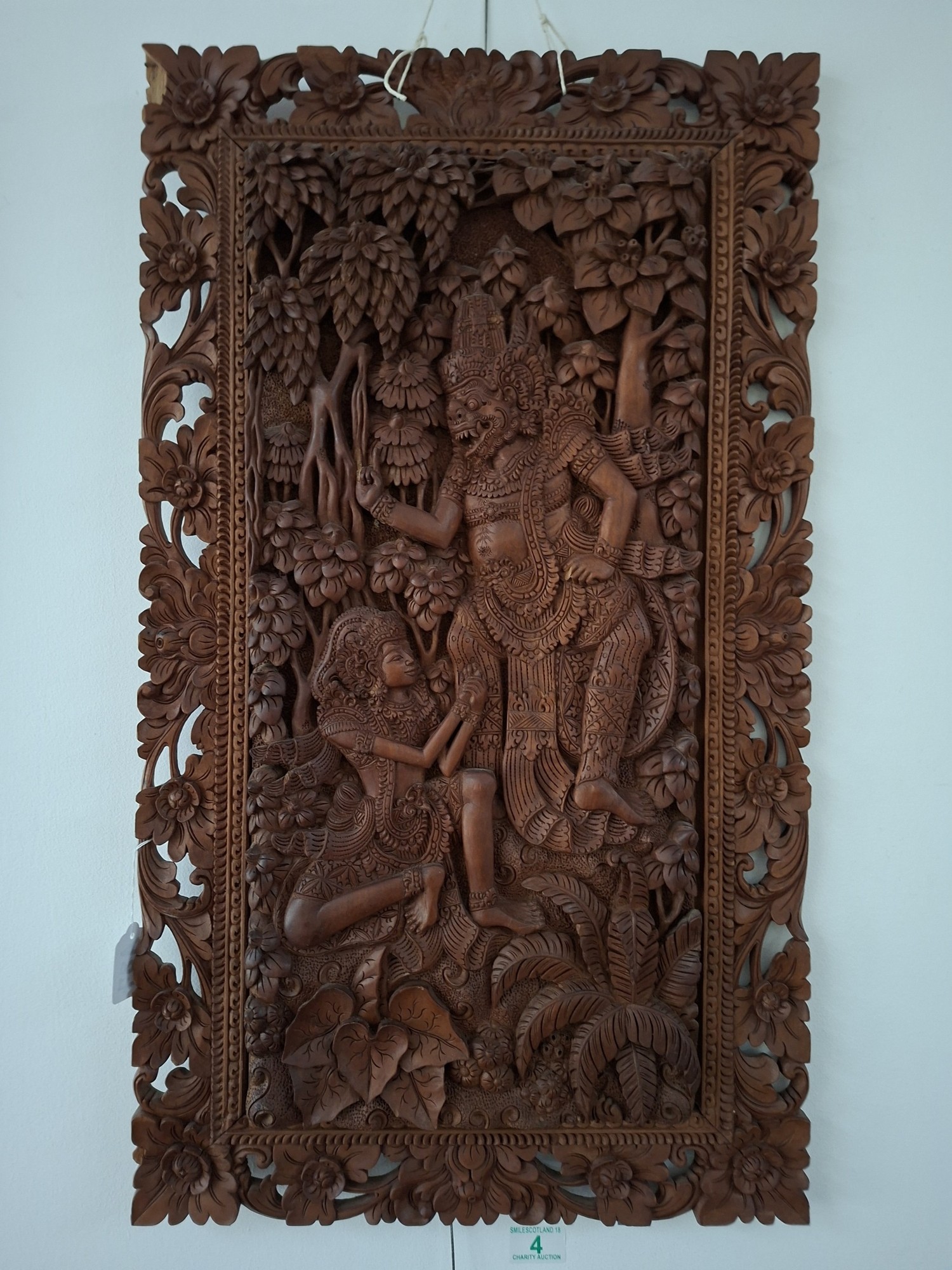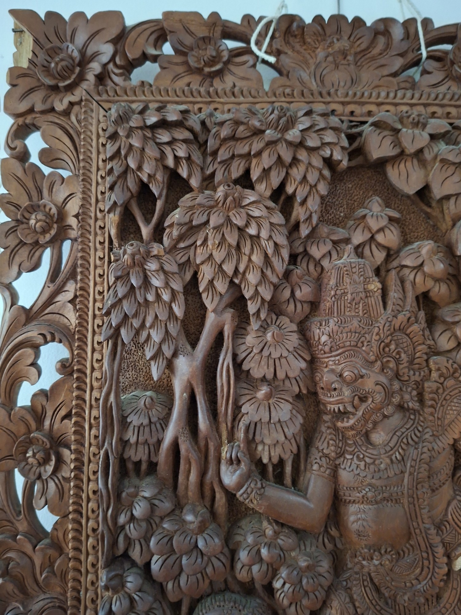 Hand carved Balinese wooden wall hanging 75cm x 43cm approx.