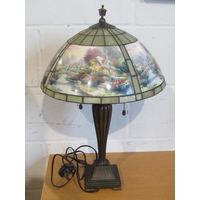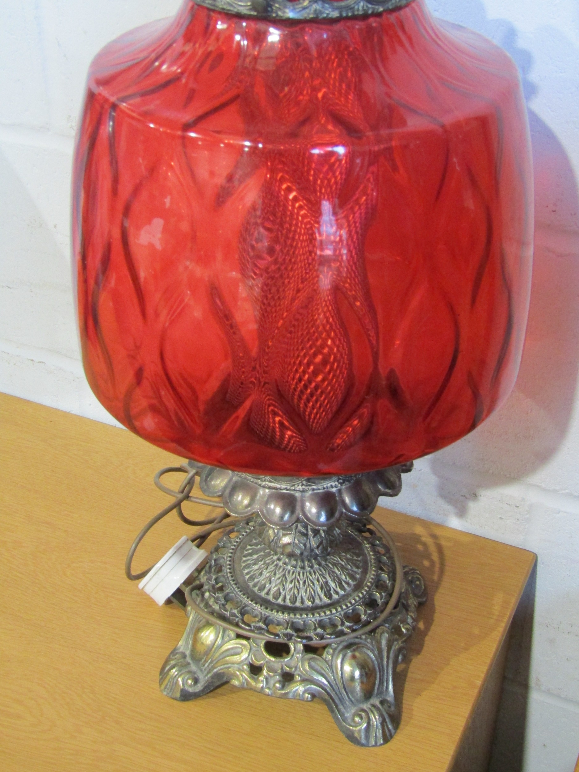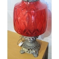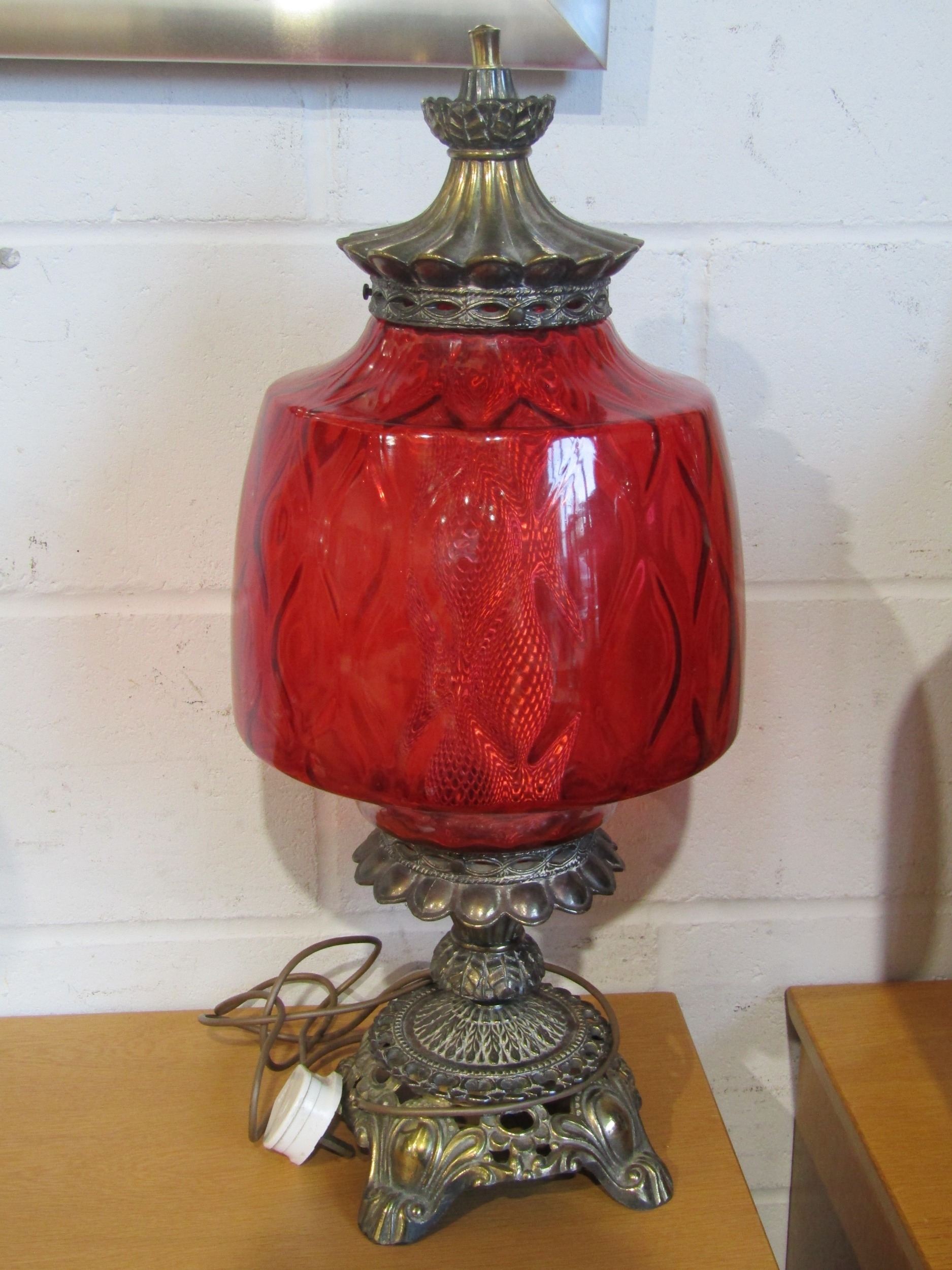 A Carl Falkenstein ruby coloured glass and brass table lamp