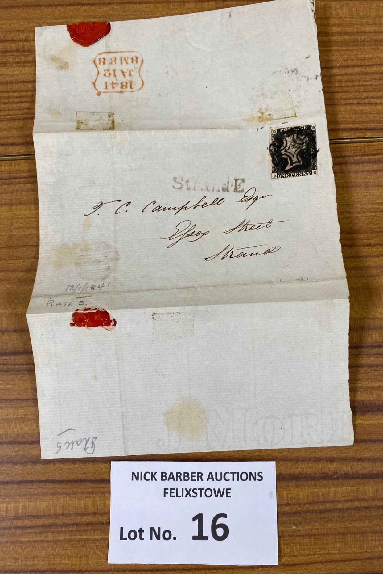 Stamps : Penny Black on cover dated 12.01.1841, plate 5, nice item.