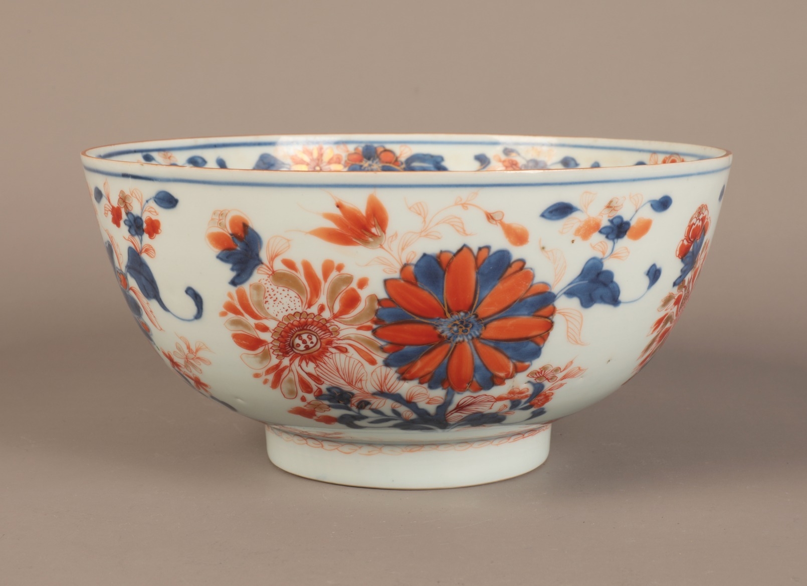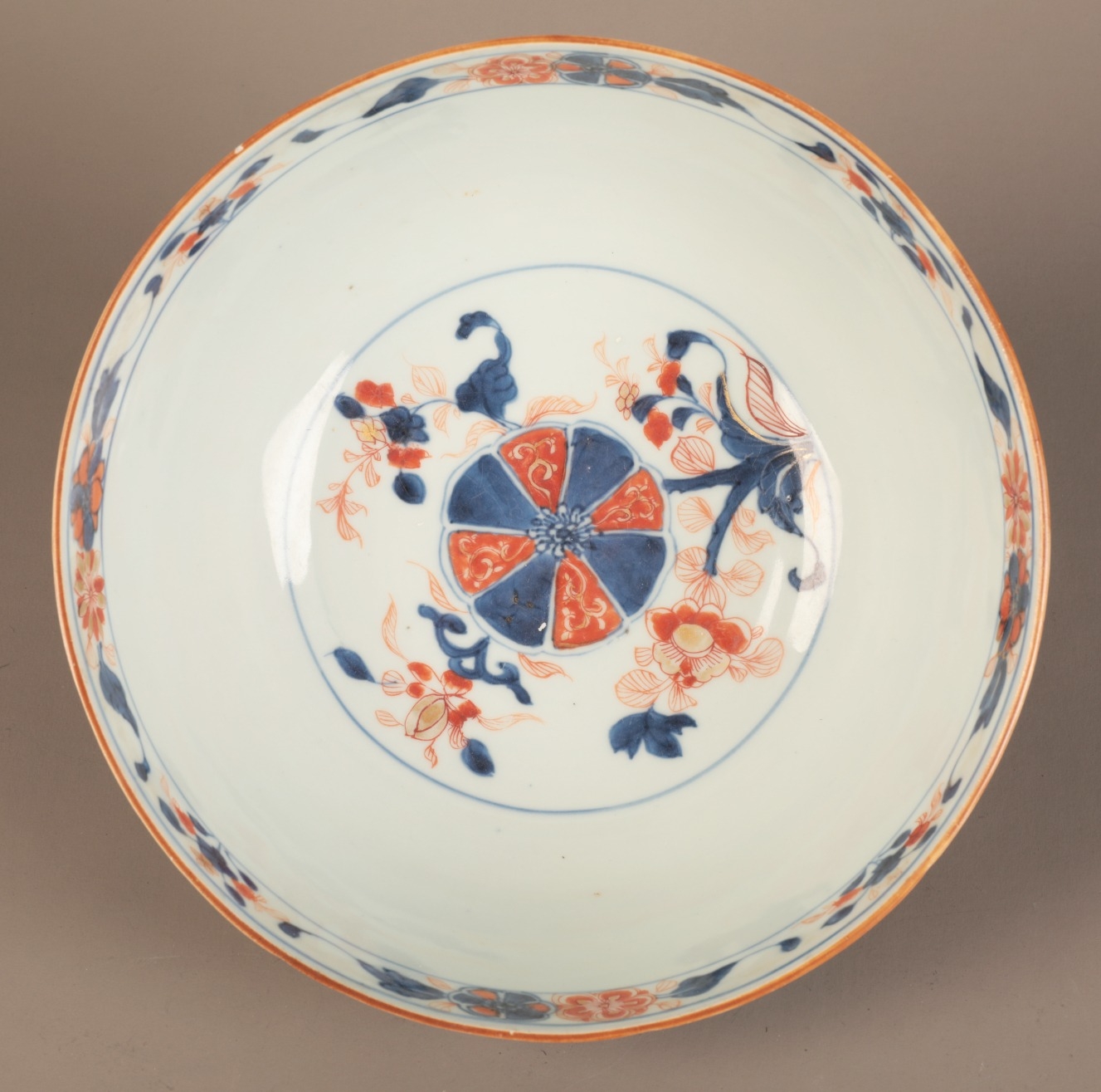 A CHINESE EXPORT PORCELAIN IMARI PATTERN BOWL18th/19th century, decorated with flowers in the Japanese taste, 11cm high x 22cm diameter