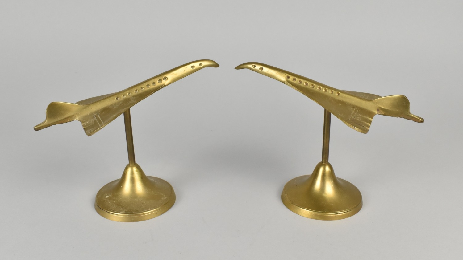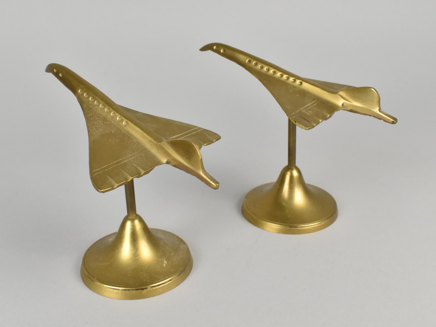 A Pair of Cast Brass Models of Concorde, 7.5cms Long