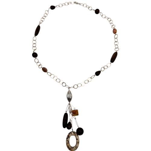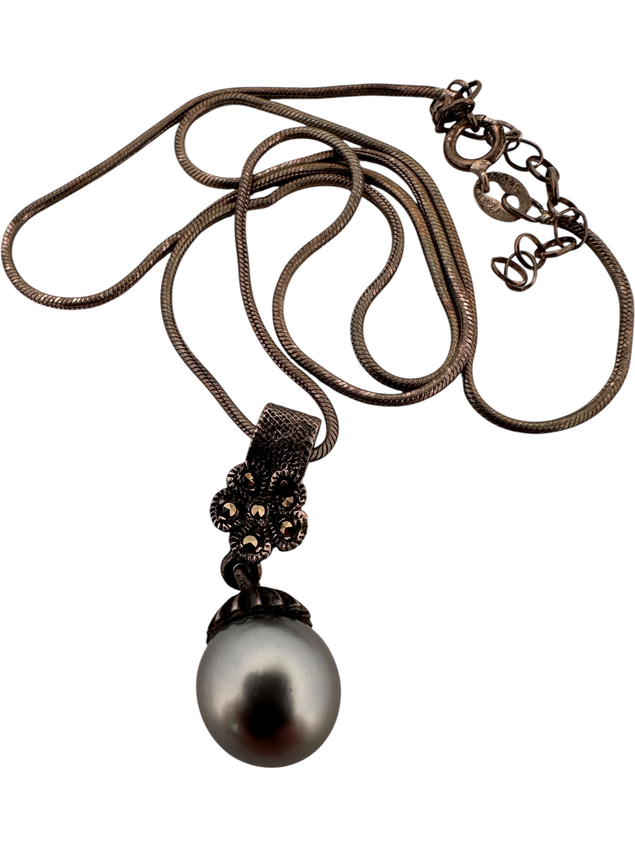 Silver Snake Chain with Faux Pearl & Marcasite Pendant
