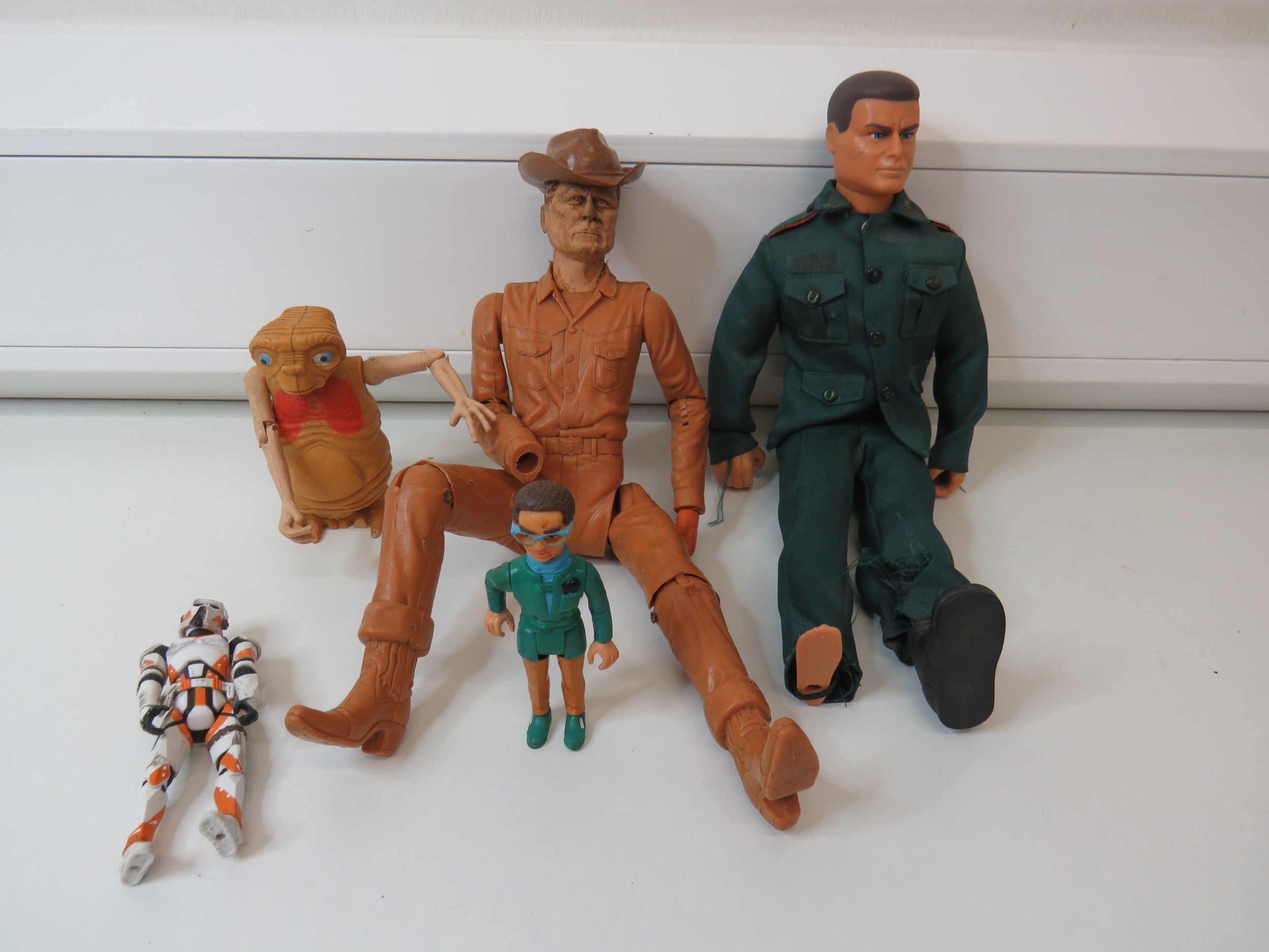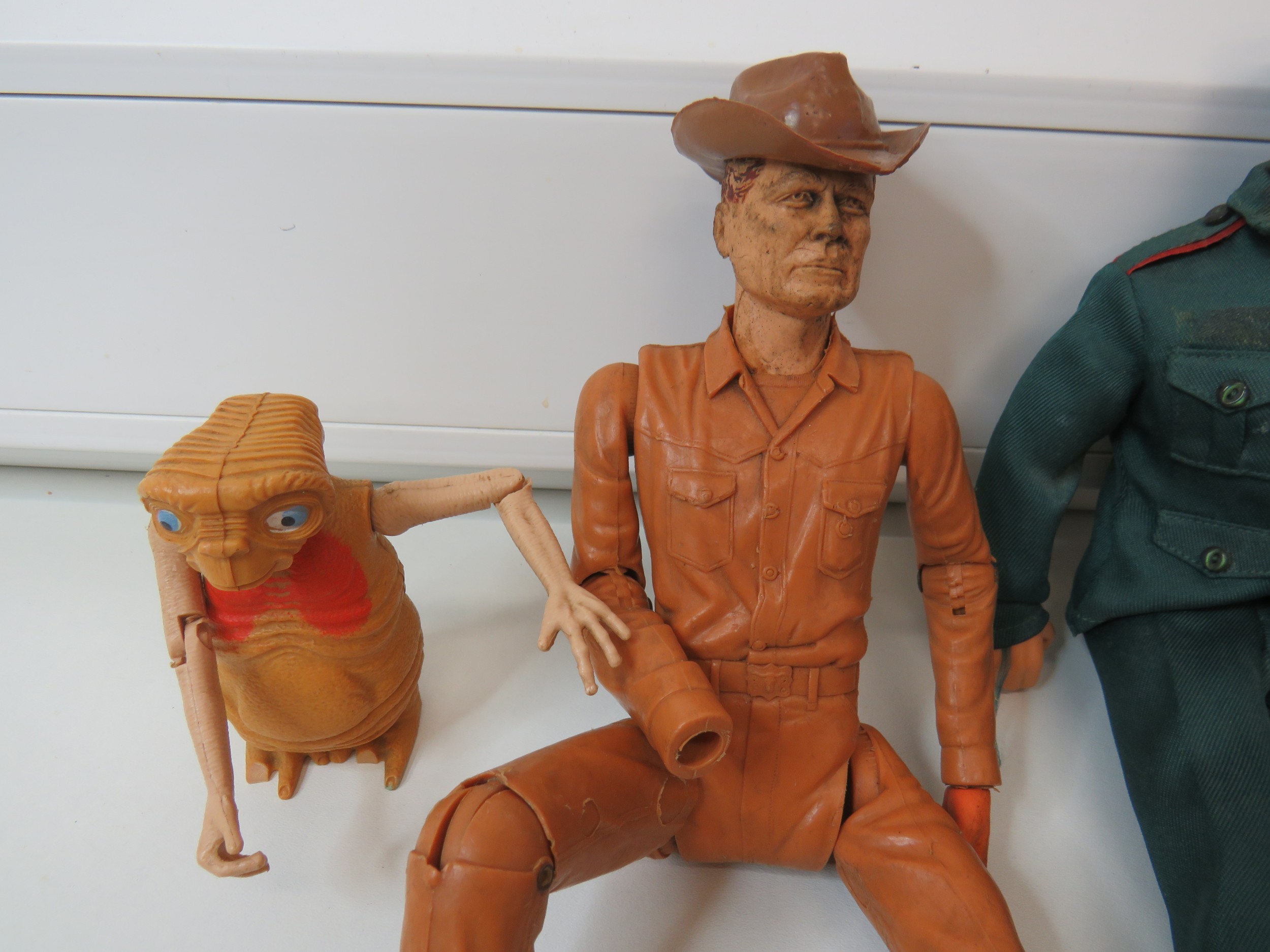 Vintage toy figures including 1967 Marx Toys Johnny West, Star Wars, ET etc.
