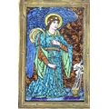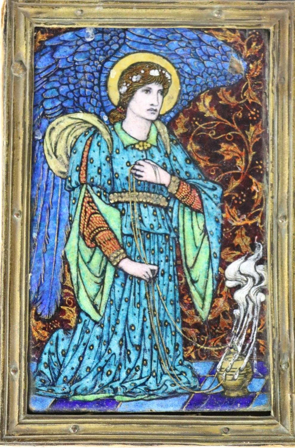 A Continental polychrome decorated enamel Panel, depicting medieval woman, holding a tourable, 15cms x 10cms (6" x 3 3/4"). (1)