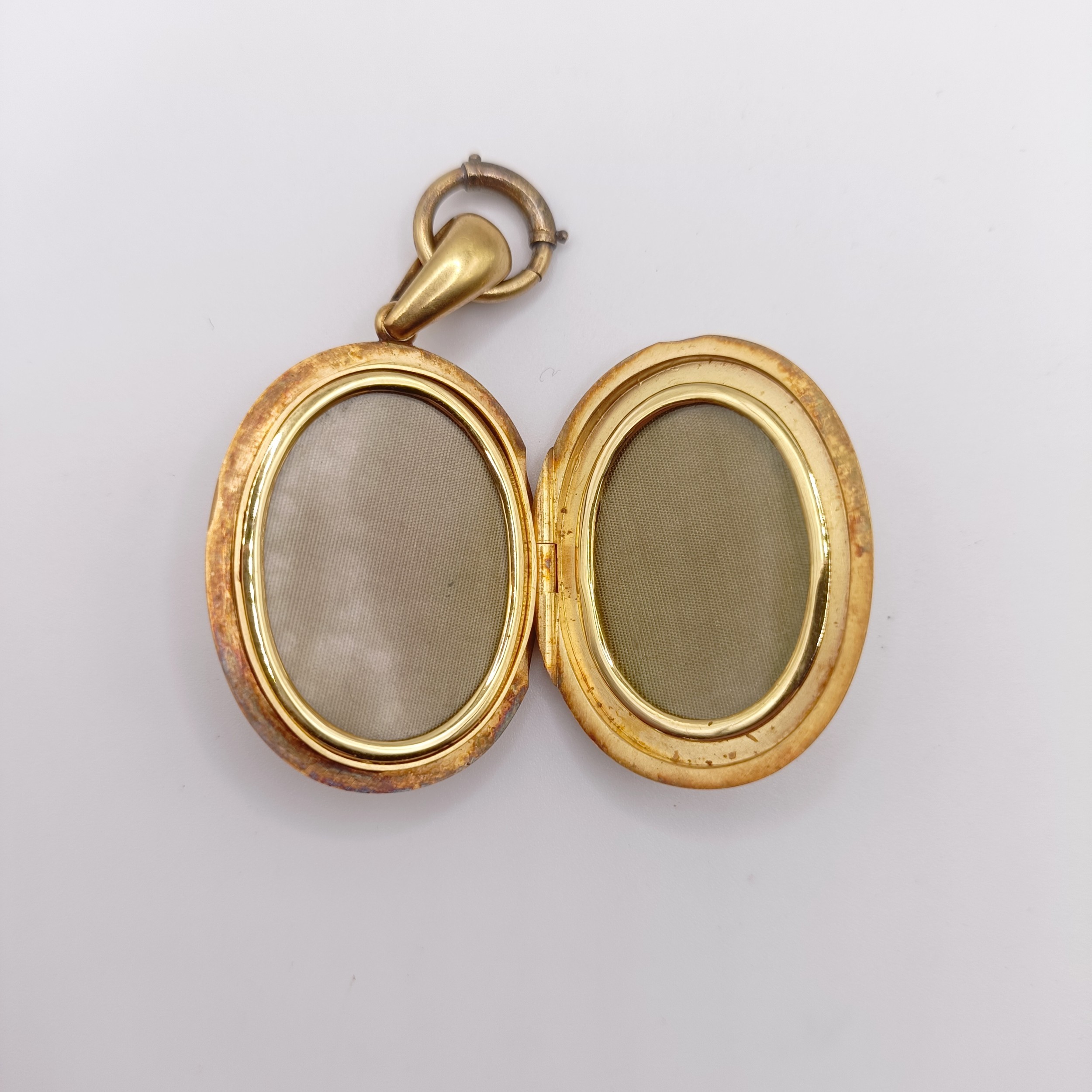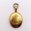 A late 19th century yellow coloured metal oval locket, initialled L