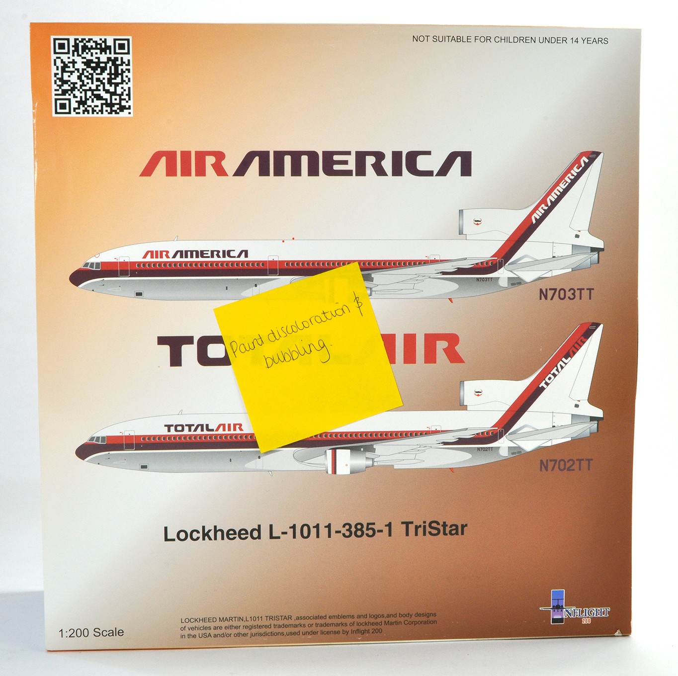 Diecast Model Aircraft comprising Inflight 1/200 Lockheed Tristar Total AIR. Some minor paint bubbling in places. Otherwise assumed, (but with no guarantee) generally excellent ex-shop / Factory return. Further images can be provided if necessary.