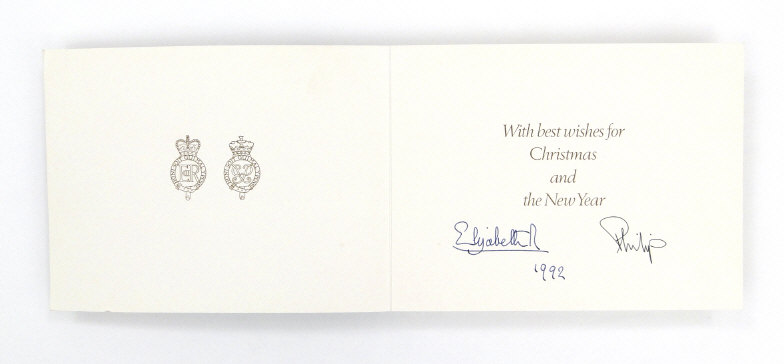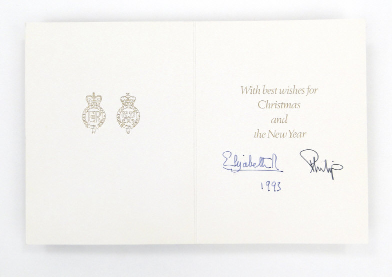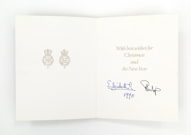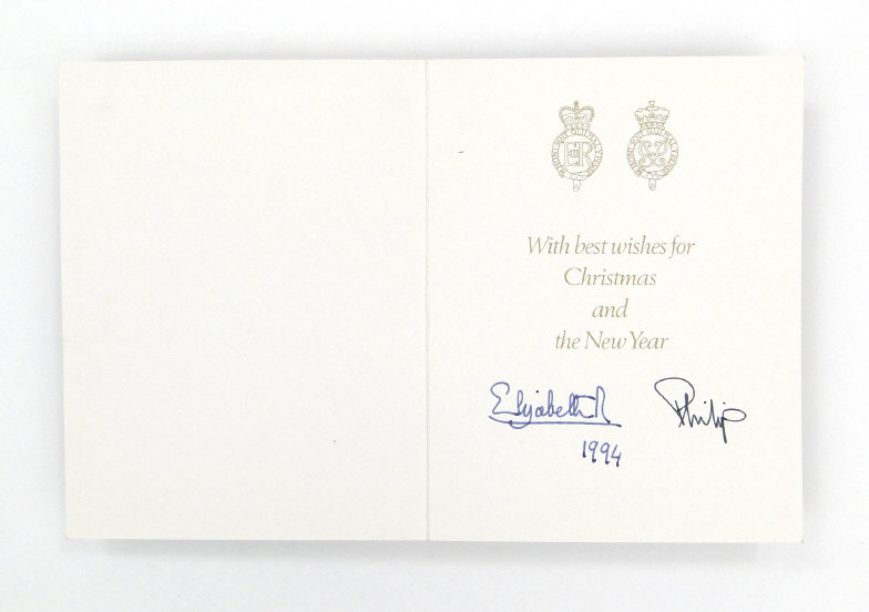 Six Royal commemorative Christmas cards signed by Queen Elizabeth II and Prince Phillip