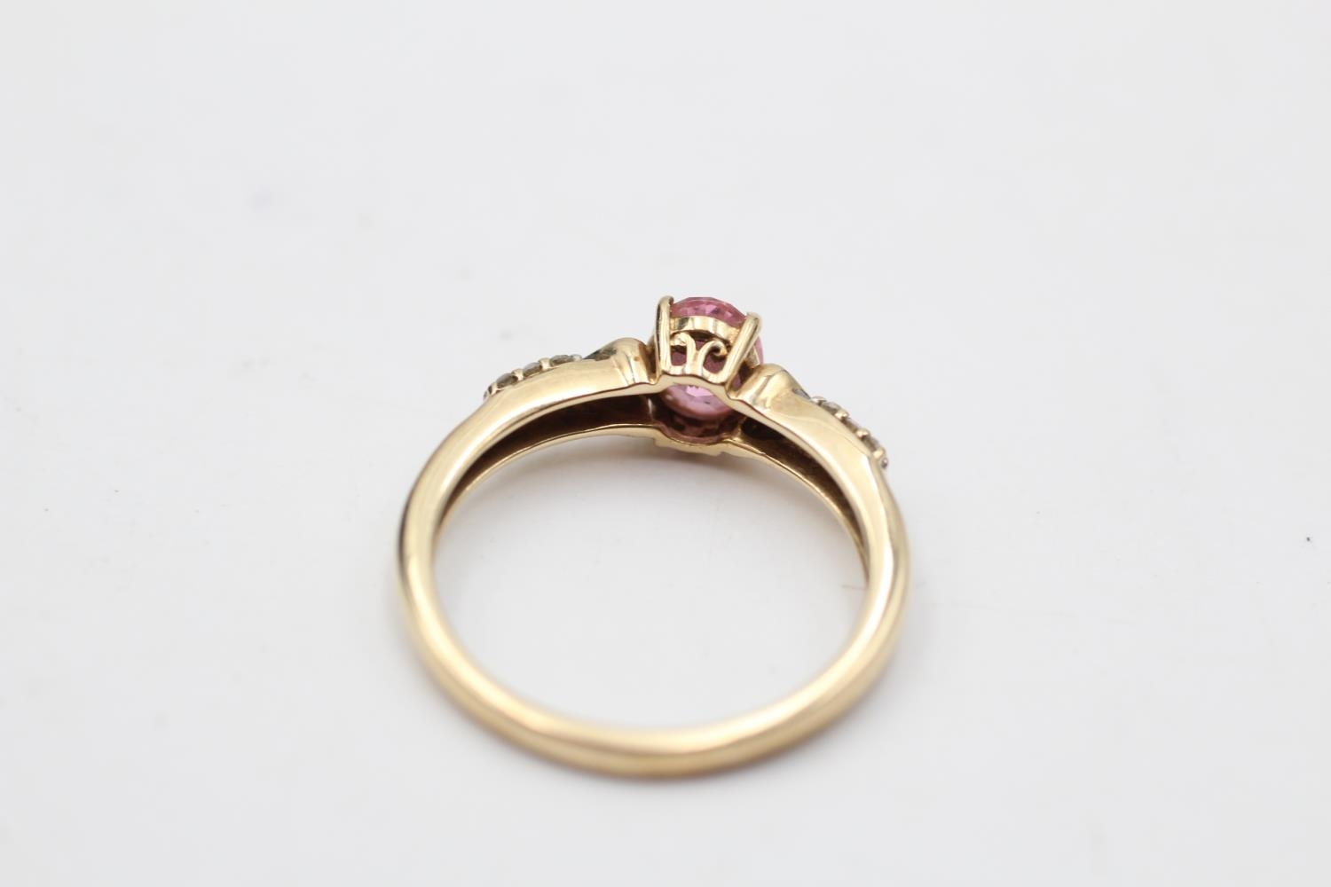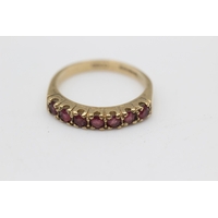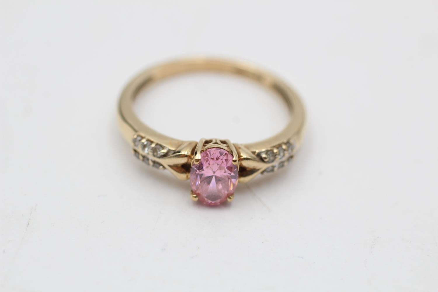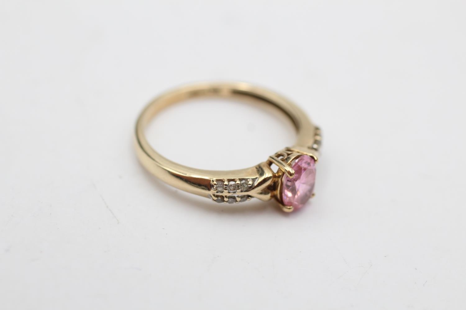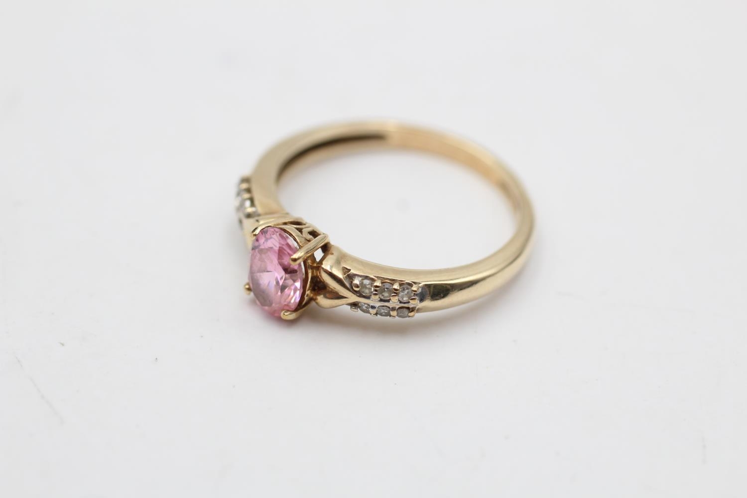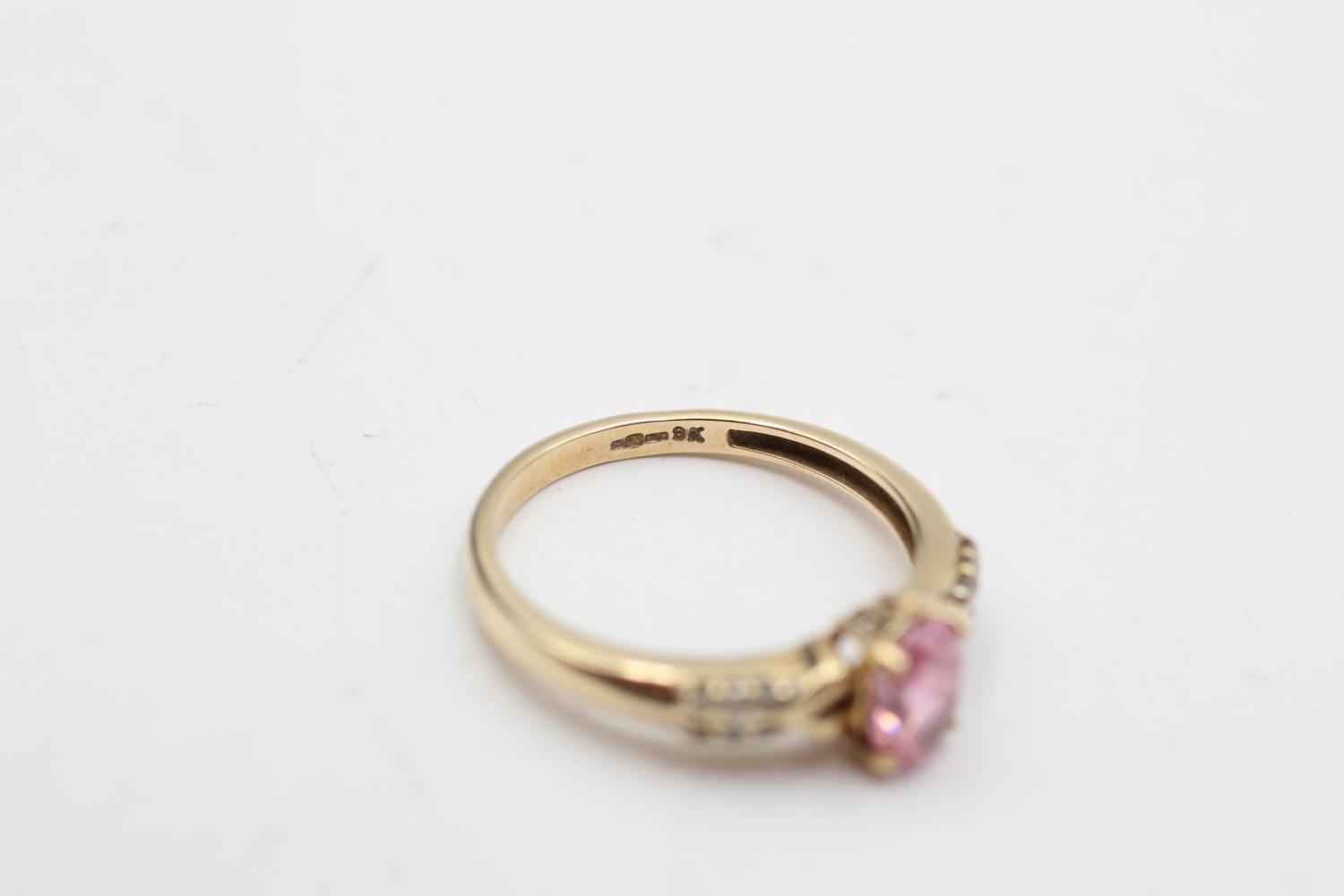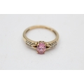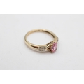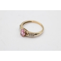 9ct gold pink gemstone & diamond seven stone dress ring (2.3g) Size O