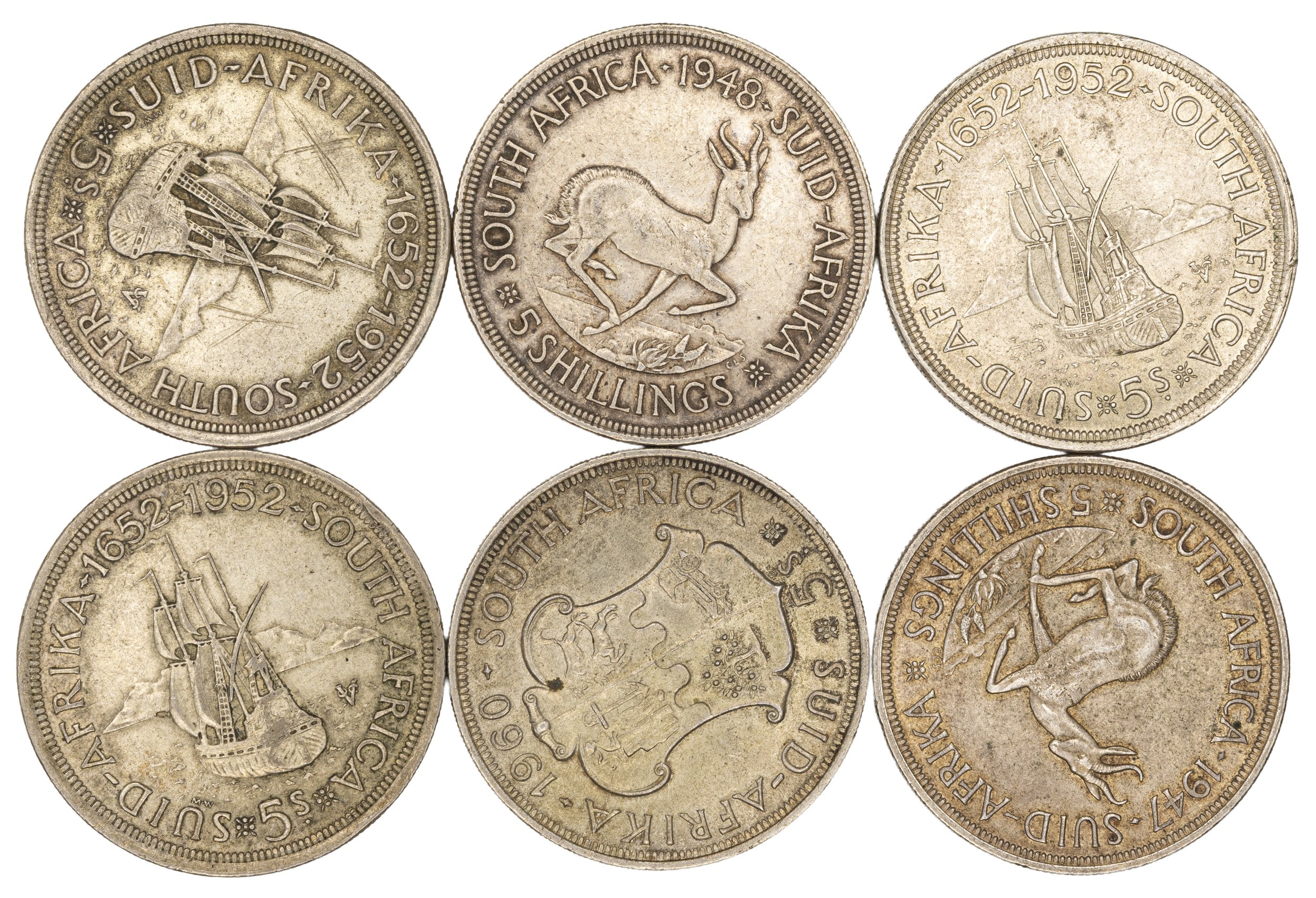 A MISCELLANEOUS COLLECTION OF SILVER SOUTH AFRICAN 5 SHILLINGS