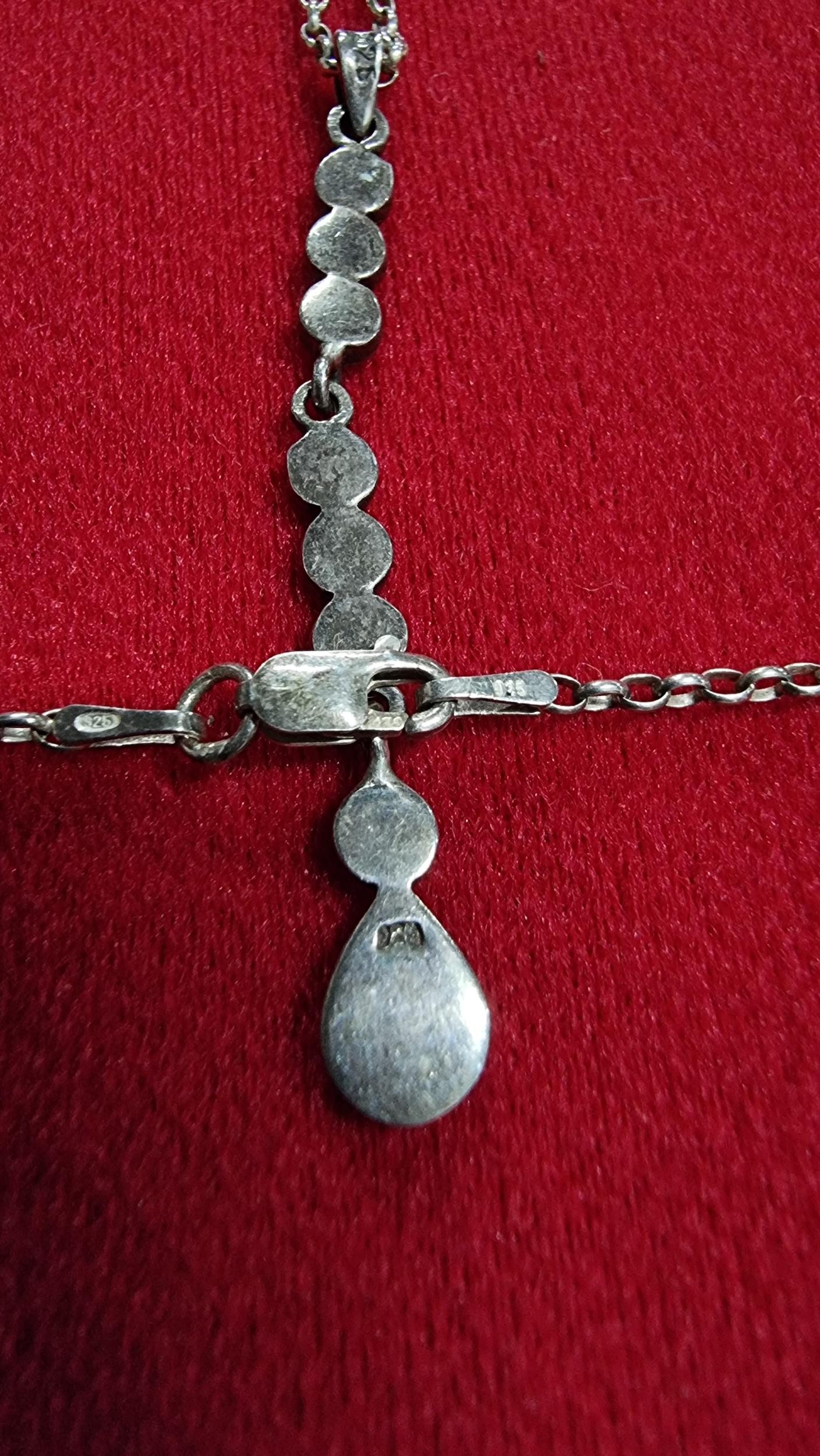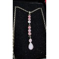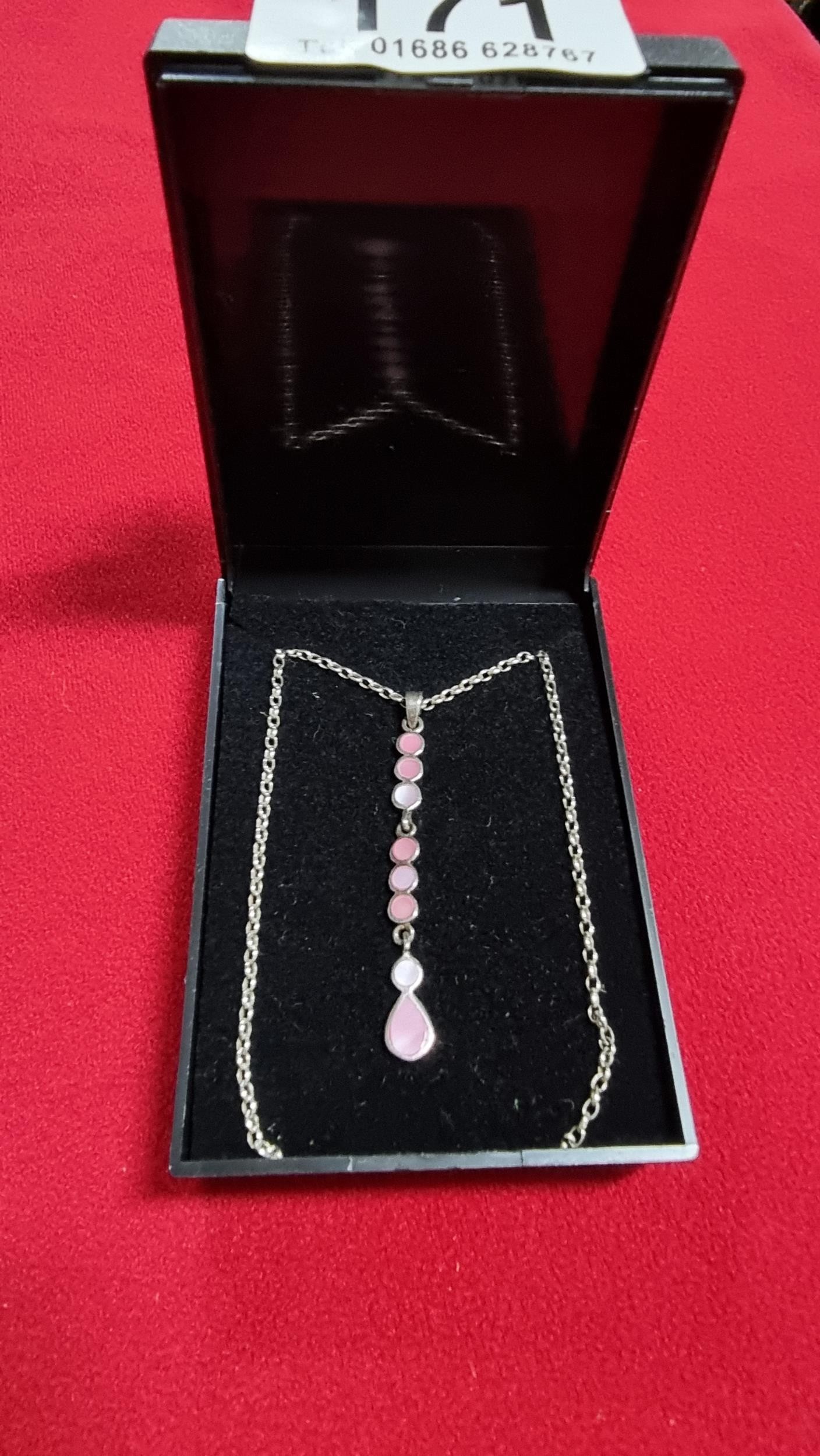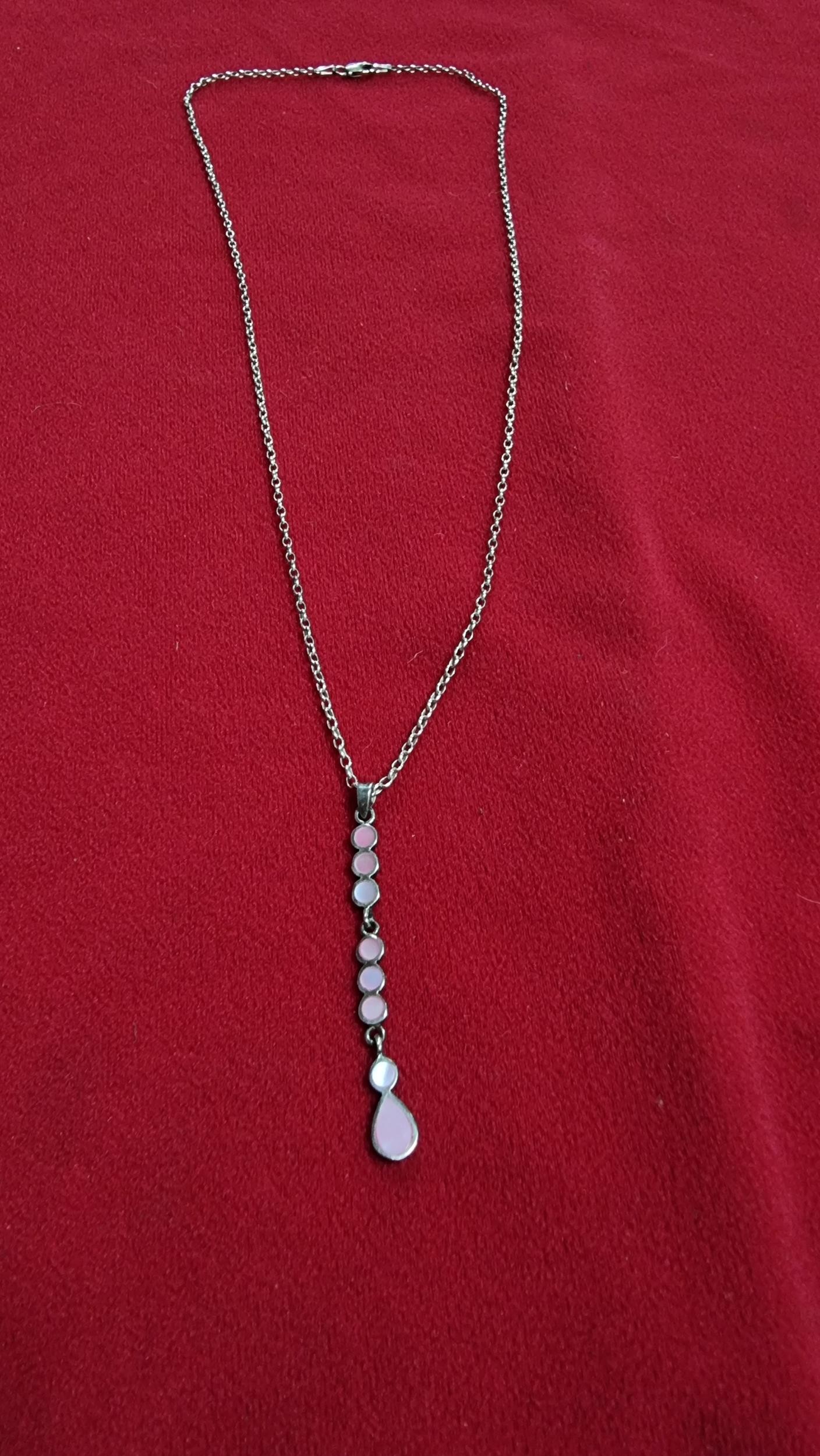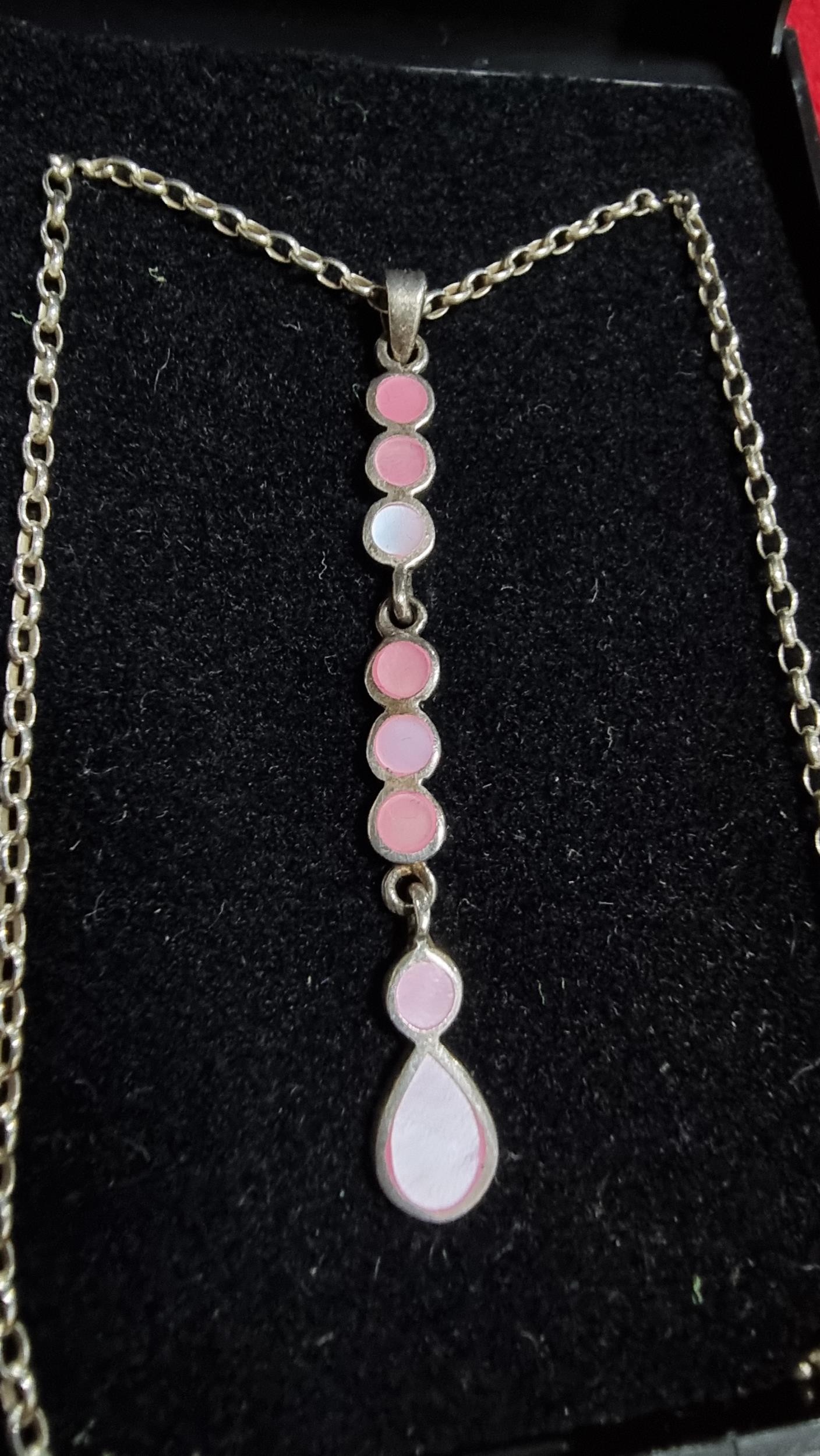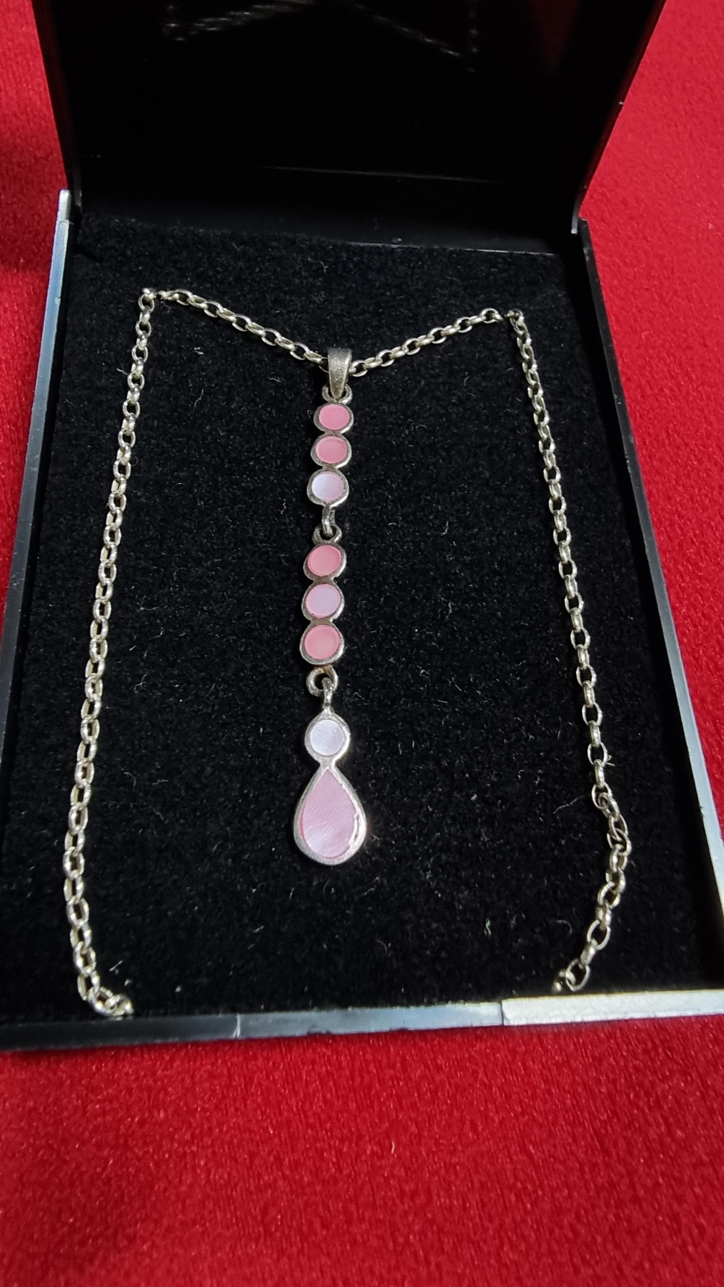 925 silver drop pendant inset with pink Mother of Pearl on a 18 inch 925 silver chain