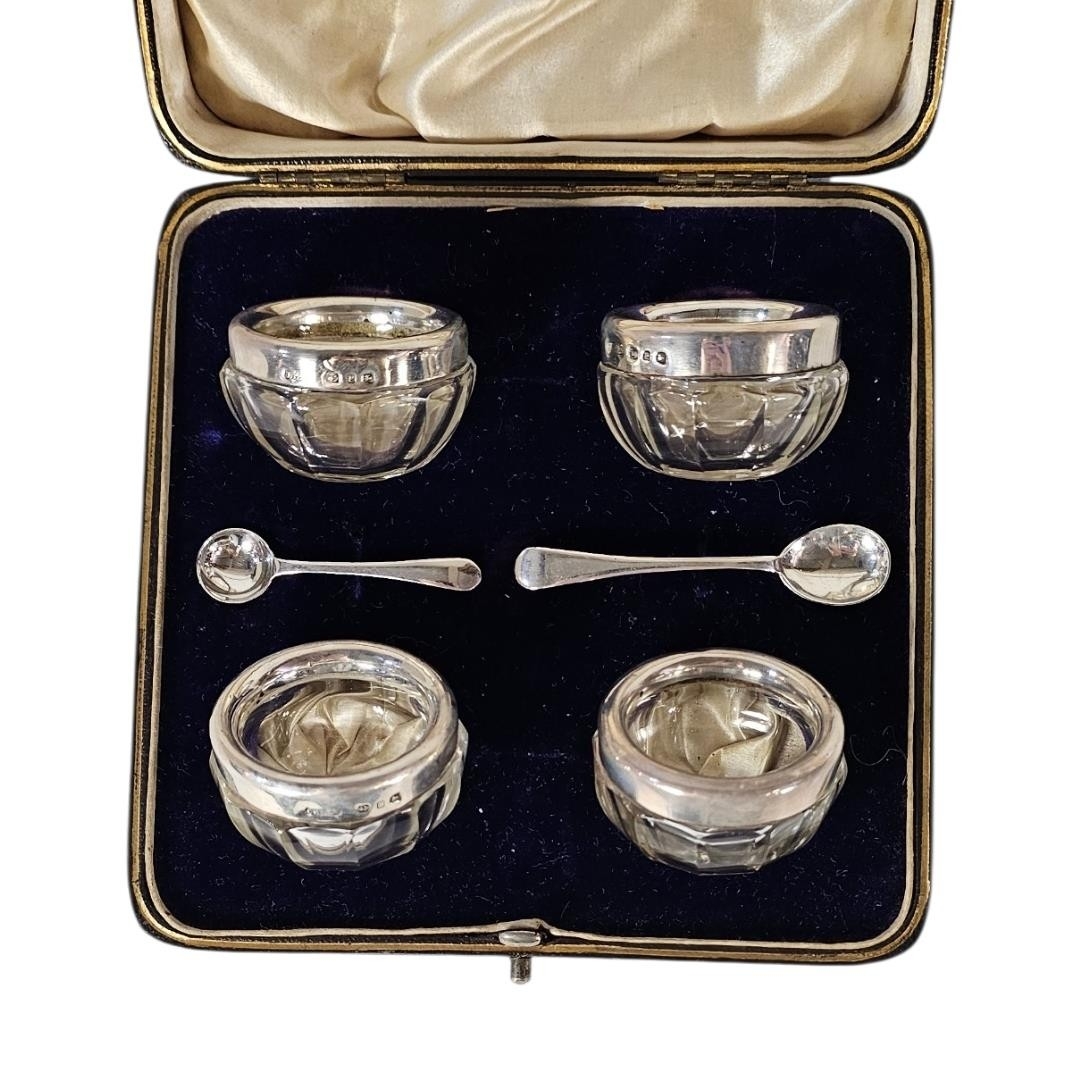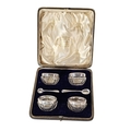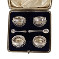 A SET OF FOUR VICTORIAN SILVER AND GLASS SALTS