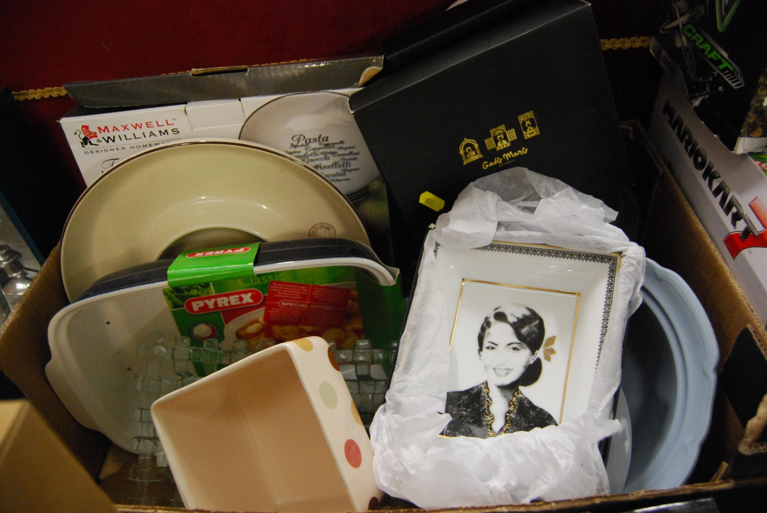MAXWELL WILLIAMS TRATTORIA PASTA DISH, PYREX CLASSIC DISH, 3 GADIS MANIS DISHES, ETC
