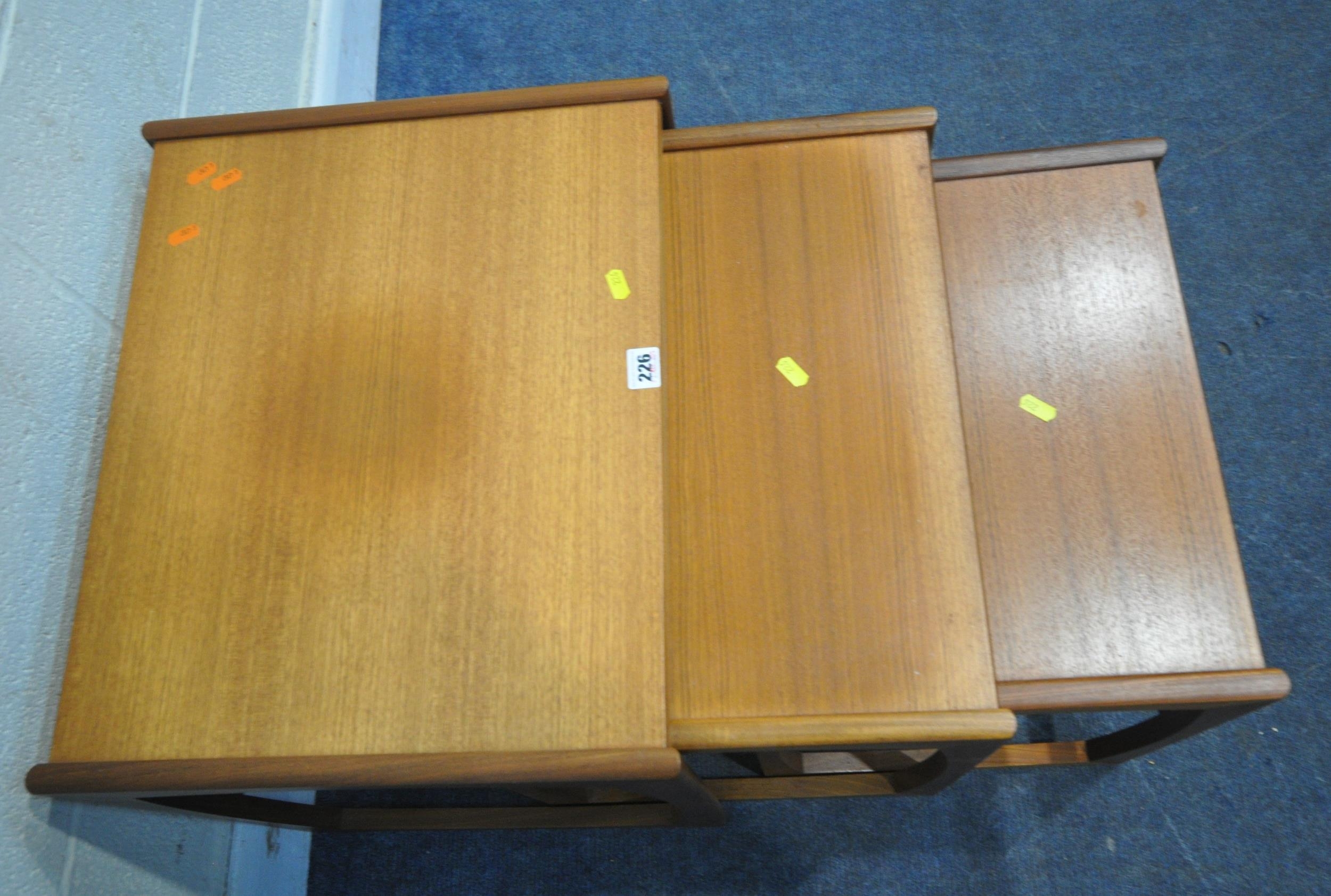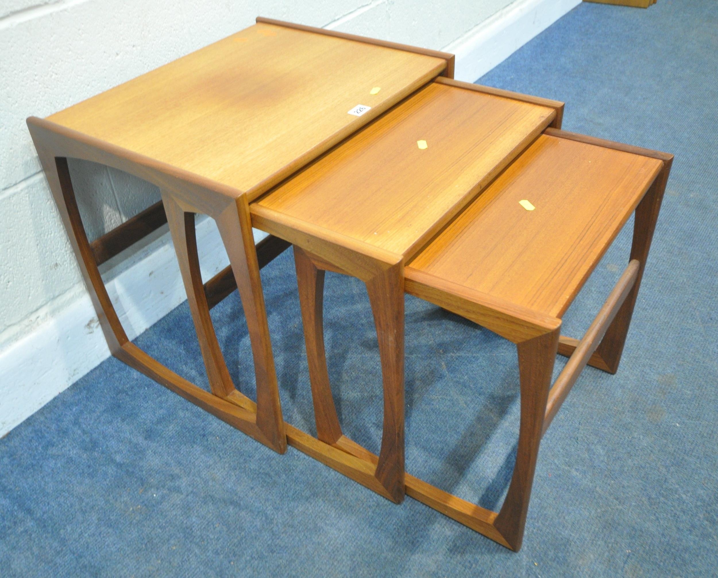 G PLAN QUADRILLE, A MID-CENTURY TEAK NEST OF THREE TABLES, largest table width 54cm x depth 44cm x height 49cm, condition report: some discolouration