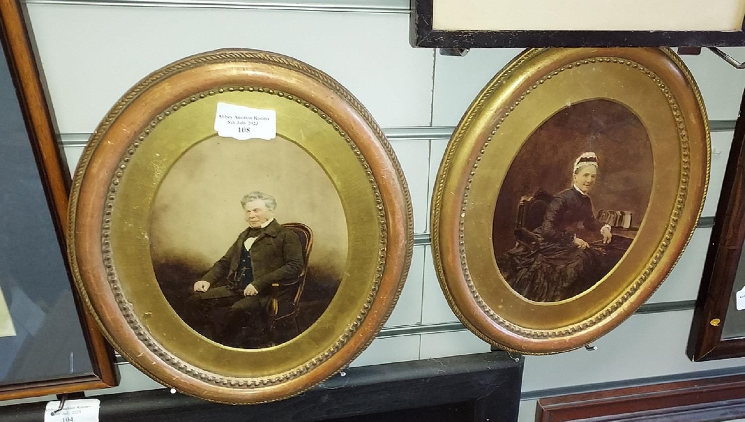 2 Small Oval Framed Watercolours Of Lady And Gentlemen