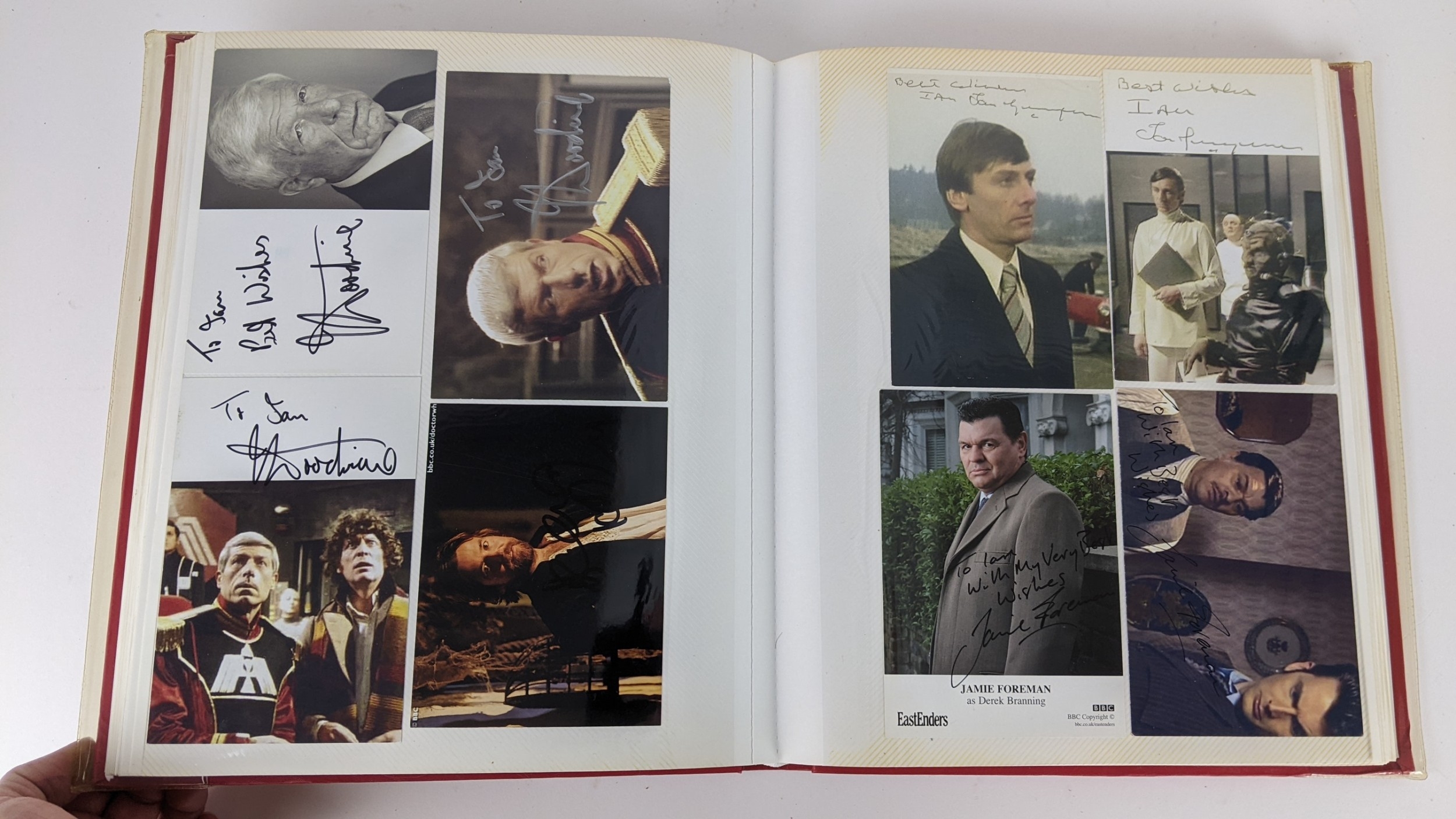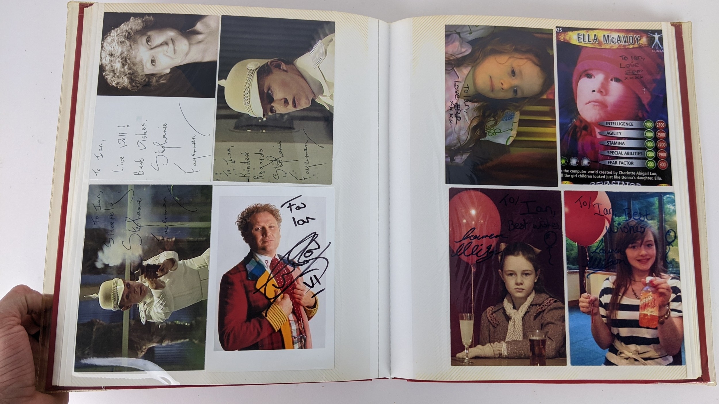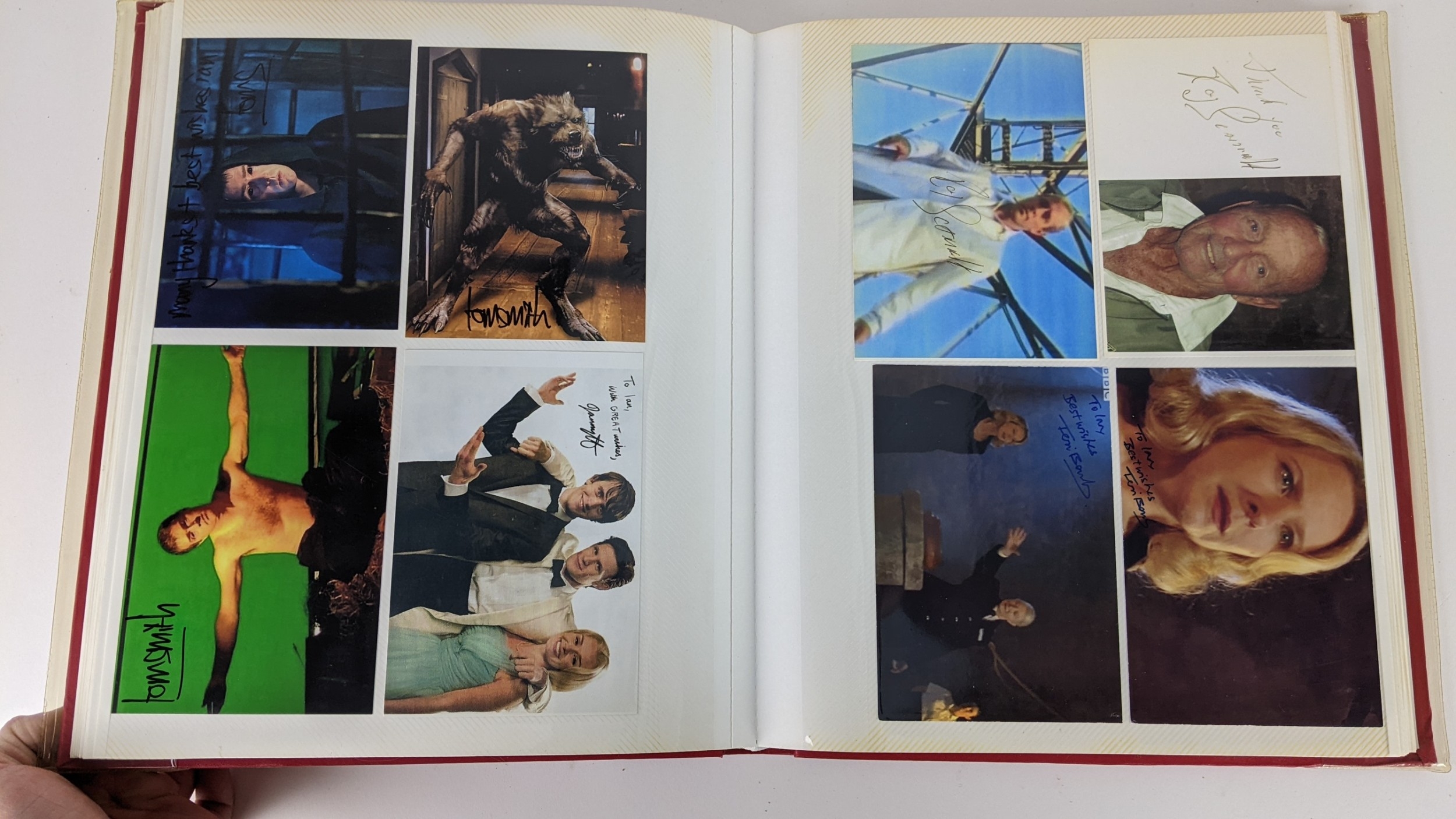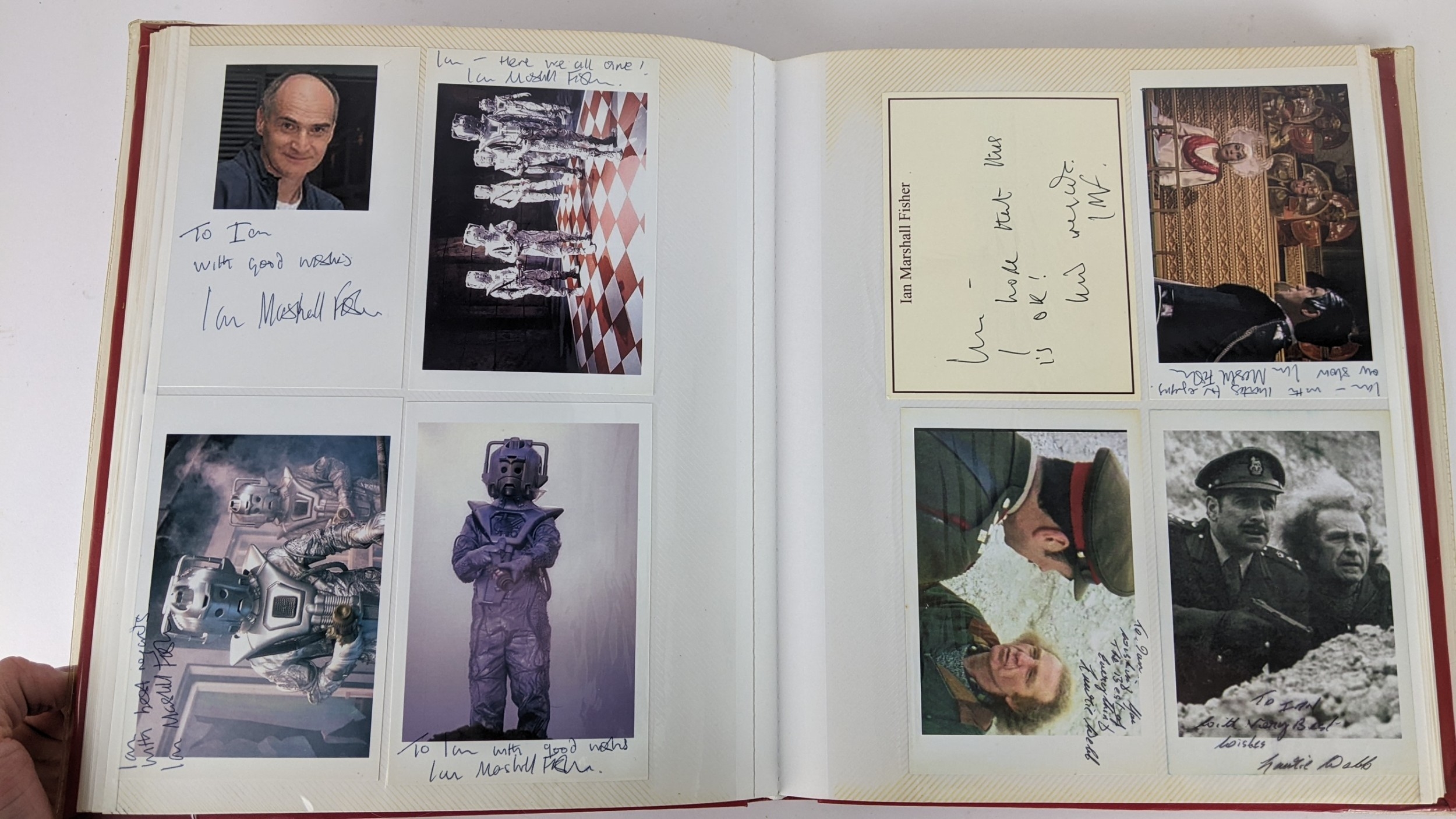 A Doctor Who album of autographs on photos, signed by several cast members to include Jacqueline Pearce, Tara Ward, Sarah Lancashire and others
