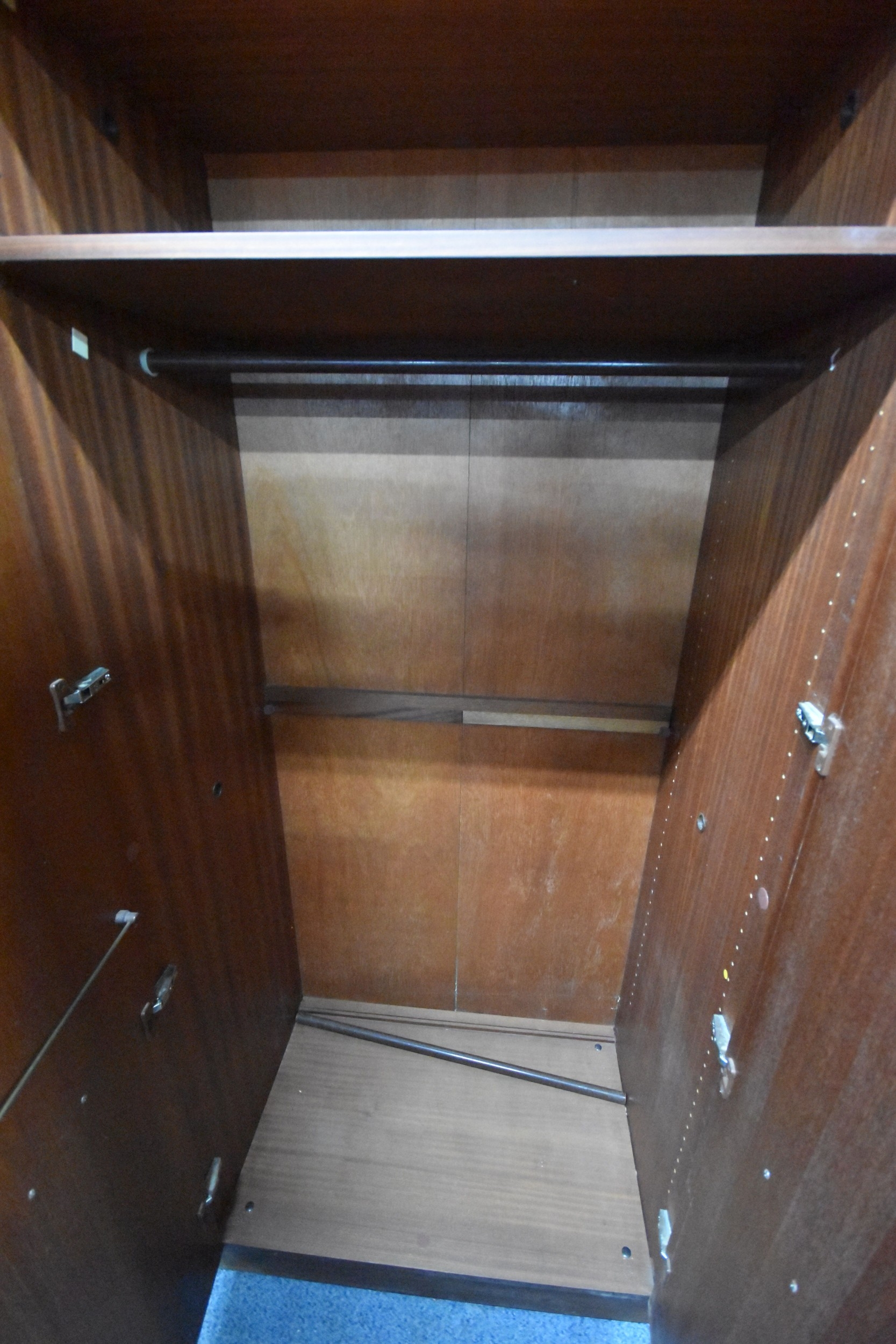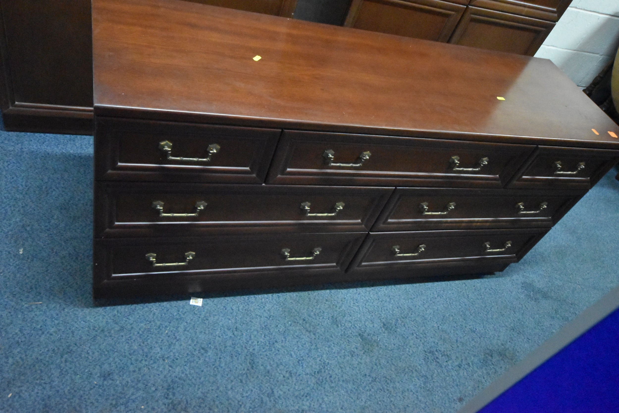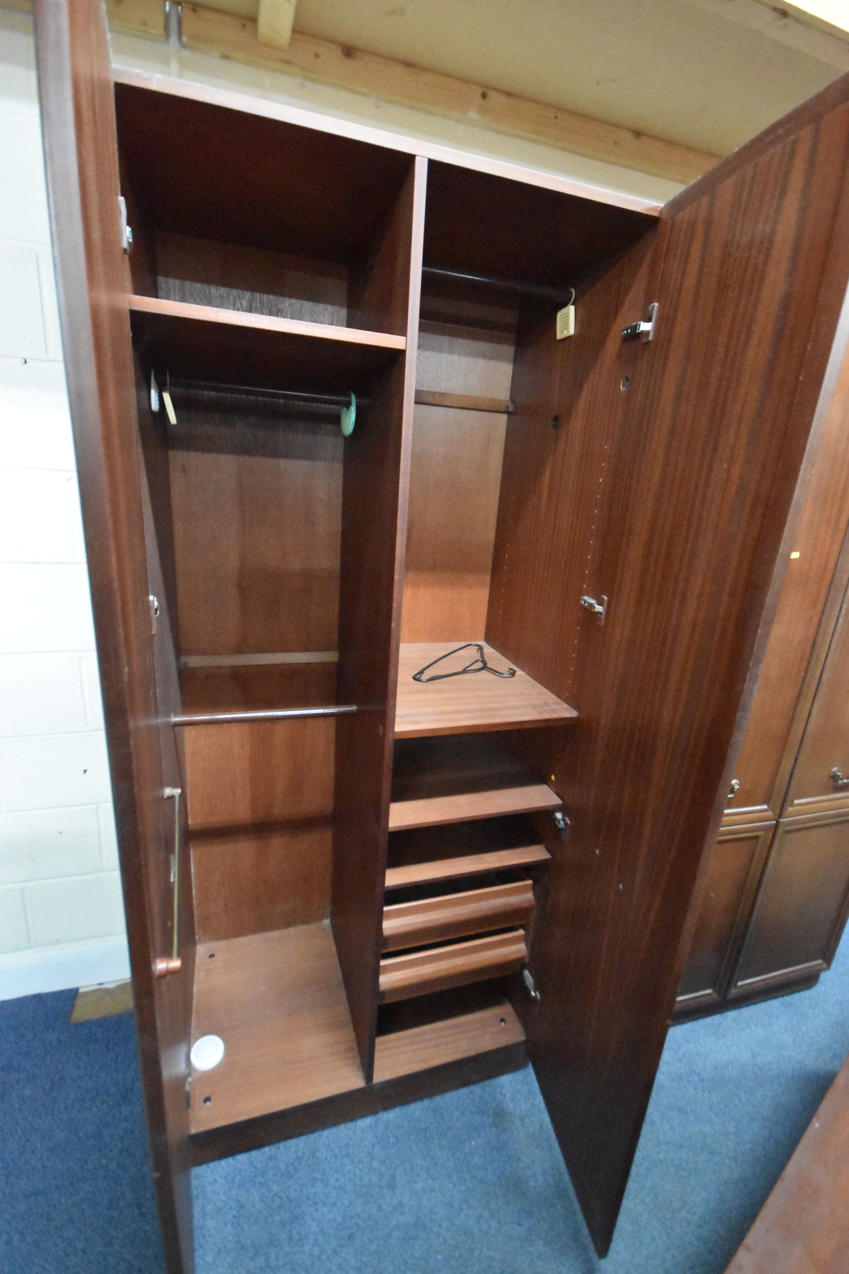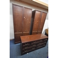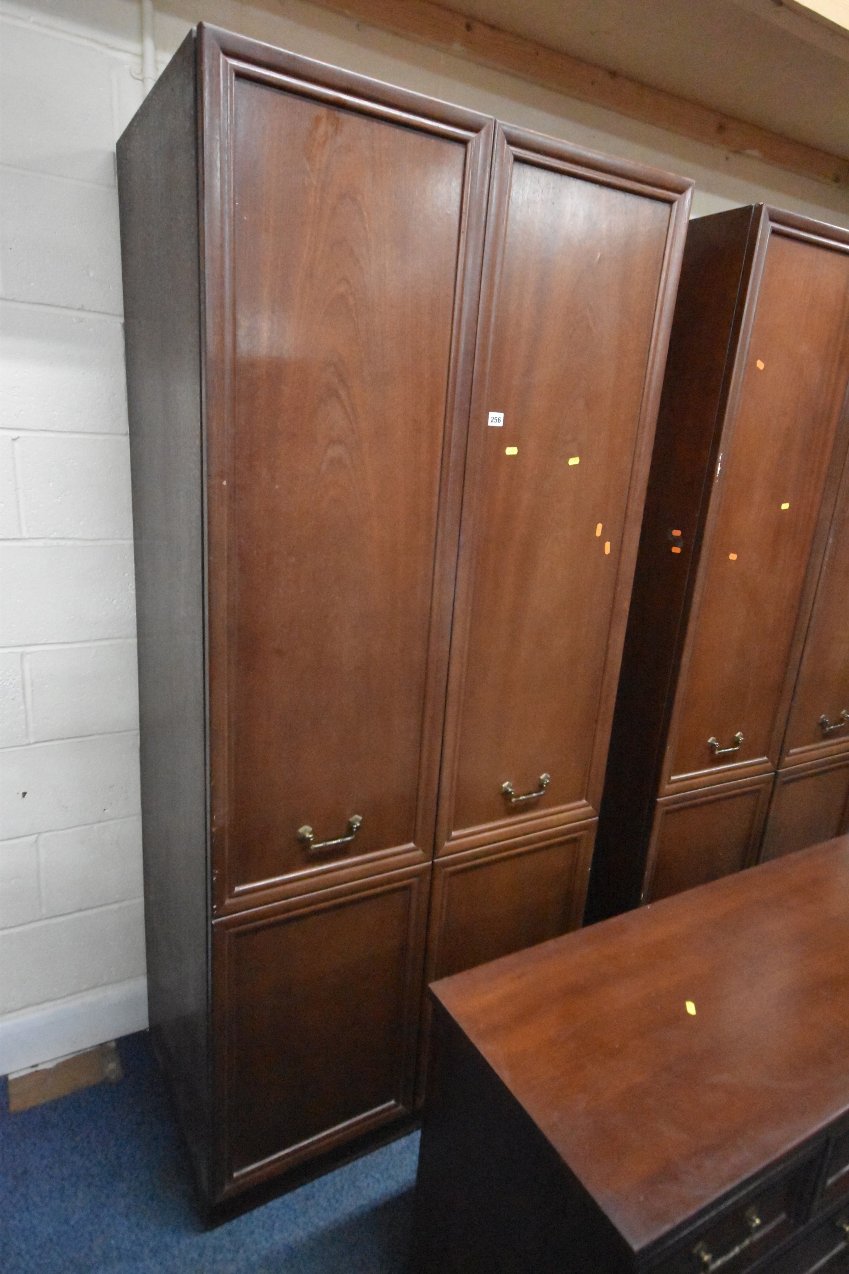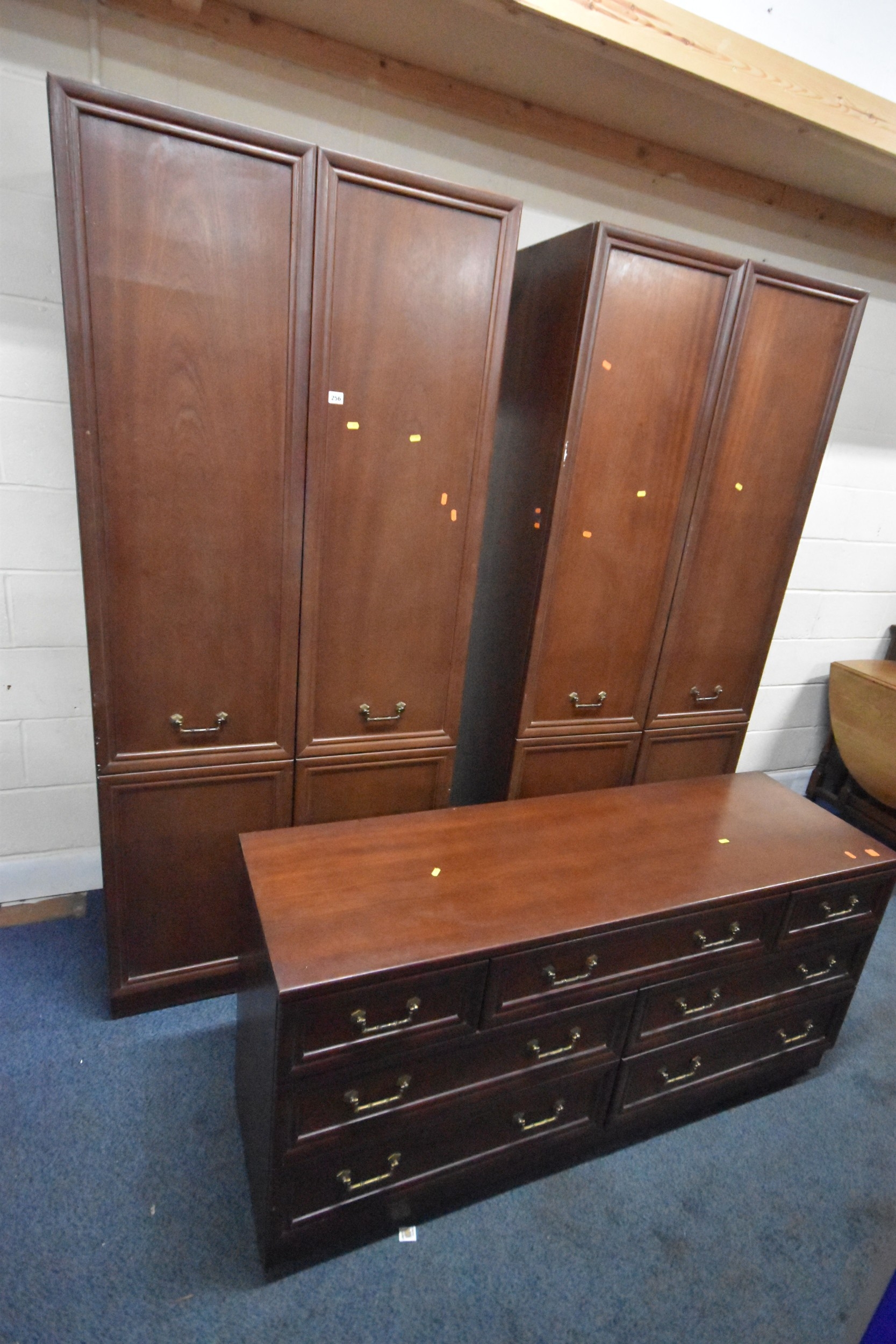 TWO LATE 20TH CENTURY MAHOGANY DOUBLE DOOR WARDROBE, width 92cm x depth 59cm x height 205m, along with a matching sideboard / bank of seven drawers, condition report: marks, scuffs, discolouration, other wear and usage (3)