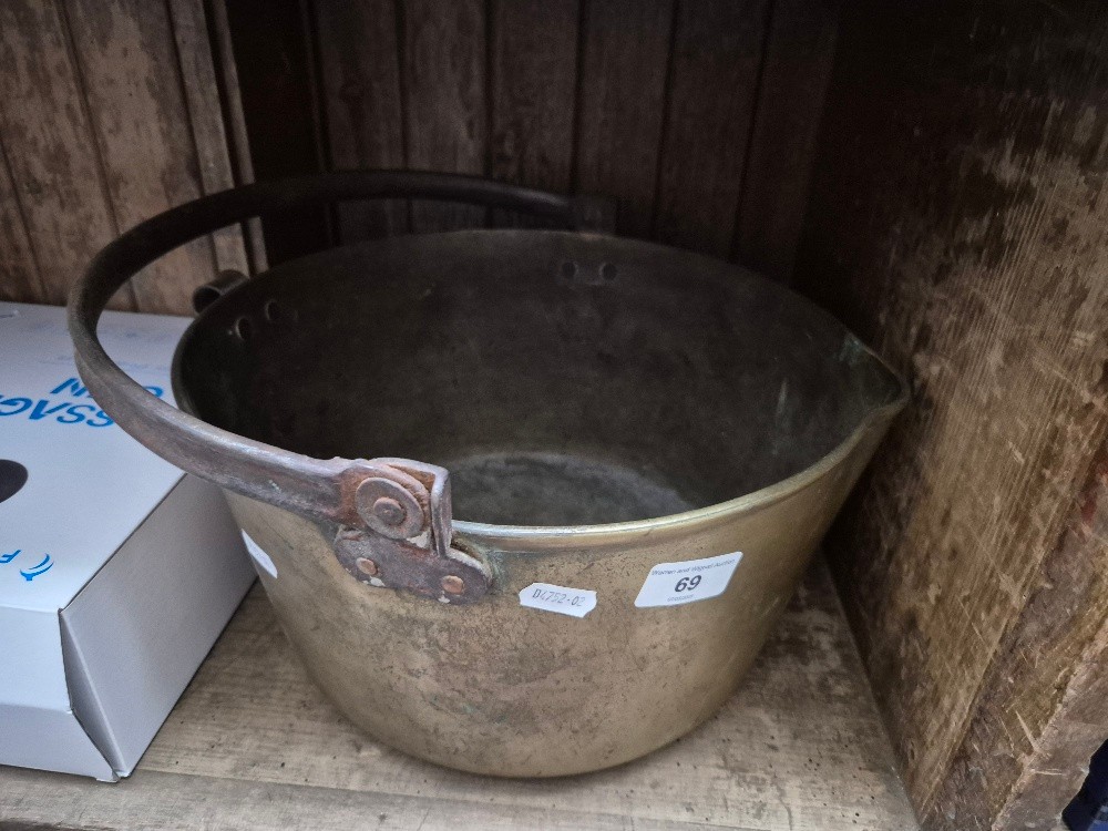 A large brass jam pan.
