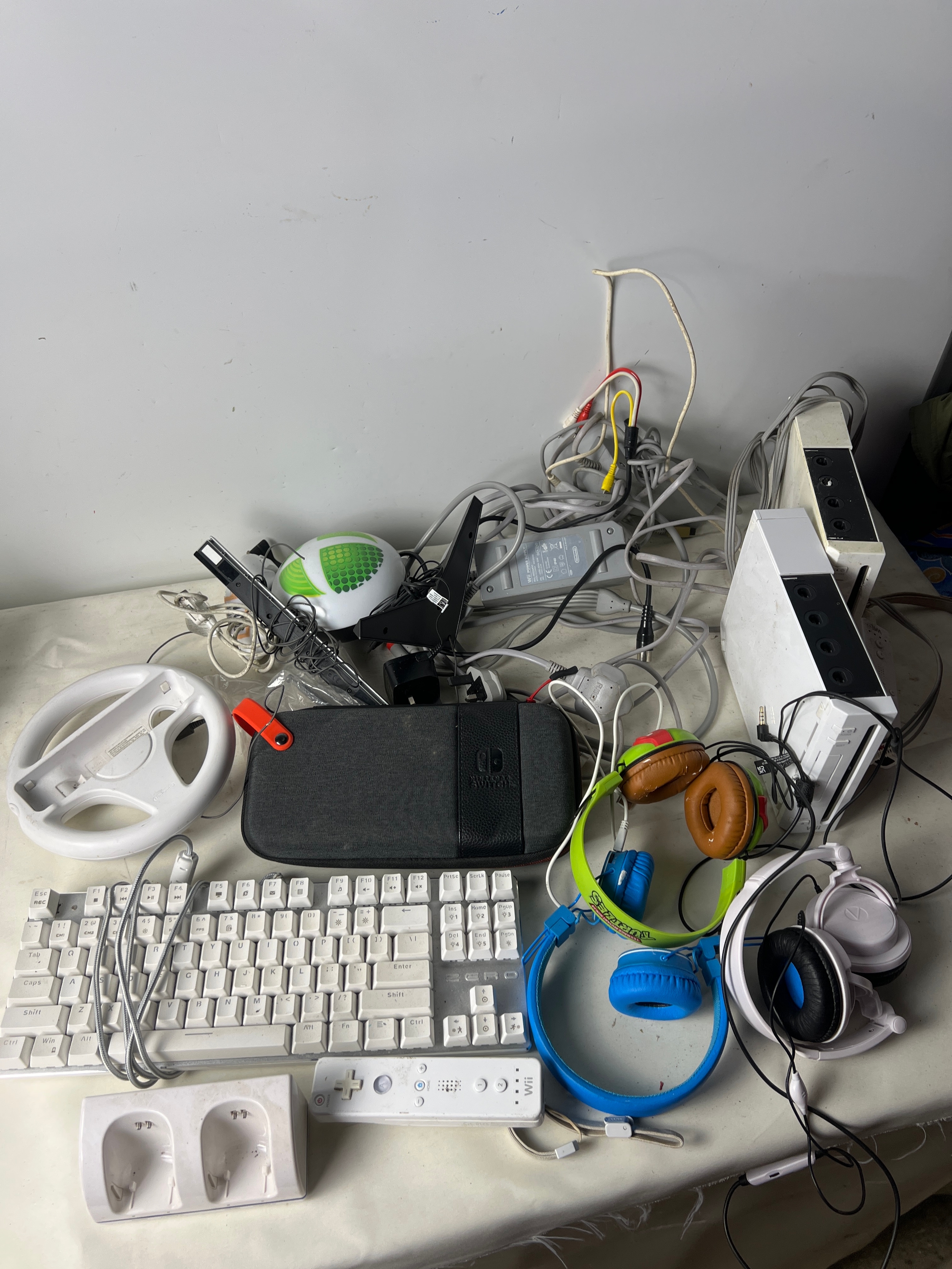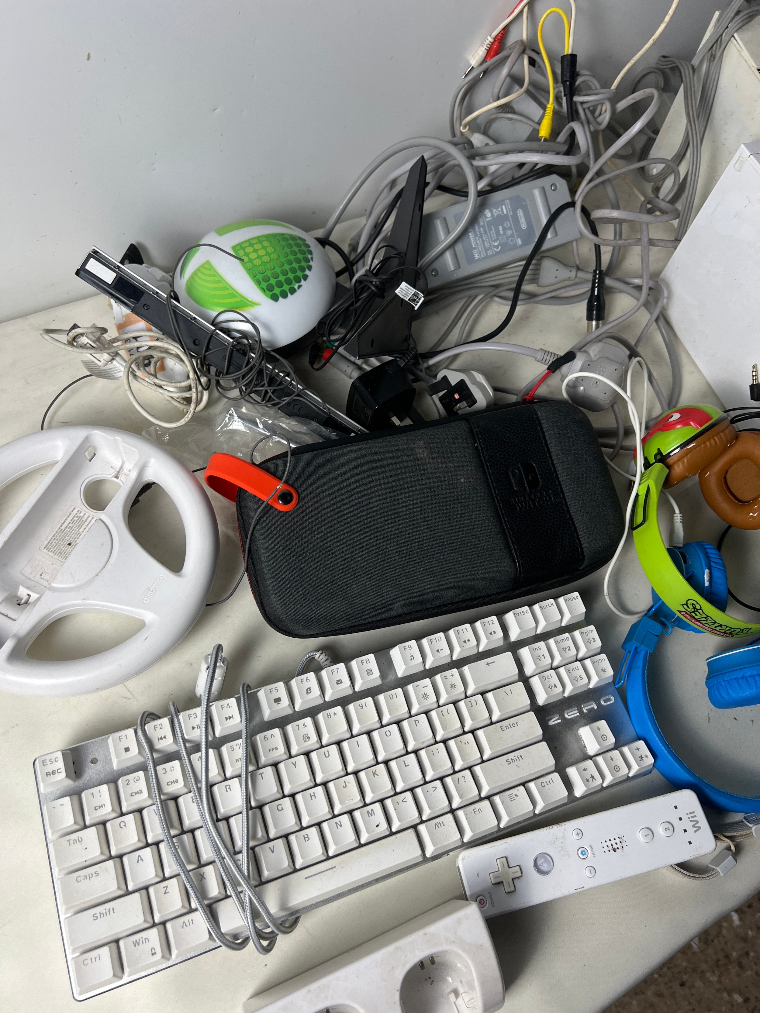 Mixed gaming lot inc Wii’s, Xbox light, gaming keyboard, wii u case and more