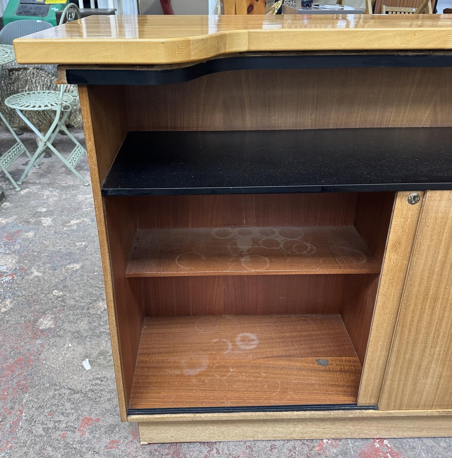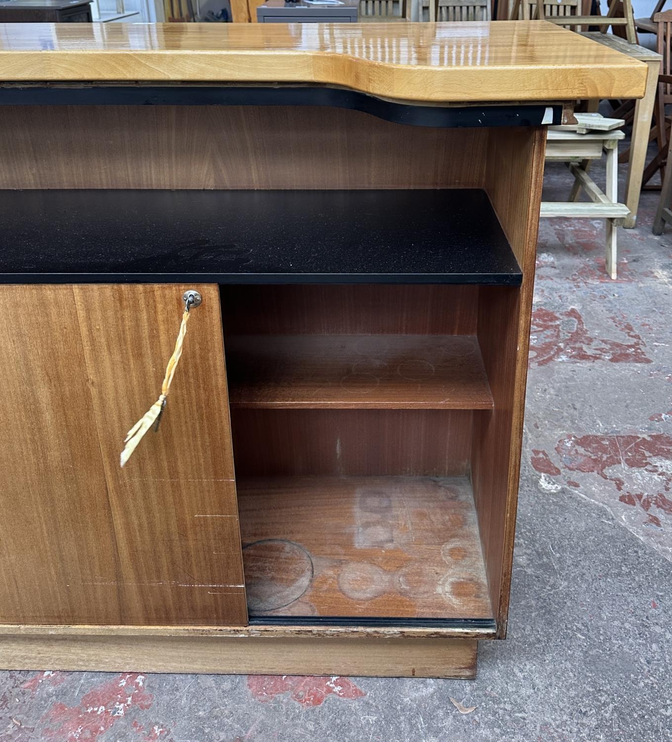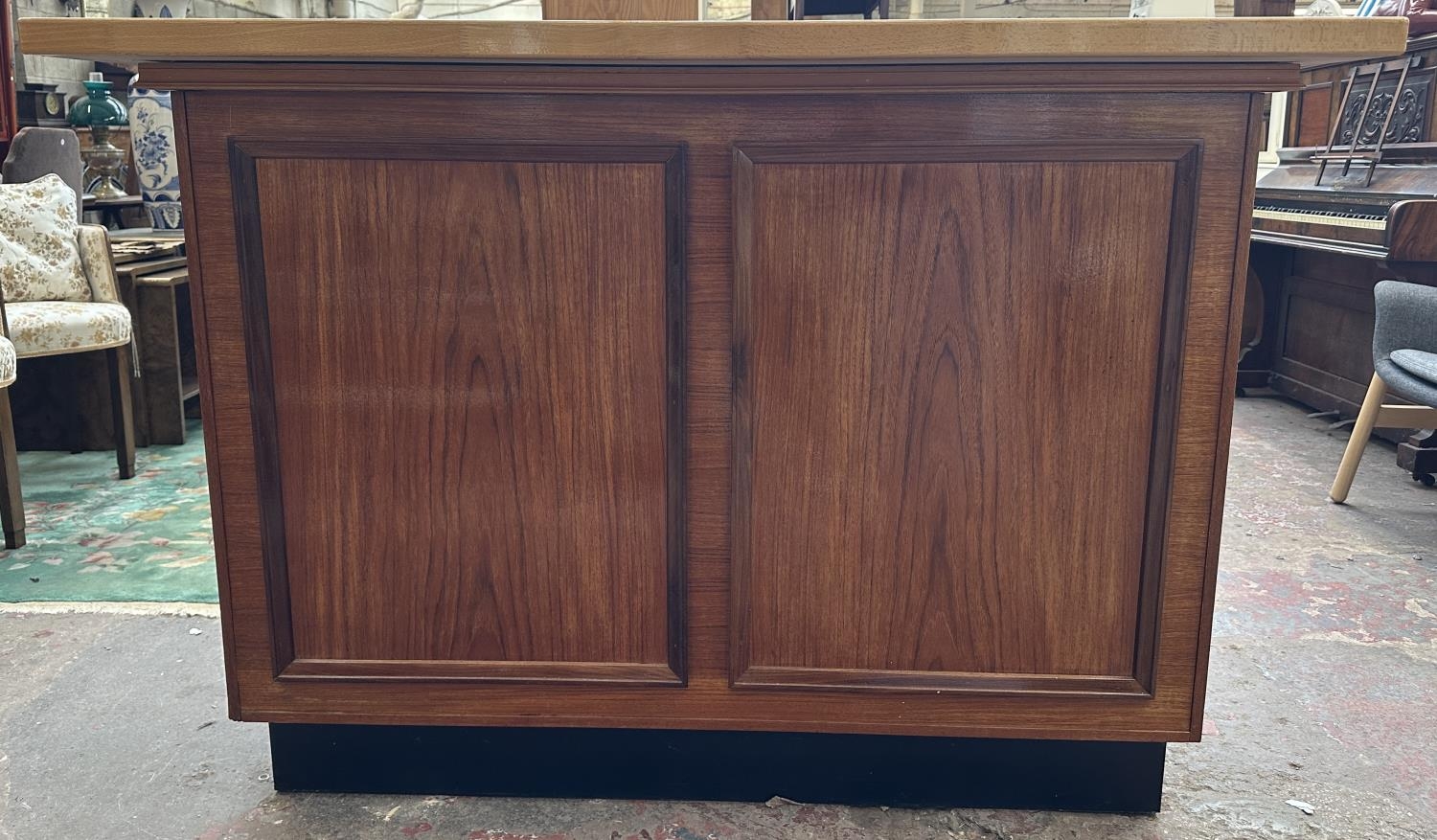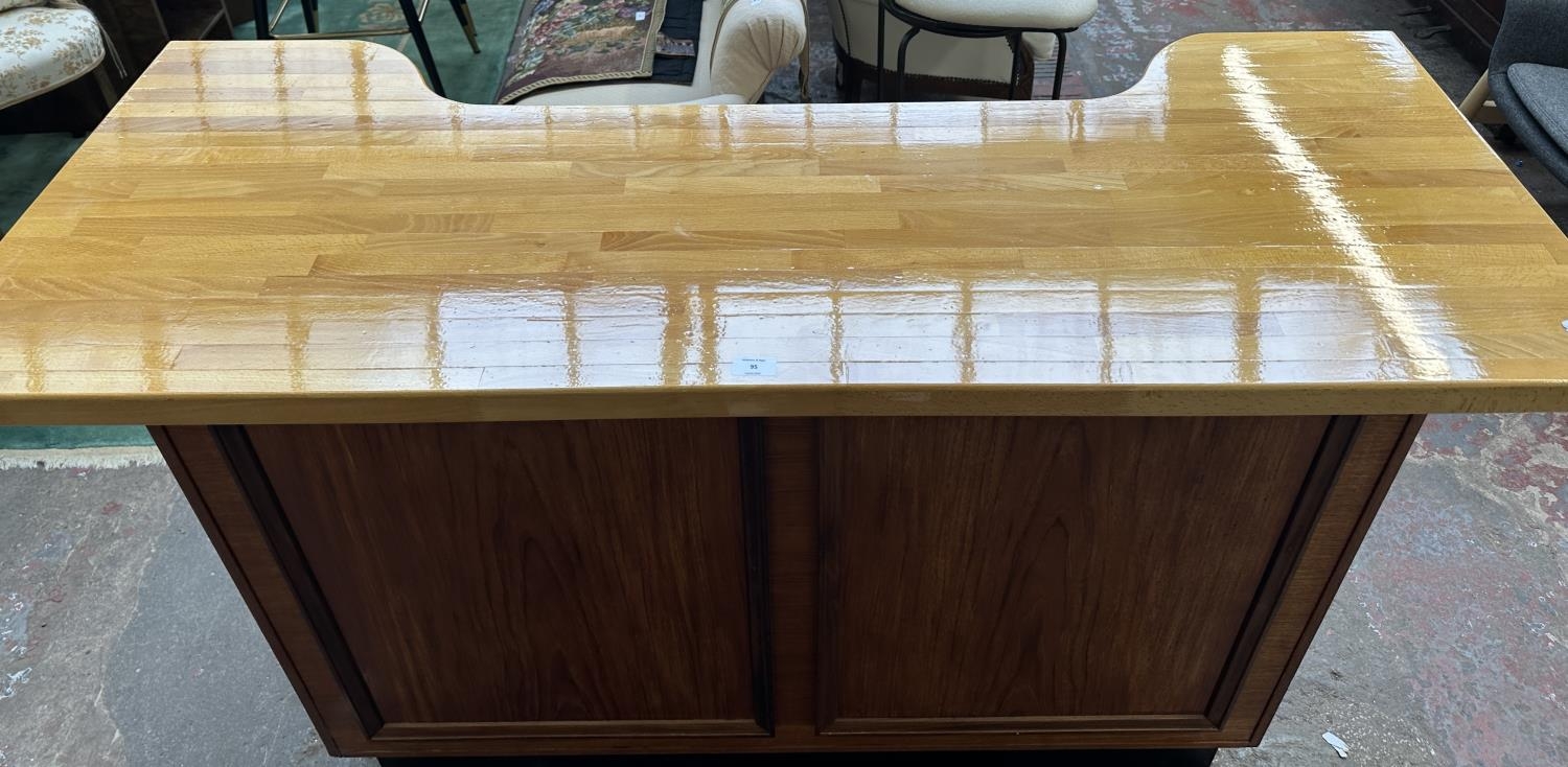 A mid 20th century teak and beech drinks bar - approx. 108cm high x 153cm wide x 58cm deep