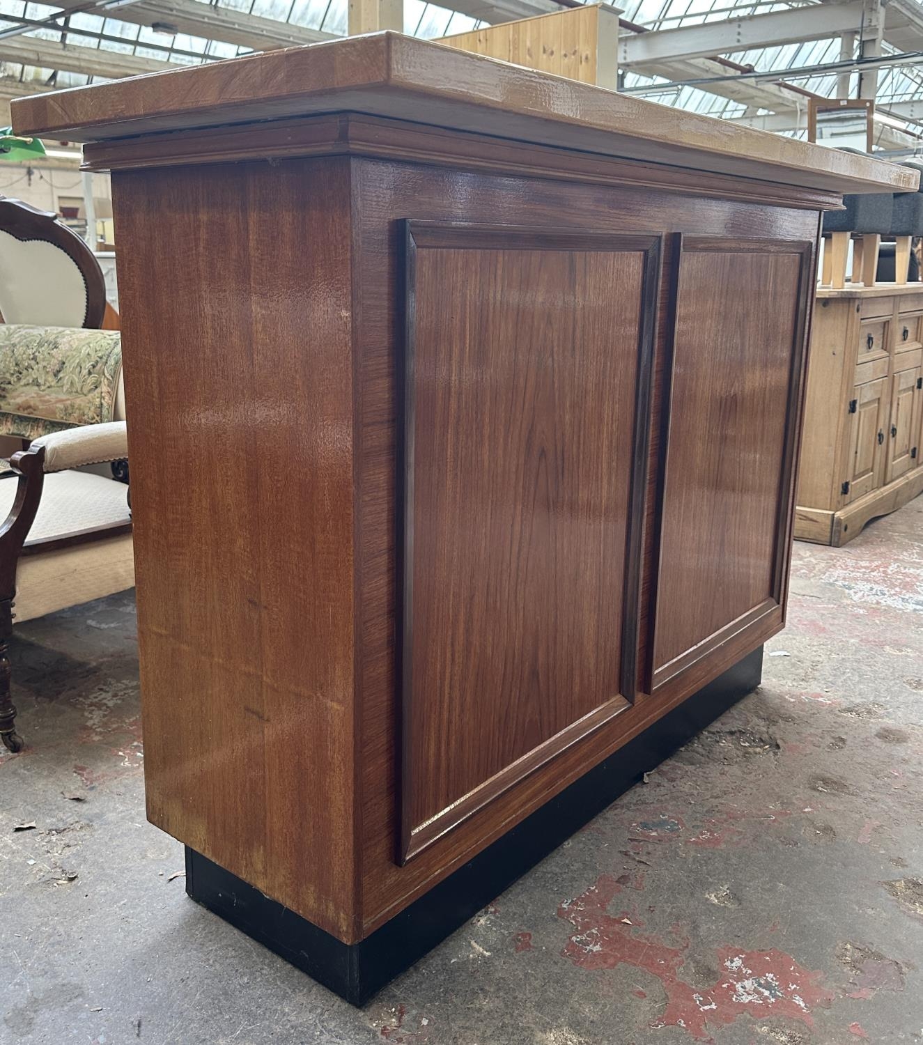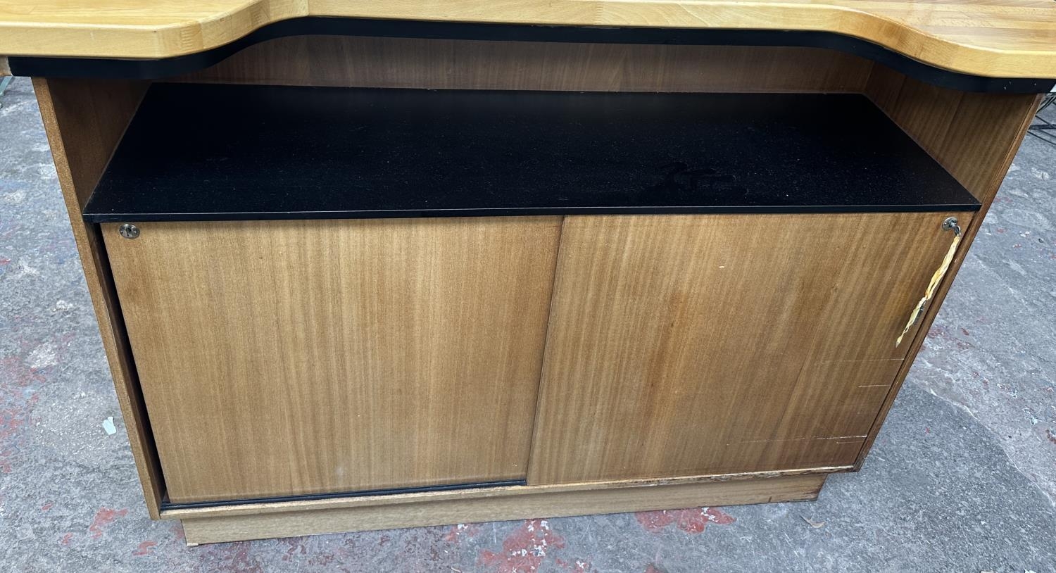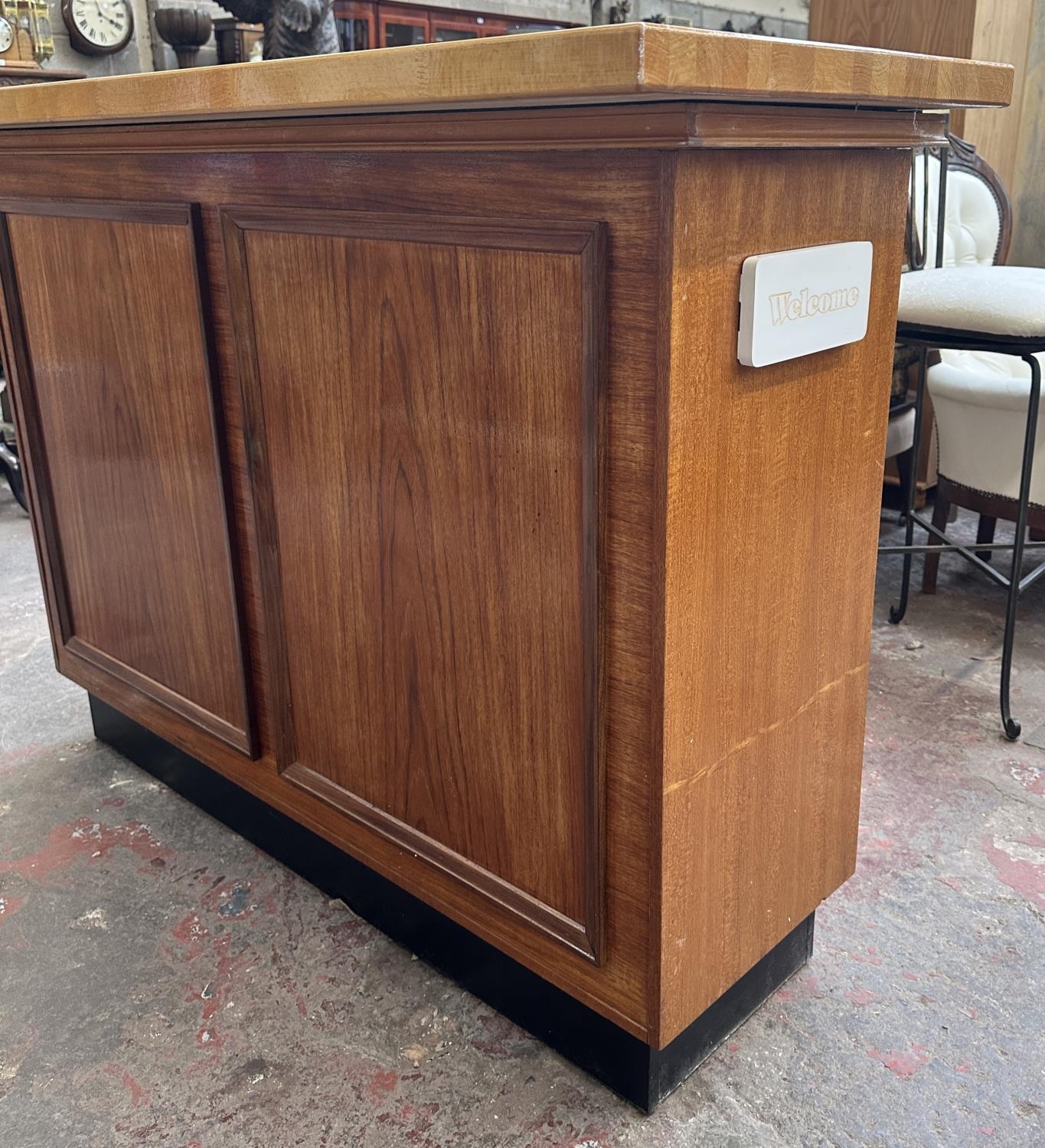 A mid 20th century teak and beech drinks bar - approx. 108cm high x 153cm wide x 58cm deep