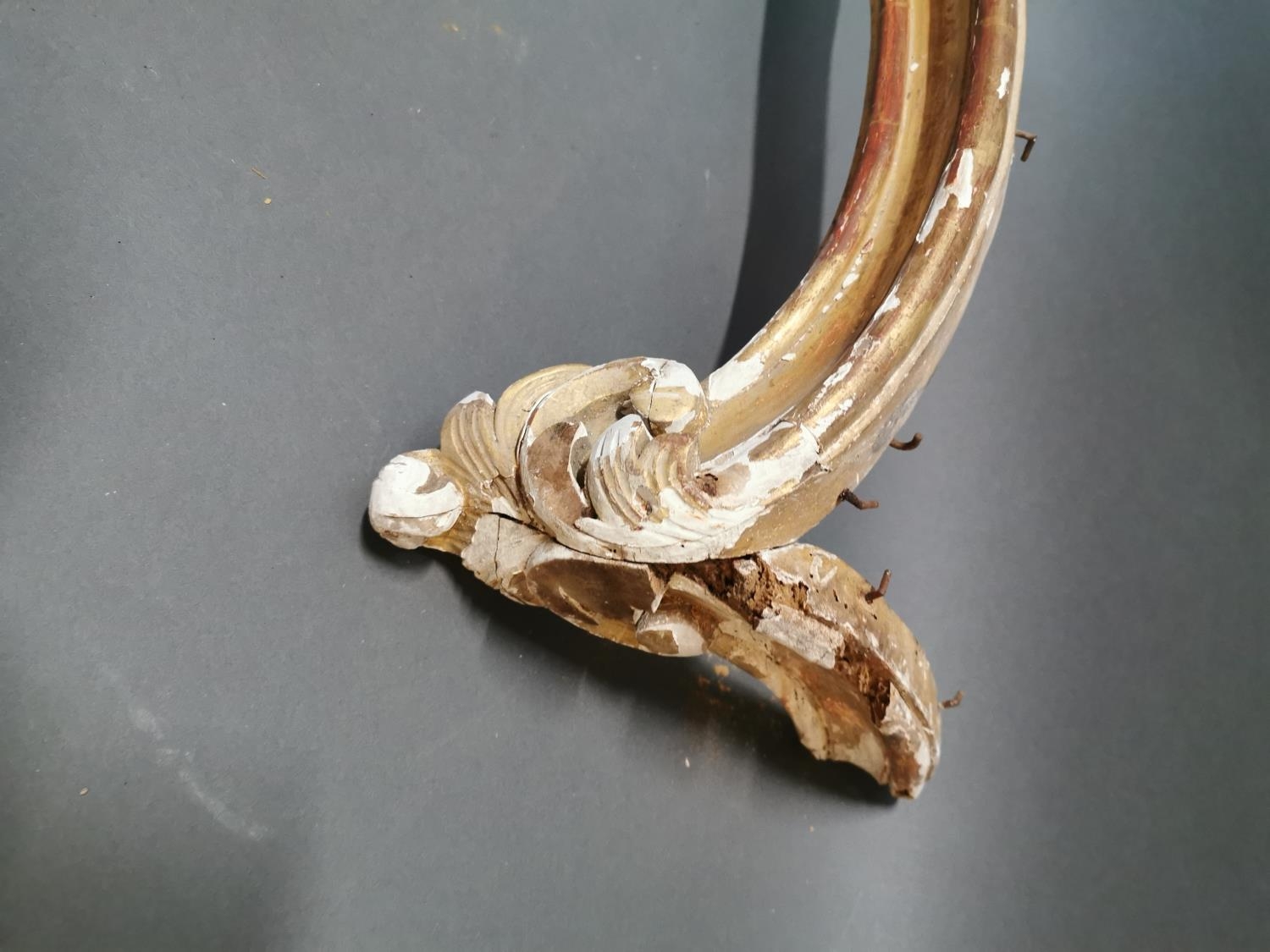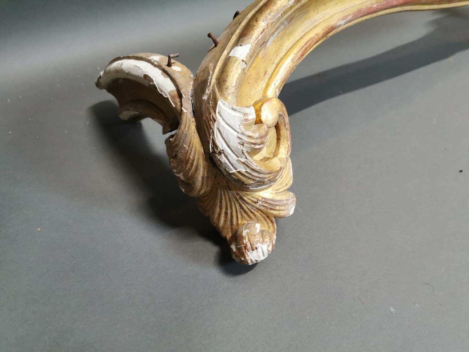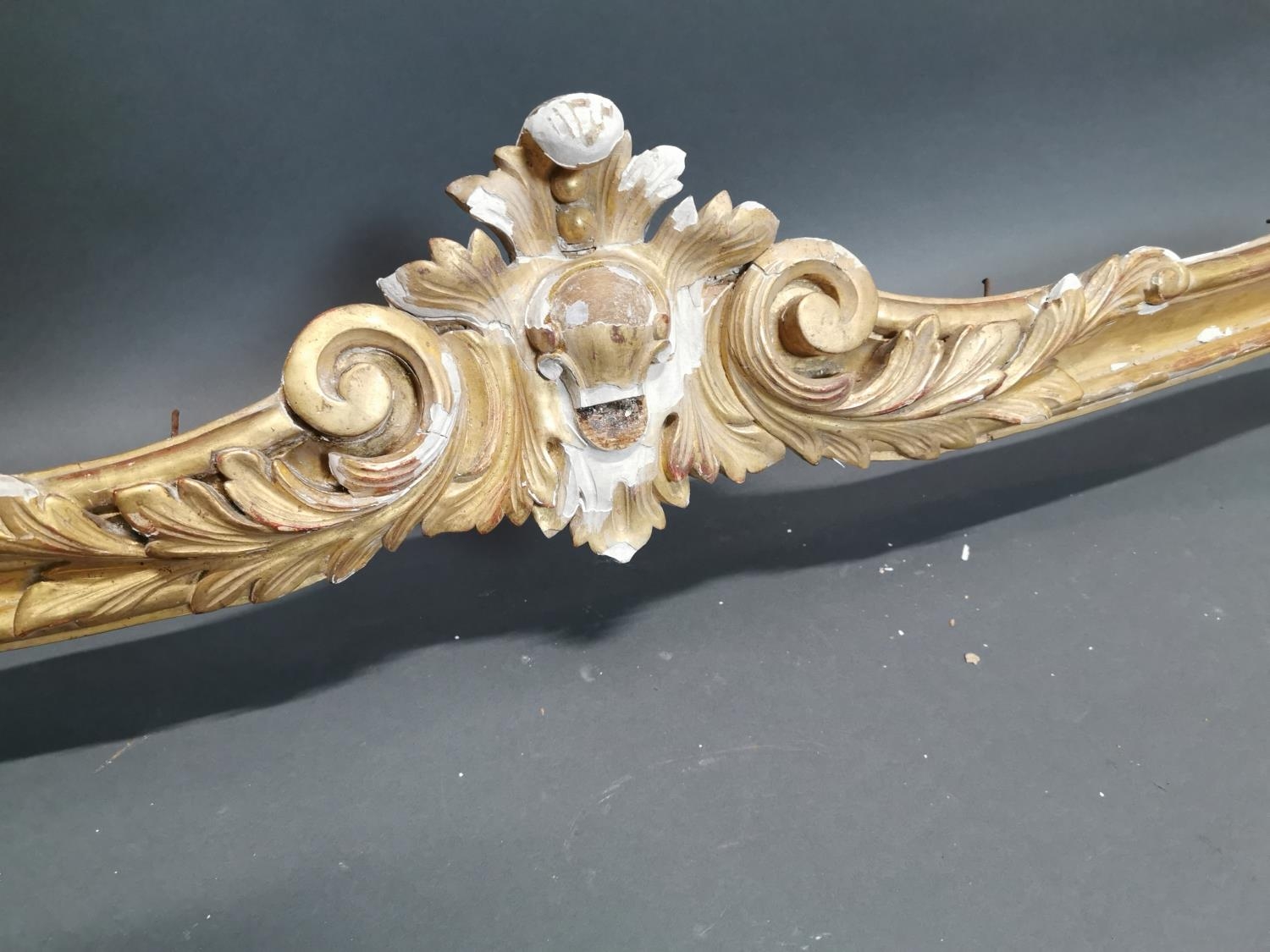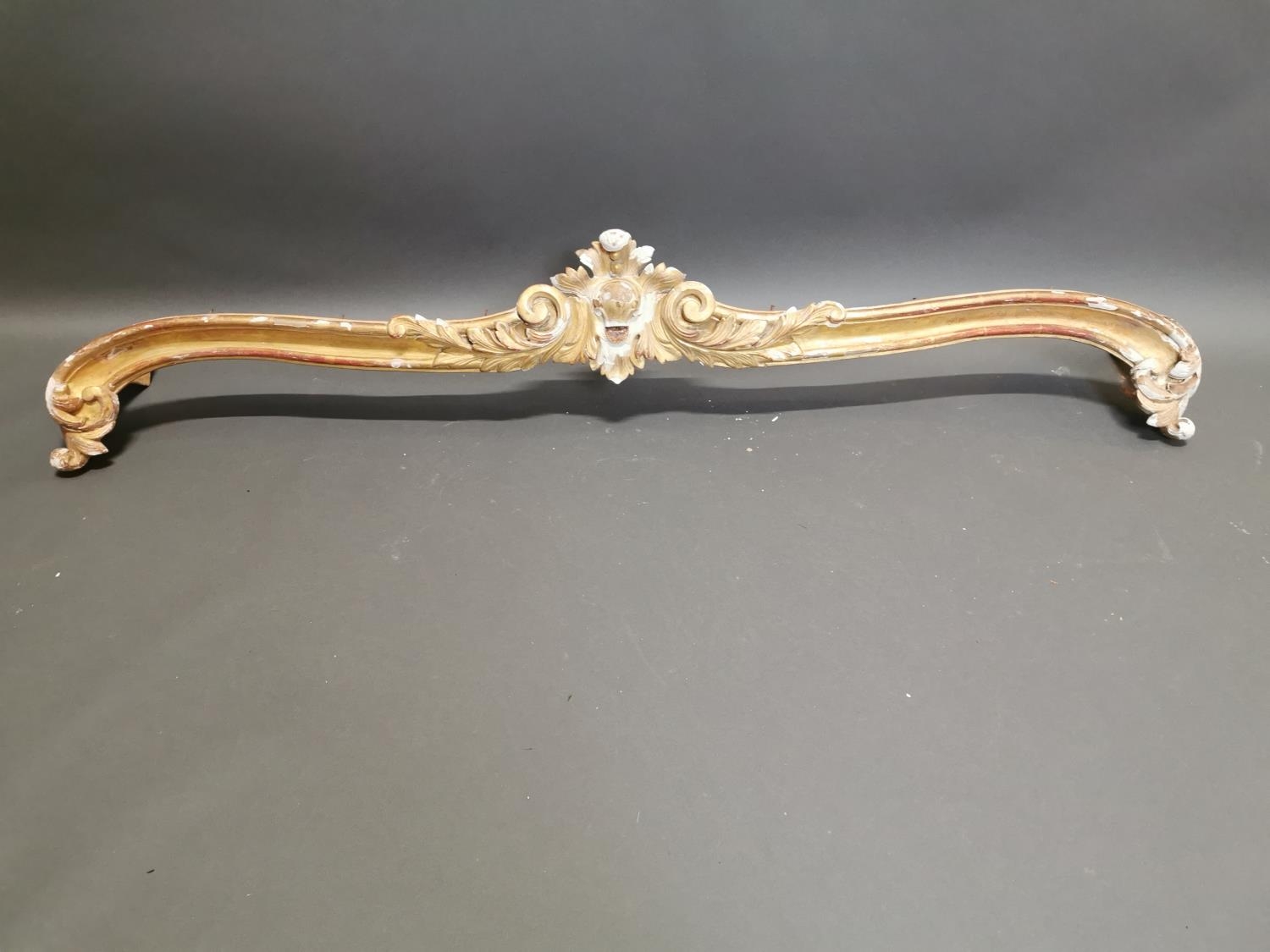 19th C. gilt wood and gesso curtain pelmet {23 cm H x 171 cm W x 20 cm D}.