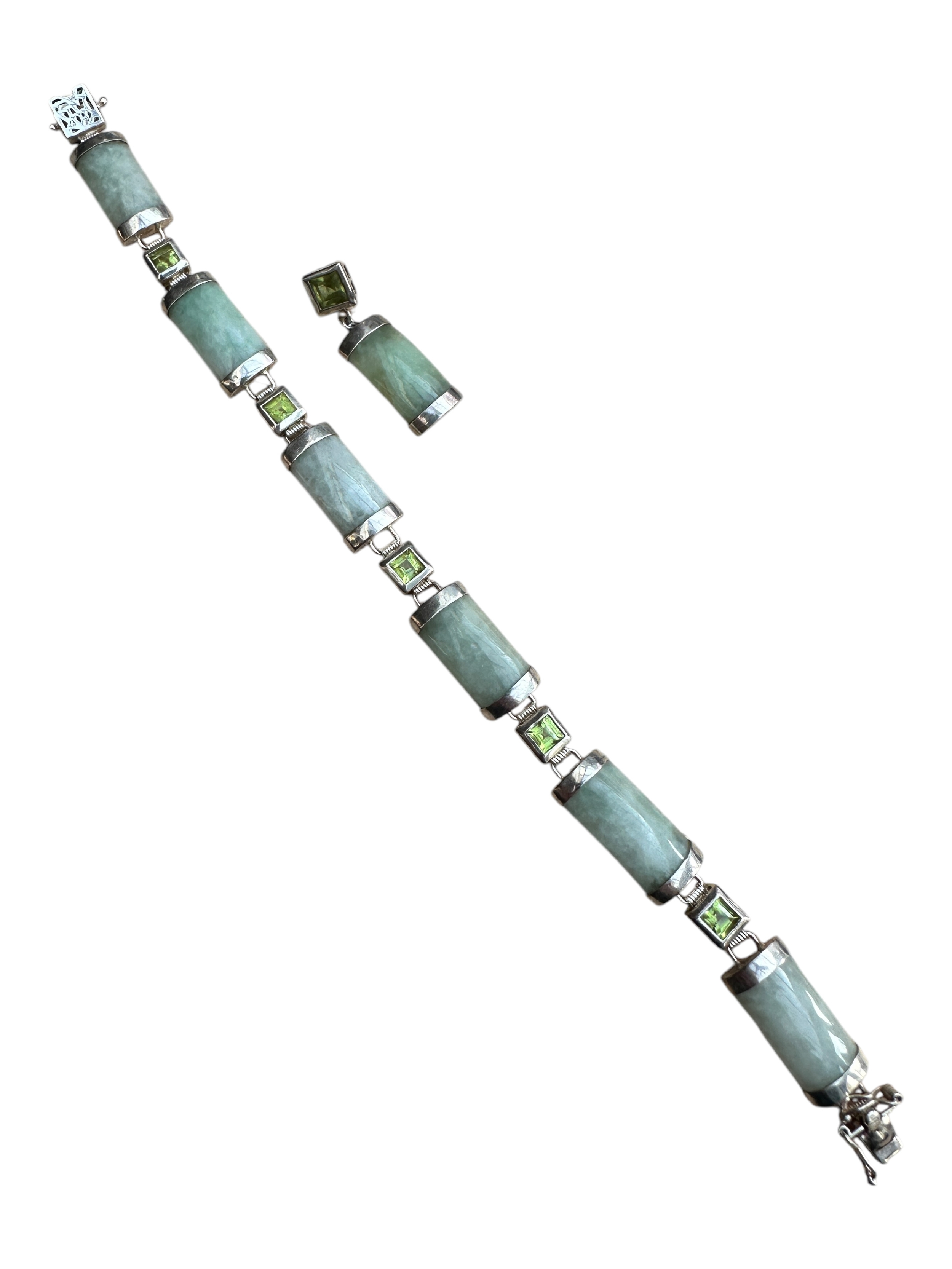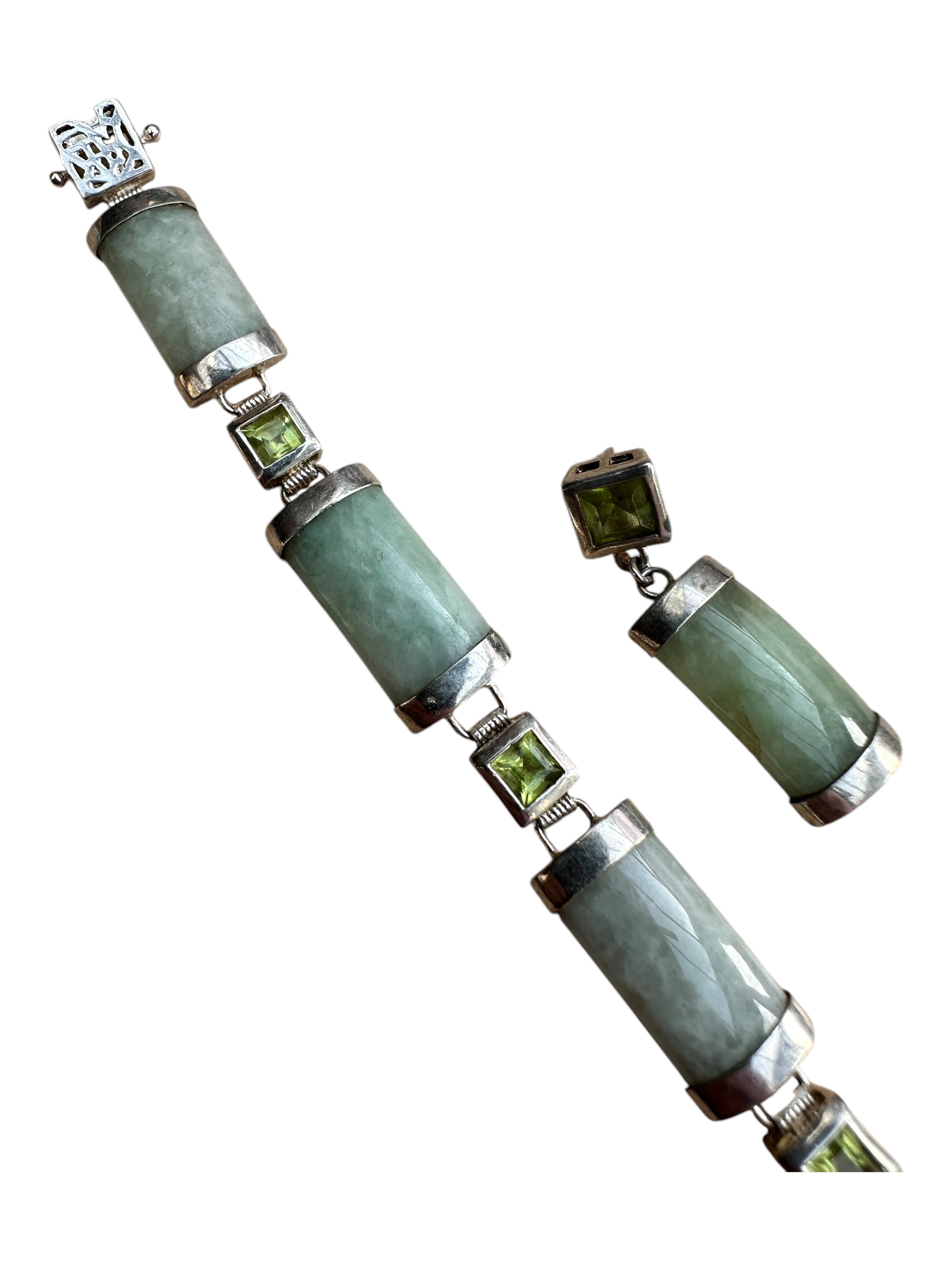 Silver and Jade Bracelet & Pendant Set