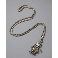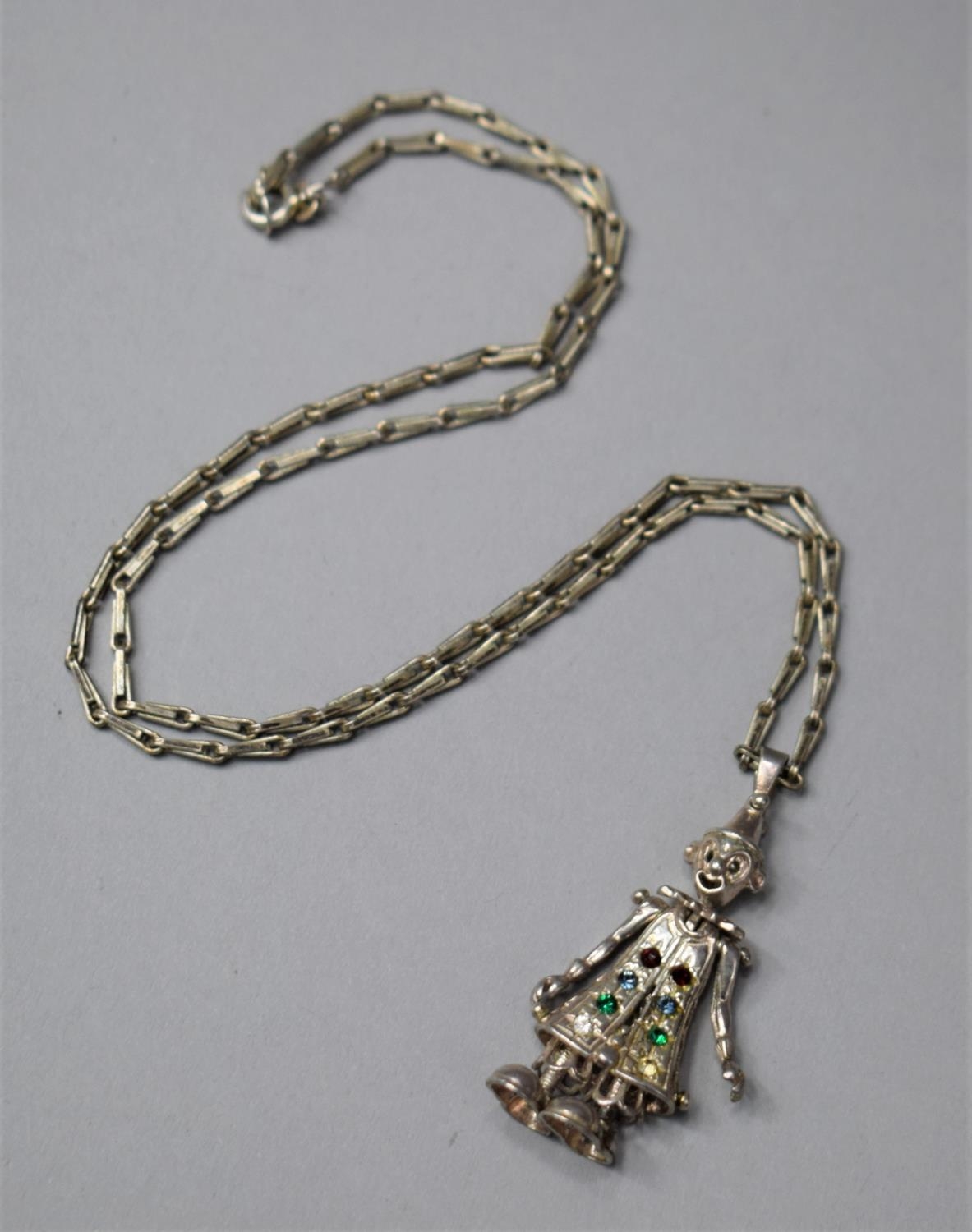 A Silver and Jewelled Articulated Clown Pendant on a Silver Link Chain Stamped 925