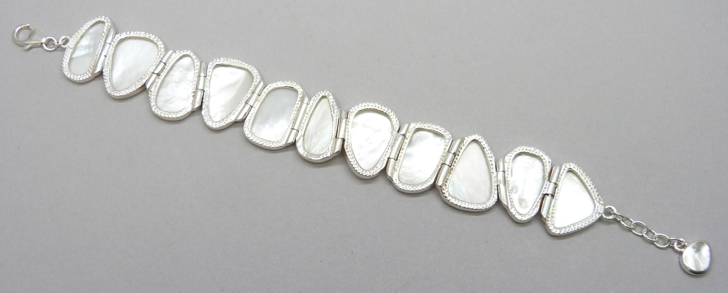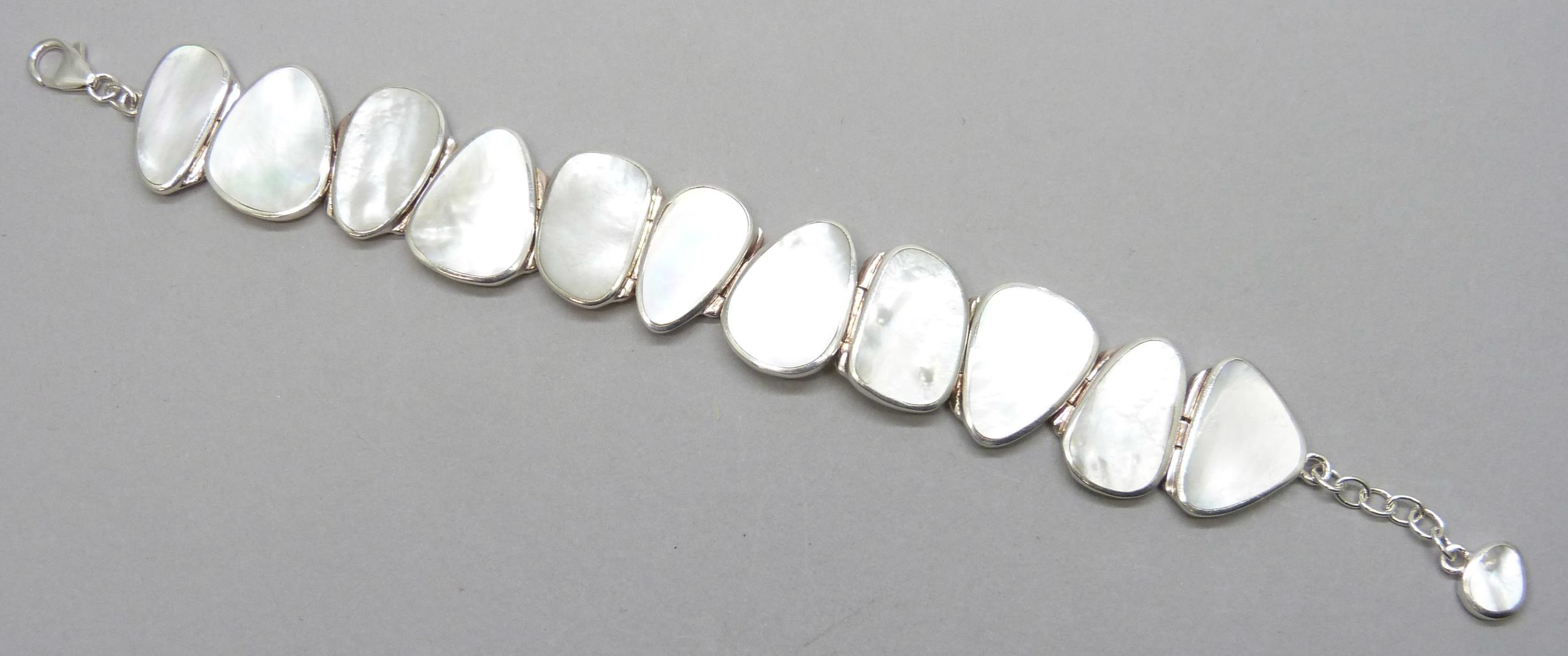 A silver and mother of pearl bracelet, 34g, 20.5cm, 2.2cm wide