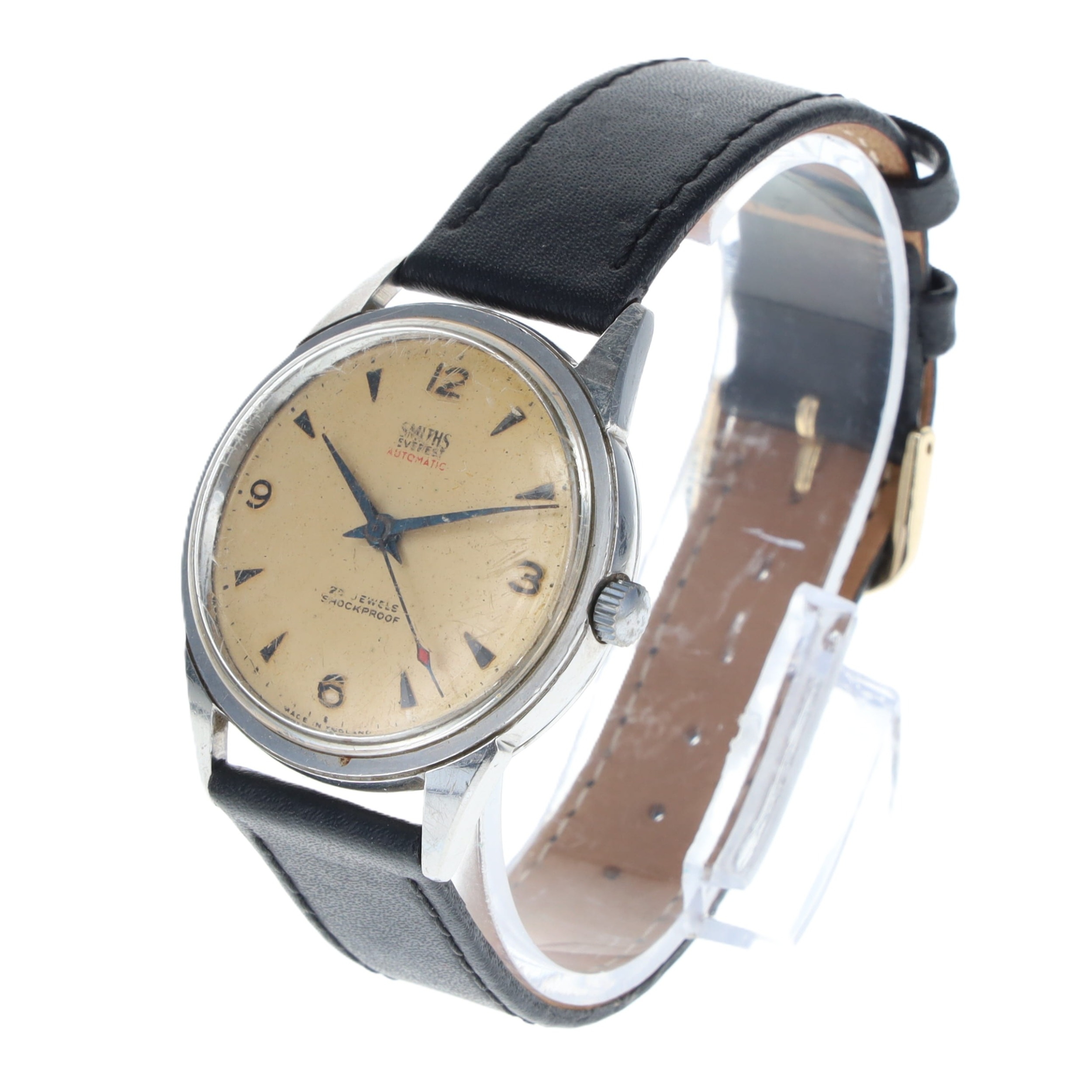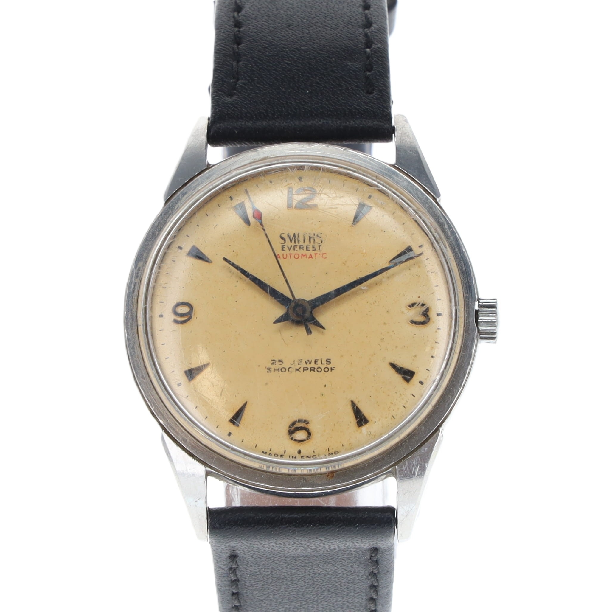 Smiths - Everest Automatic Watch. Smiths Cal. 0144G Automatic movement. Stainless steel case and black leather strap. Acrylic crystal has some scratches present. Watch is running at the time of listing. offered without original box or papers.