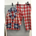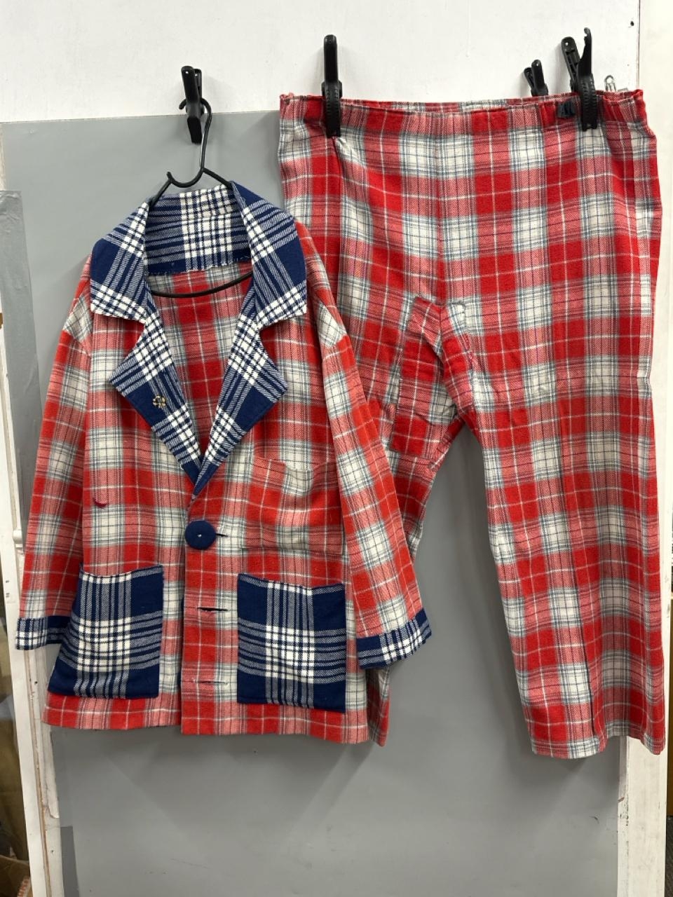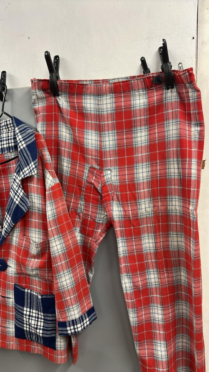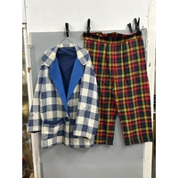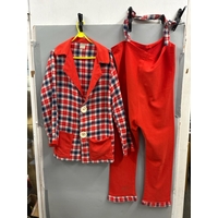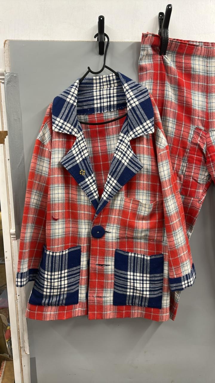 Stage worn blue and red clown costume including jacket and trousers / Rail 4