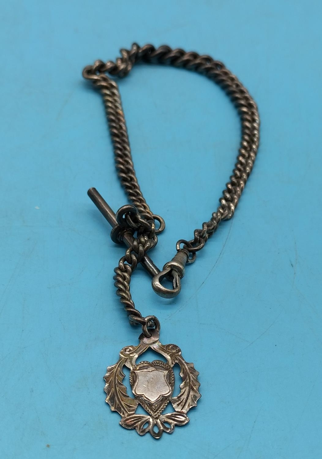 Silver Hallmarked Albert Chain with T-Bar and Fob. 30cm Long. 48 Grams.