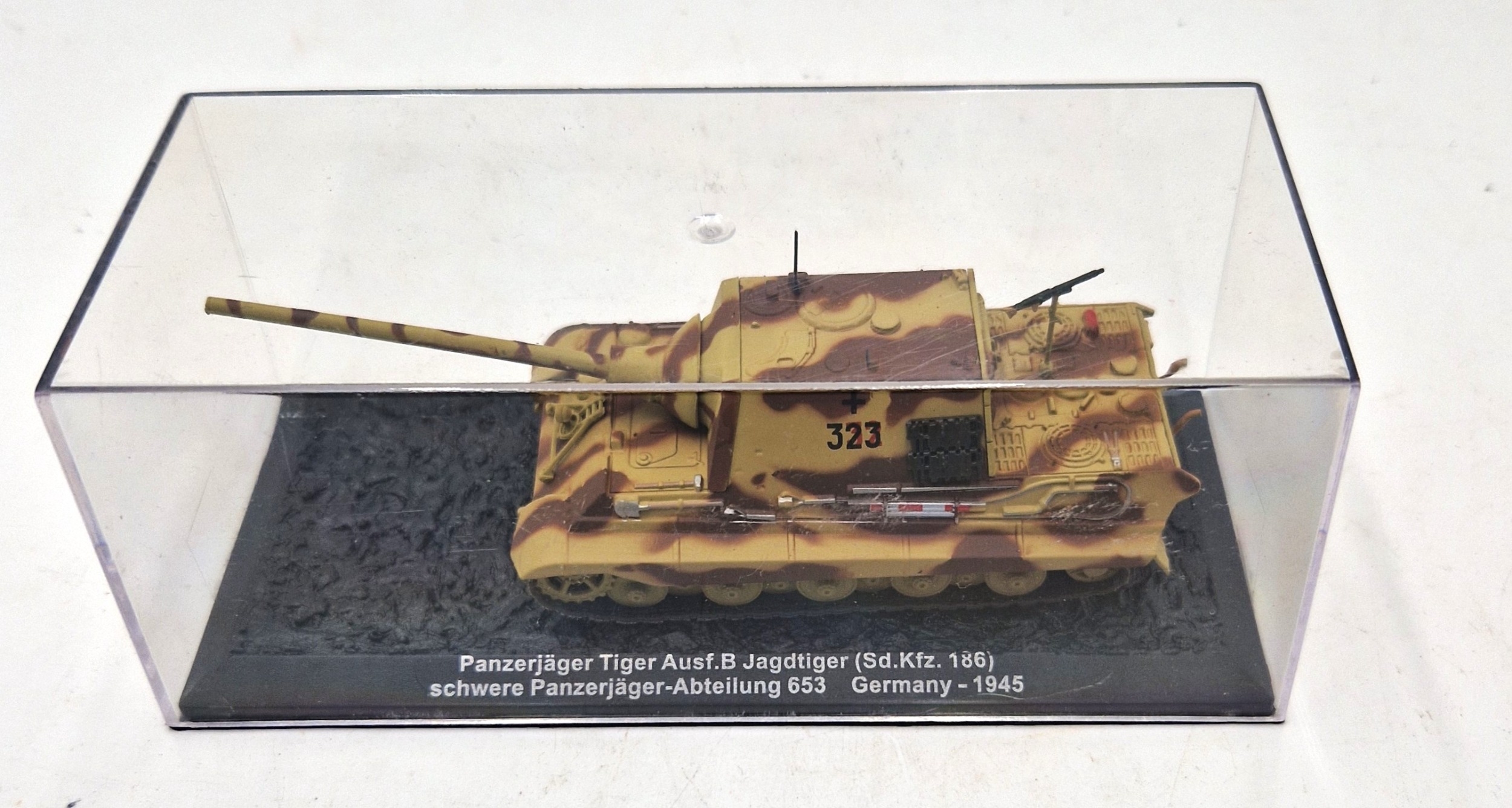 COLLECTORS MODEL OF A Panzerjager Tiger Ausf.B Jagdtiger (Sd.Kfz. 186) schwere Panzerjager-Abteilung 653 Germany 1945 TANK (Original Hard Plastic Display Case)