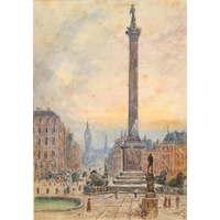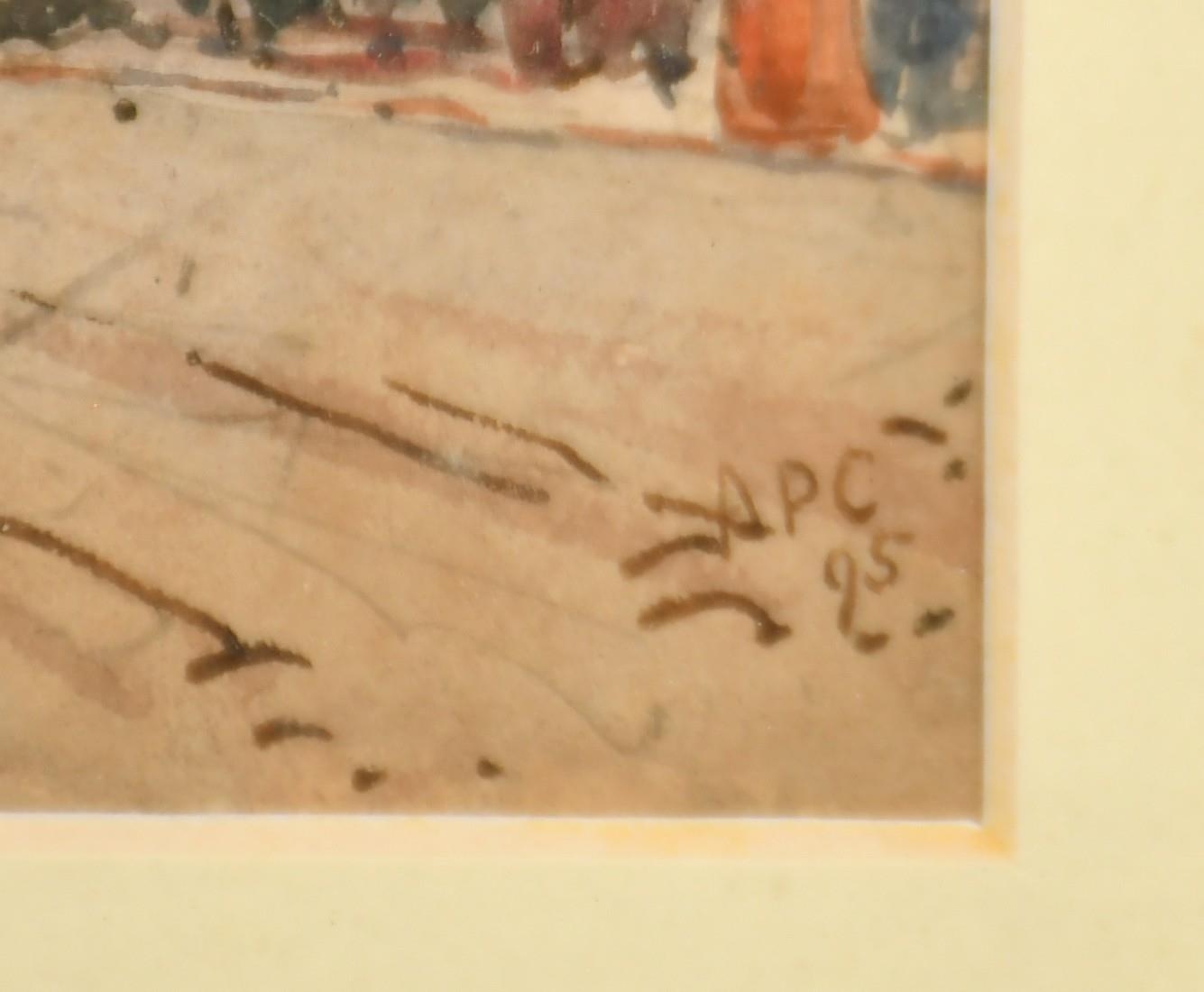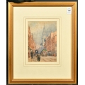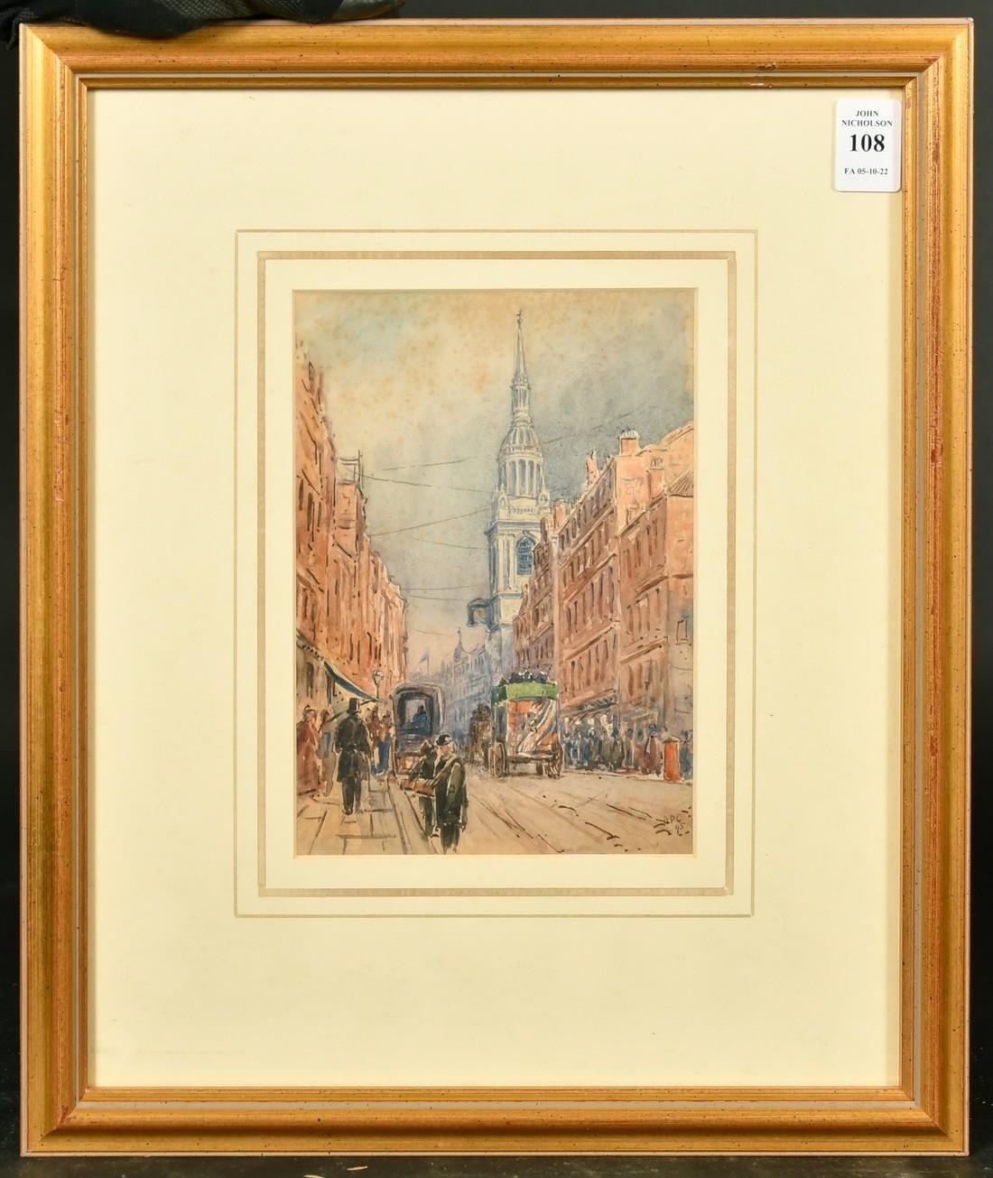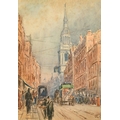 A.R. Collis, Circa 1895, figures and a church on a busy London street, watercolour, signed with initials, 7.5" x 5.25", (19 x 13cm).