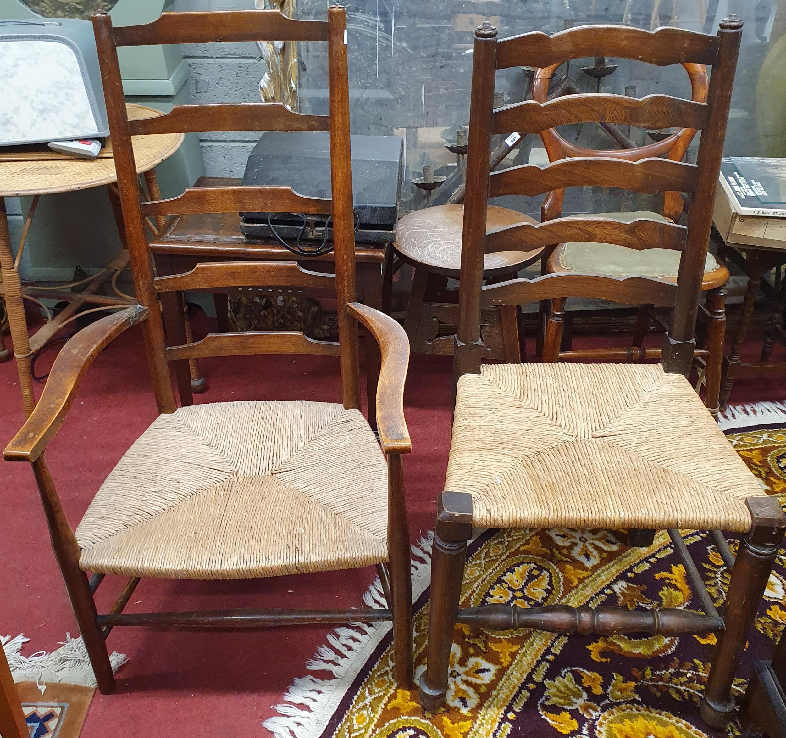 A 19th Century Ladder Back Provincial Chair with rush seat along with another single seat.