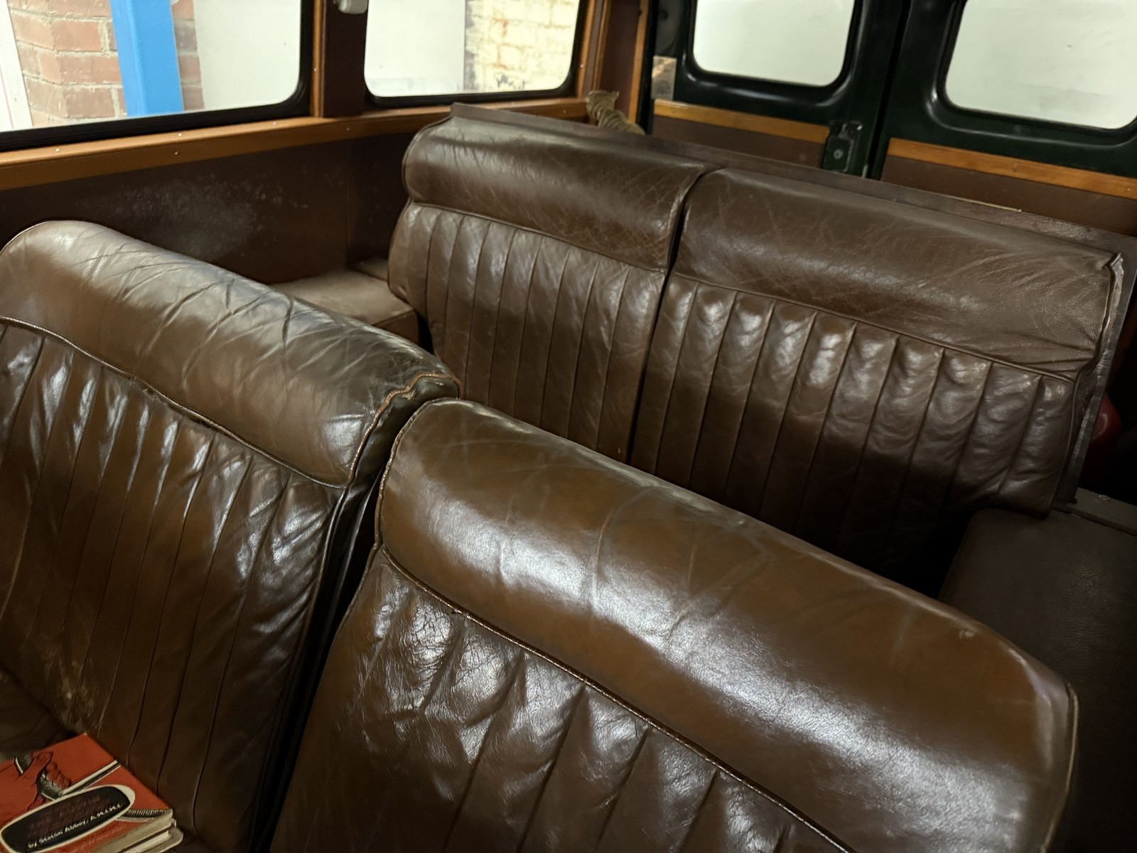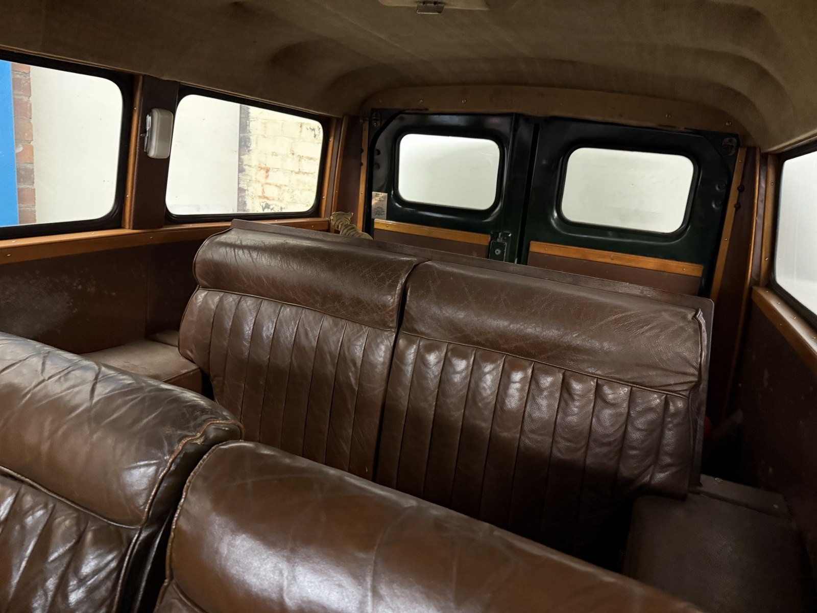 The RF60 notes the van was converted to an estate in 1961 with fitted windows to the side panels and a reclining rear brown leather bench seat to match the fronts